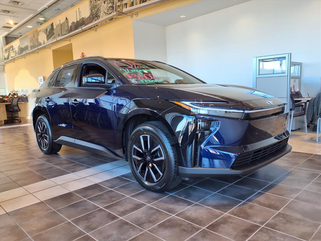 !!This 2026 Toyota bZ XLE Plus in Bluprint features the following:. ALL OUR NEW CARS COME WITH A LIFETIME POWERTRAIN WARRANTY. EXCLUDES BUSINESS PURCHASES. SEE DEALER FOR DETAILS. 143/119 City/Highway MPG 4-Wheel Disc Brakes, 6 Speakers, ABS brakes, Air Conditioning, Alloy wheels, AM/FM radio: SiriusXM, Apple CarPlay/Android Auto, Auto High-beam Headlights, Auto-dimming Rear-View mirror, Automatic temperature control, Brake assist, Bumpers: body-color, Delay-off headlights, Driver door bin, Driver vanity mirror, Dual front impact airbags, Dual front side impact airbags, Electronic Stability Control, Emergency communication system: Safety Connect (10-year trial), Exterior Parking Camera Rear, Fabric/SofTex Seat Trim, Four wheel independent suspension, Front anti-roll bar, Front Bucket Seats, Front Center Armrest, Front dual zone A/C, Front reading lights, Fully automatic headlights, Garage door transmitter: HomeLink, Heated door mirrors, Heated Front Seats, Heated front seats, Heated steering wheel, Illuminated entry, Knee airbag, Leather steering wheel, Low tire pressure warning, Navigation system: Drive Connect (3 year trial) includes Cloud Navigation with real time traffic and Google POI, Occupant sensing airbag, Outside temperature display, Overhead airbag, Overhead console, Panic alarm, Passenger door bin, Passenger vanity mirror, Power door mirrors, Power driver seat, Power Liftgate, Power steering, Power windows, Radio data system, Radio: 14Toyota Audio Multimedia, Rain sensing wipers, Rear anti-roll bar, Rear seat center armrest, Rear window defroster, Remote keyless entry, Security system, Speed control, Speed-sensing steering, Split folding rear seat, Spoiler, Steering wheel mounted audio controls, Telescoping steering wheel, Tilt steering wheel, Traction control, Trip computer, Turn signal indicator mirrors, Variably intermittent wipers, and Wheels: 18Alloy with Covers.