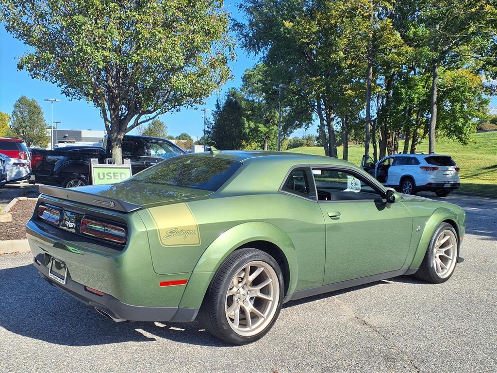 This 2023 Dodge Challenger R/T Scat Pack Widebody, has a F8 Green exterior and an Black interior color. 33,192 miles. Stock Number LMB55287A. You can connect with us by calling 757-704-2123 . This vehicle is offered by Mercedes-Benz of Hampton and we are located at 2712 Neil Armstrong Pkwy Hampton VA 23666 One Owner! No Accidents! Important Package and Feature Information Plus Package ($3,485 value)Black-Edged Premium FloormatsPower Multi-Function Foldaway MirrorsPremium-Stitched Dash PanelHigh Intensity Discharge HeadlampsExterior Mirrors with Heating ElementLocking Lug NutsSwinger Special Edition ($5,590 value)Basil Green IP/console/door StitchingUnique IP BadgeWhite Face Instrument ClusterGloss Black Instrument Panel Cluster Trim RingsAluminum Interior Bezel W/wood LookGold School R/T Wide Grille BadgeSatin Black Dodge Tail Lamp BadgeGold School Paint Shaker Hood ScoopUnderhood Shaker DecalMOPAR Shaker HoodSwinger Exterior Vinyl GraphicsGold School Scat Pack/bee Spoiler BadgeGold School Challenger Grille BadgeMonochrome Bee Fender BadgeNappa/alcantara Seat with Green StitchRhombi 2 Piece Wheel Center Cap20 X 11.0 Gold School WheelsTechnology GroupQuick Order Package 24N R/T Scat Pack Widebody ($7,995 value)Brembo 6-Pot Fixed Front Caliper BrakesPerformance Shift IndicatorWidebody Fender FlaresFlat-Bottom Steering WheelWidebody Competition SuspensionAdaptive Damping Suspension305/35ZR20 (107Y) AS Performance TiresPirelli Brand TiresRhombi 2 Piece Wheel Center Cap Comfort Ventilated front seats -Thats cool. Ventilated front seats provides targeted cool air so you and your passenger can get comfortable quicker in hot weather. Getting comfortable is no sweat when you have ventilated front seats.Convenience