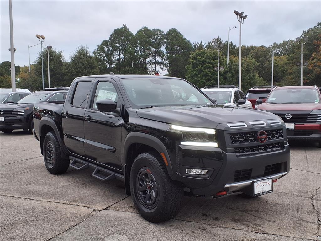 Super Black 2026 Nissan Frontier PRO-4X 4WD 9-Speed Automatic with Overdrive 3.8L DI DOHC 24V V6 We Deliver Anywhere, Extended Service Programs Available, 4WD, 17Painted Alloy Wheels, 3.692 Axle Ratio, 4-Wheel Disc Brakes, 6 Speakers, ABS brakes, Air Conditioning, Alloy wheels, AM/FM radio: SiriusXM, Anti-whiplash front head restraints, Auto High-beam Headlights, Automatic temperature control, Blind Spot Warning, Brake assist, Bumpers: body-color, Delay-off headlights, Driver door bin, Driver vanity mirror, Dual front impact airbags, Dual front side impact airbags, Electronic Stability Control, Electronic Tailgate Lock, Emergency communication system, Essentials Kit, Front anti-roll bar, Front Bucket Seats, Front Center Armrest, Front dual zone A/C, Front fog lights, Front reading lights, Front wheel independent suspension, Fully automatic headlights, Heated Front Bucket Seats, Heated Steering Wheel, Illuminated entry, Intelligent Around View Monitor (I-AVM), Knee airbag, Leather steering wheel, Low tire pressure warning, Mud Flaps, Occupant sensing airbag, Off-Road Style Step Rails, Overhead airbag, Overhead console, Panic alarm, Passenger door bin, Passenger vanity mirror, Power door mirrors, Power driver seat, Power passenger seat, Power steering, Power windows, PRO Embroidered Premium Cloth Seat Trim, PRO-4X Convenience Package, Radio data system, Radio: SXM/AM/FM/AUX/USB Audio System, Rear anti-roll bar, Rear seat center armrest, Rear side impact airbag, Rear step bumper, Remote keyless entry, Security system, Speed control, Speed-sensing steering, Split folding rear seat, Steering wheel mounted audio controls, Tachometer, Telescoping steering wheel, Tilt steering wheel, Traction control, Trip computer, Variably intermittent wipers, Voltmeter, Wireless Apple CarPlay/Wireless Android Auto, Wireless Charging for Personal Devices, 4WD. Recent Arrival! Price includes: $2000 - Nissan Customer Cash. Exp. 11/03/2025