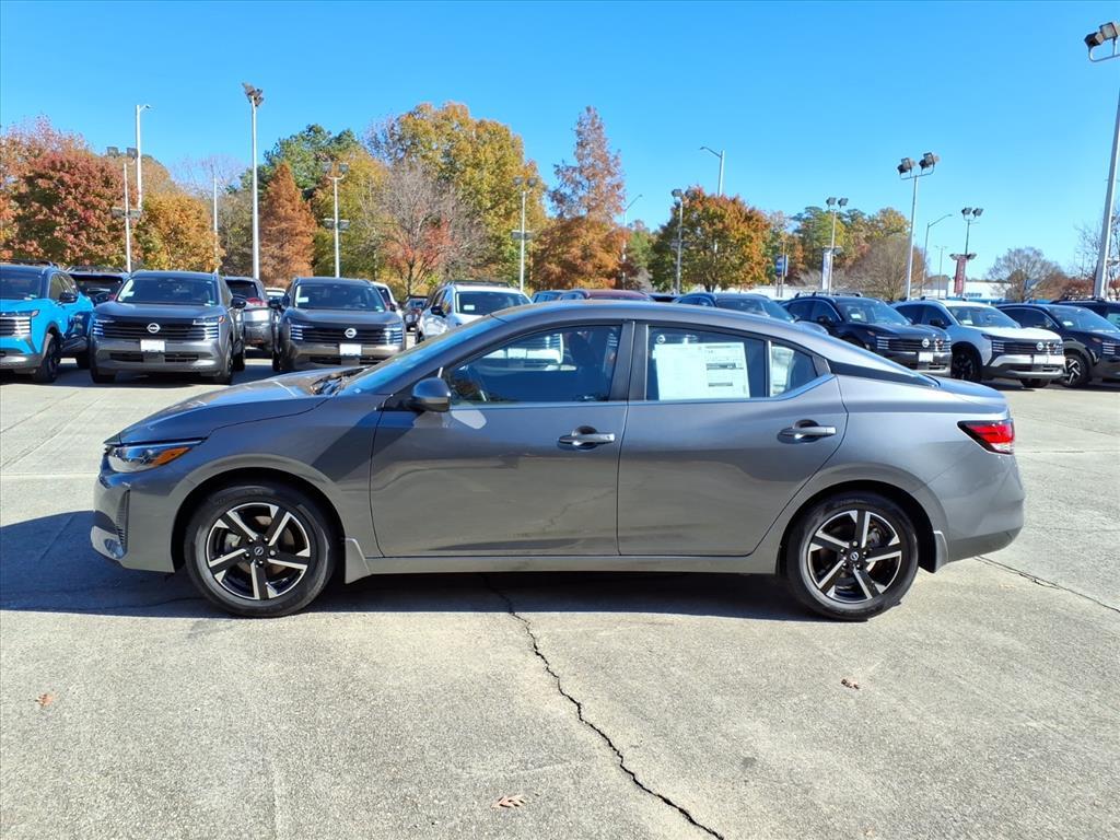 Gun Metallic 2025 Nissan Sentra SV FWD CVT with Xtronic 2.0L I4 DOHC We Deliver Anywhere, Extended Service Programs Available, CVT with Xtronic, Charcoal Cloth, 16Alloy Wheels, 4-Wheel Disc Brakes, 8 Speakers, ABS brakes, Air Conditioning, Alloy wheels, AM/FM radio: SiriusXM, Auto High-beam Headlights, Blind Spot Warning, Body Colored Splash Guards (4-Piece), Brake assist, Bumpers: body-color, Carpeted Floor Mats w/Trunk Mat, Clear Rear Bumper Protector, Delay-off headlights, Door Sill Plates, Driver door bin, Driver vanity mirror, Dual front impact airbags, Dual front side impact airbags, Electronic Stability Control, Four wheel independent suspension, Front anti-roll bar, Front Bucket Seats, Front Center Armrest, Front reading lights, Fully automatic headlights, Illuminated entry, Knee airbag, Low tire pressure warning, NissanConnect featuring Apple CarPlay and Android Auto, Occupant sensing airbag, Outside temperature display, Overhead airbag, Overhead console, Panic alarm, Passenger door bin, Passenger vanity mirror, Power door mirrors, Power steering, Power windows, Radio data system, Radio: AM/FM w/RDS/MP3/Aux-In, Rear anti-roll bar, Rear Parking Sensors, Rear side impact airbag, Rear window defroster, Remote keyless entry, Security system, Speed control, Speed-sensing steering, Split folding rear seat, Steering wheel mounted audio controls, Tachometer, Telescoping steering wheel, Tilt steering wheel, Traction control, Trip computer, Upgraded Cloth Seat Trim, Variably intermittent wipers, CVT with Xtronic, Charcoal Cloth. 30/40 City/Highway MPG Price includes: $500 - Nissan MY25 Sentra Bonus Cash. Exp. 12/01/2025 $500 - Nissan SER MY25 Sentra (SV and SR) Bonus Cash - November. Exp. 12/01/2025