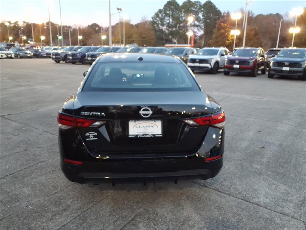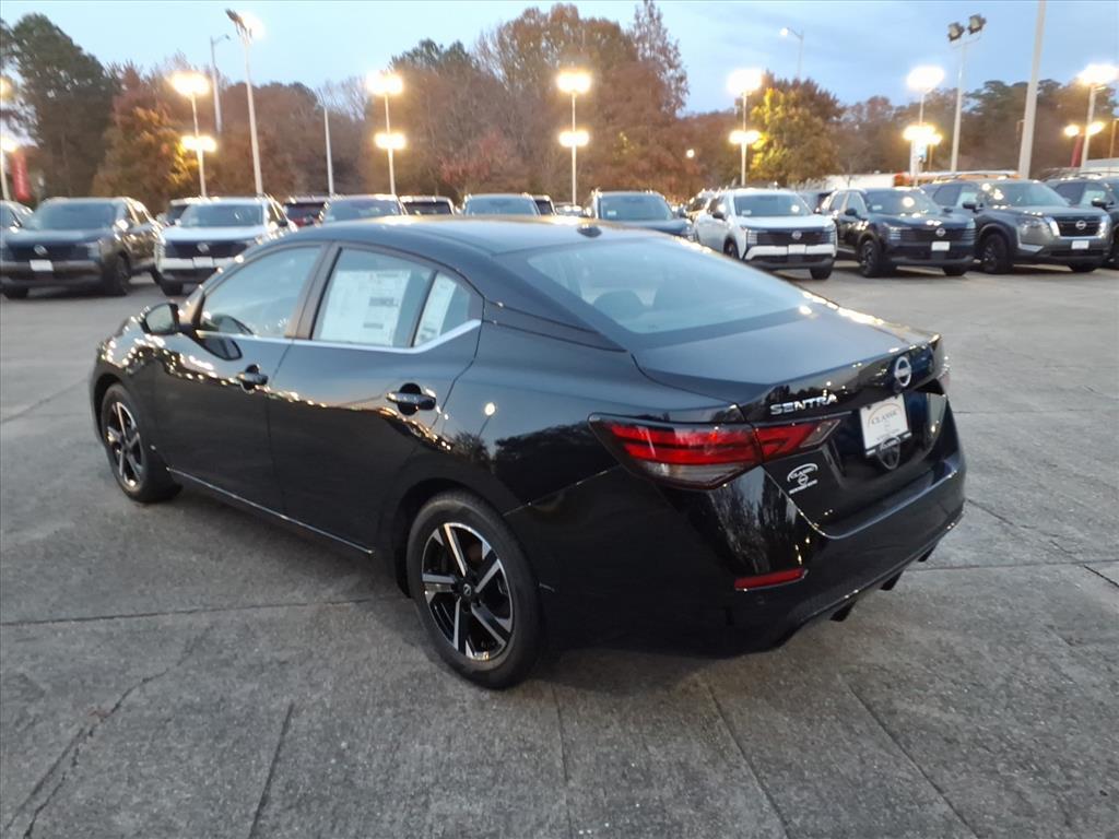 Super Black 2025 Nissan Sentra SV FWD CVT with Xtronic 2.0L I4 DOHC We Deliver Anywhere, Extended Service Programs Available, CVT with Xtronic, Charcoal Cloth, 16Alloy Wheels, 4-Wheel Disc Brakes, 8 Speakers, ABS brakes, Air Conditioning, Alloy wheels, AM/FM radio: SiriusXM, Auto High-beam Headlights, Blind Spot Warning, Body Colored Splash Guards (4-Piece), Brake assist, Bumpers: body-color, Carpeted Floor Mats w/Trunk Mat, Clear Rear Bumper Protector, Delay-off headlights, Door Sill Plates, Driver door bin, Driver vanity mirror, Dual front impact airbags, Dual front side impact airbags, Electronic Stability Control, Four wheel independent suspension, Front anti-roll bar, Front Bucket Seats, Front Center Armrest, Front reading lights, Fully automatic headlights, Hide-A-Way Trunk Net, Illuminated entry, Knee airbag, Low tire pressure warning, NissanConnect featuring Apple CarPlay and Android Auto, Occupant sensing airbag, Outside temperature display, Overhead airbag, Overhead console, Panic alarm, Passenger door bin, Passenger vanity mirror, Power door mirrors, Power steering, Power windows, Radio data system, Radio: AM/FM w/RDS/MP3/Aux-In, Rear anti-roll bar, Rear Parking Sensors, Rear side impact airbag, Rear window defroster, Remote keyless entry, Security system, Speed control, Speed-sensing steering, Split folding rear seat, Steering wheel mounted audio controls, Tachometer, Telescoping steering wheel, Tilt steering wheel, Traction control, Trip computer, Trunk Package, Upgraded Cloth Seat Trim, Variably intermittent wipers, CVT with Xtronic, Charcoal Cloth. 30/40 City/Highway MPG Price includes: $500 - Nissan MY25 Sentra Bonus Cash. Exp. 12/01/2025 $500 - Nissan SER MY25 Sentra (SV and SR) Bonus Cash - November. Exp. 12/01/2025