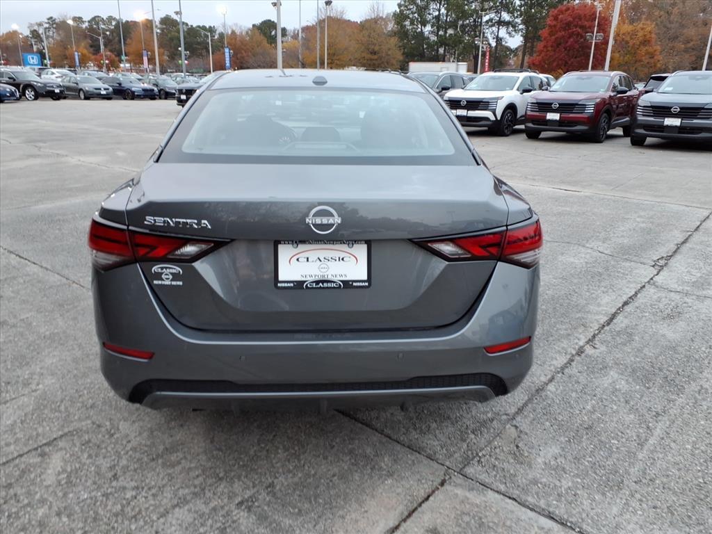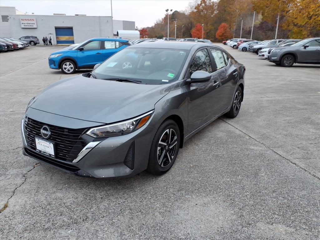 Gun Metallic 2025 Nissan Sentra SV FWD CVT with Xtronic 2.0L I4 DOHC We Deliver Anywhere, Extended Service Programs Available, CVT with Xtronic, Charcoal Cloth, 16Alloy Wheels, 4-Wheel Disc Brakes, 8 Speakers, ABS brakes, Air Conditioning, Alloy wheels, AM/FM radio: SiriusXM, Auto High-beam Headlights, Blind Spot Warning, Body Colored Splash Guards (4-Piece), Brake assist, Bumpers: body-color, Carpeted Floor Mats w/Trunk Mat, Clear Rear Bumper Protector, Delay-off headlights, Door Sill Plates, Driver door bin, Driver vanity mirror, Dual front impact airbags, Dual front side impact airbags, Electronic Stability Control, Four wheel independent suspension, Front anti-roll bar, Front Bucket Seats, Front Center Armrest, Front reading lights, Fully automatic headlights, Illuminated entry, Knee airbag, Low tire pressure warning, NissanConnect featuring Apple CarPlay and Android Auto, Occupant sensing airbag, Outside temperature display, Overhead airbag, Overhead console, Panic alarm, Passenger door bin, Passenger vanity mirror, Power door mirrors, Power steering, Power windows, Radio data system, Radio: AM/FM w/RDS/MP3/Aux-In, Rear anti-roll bar, Rear Parking Sensors, Rear side impact airbag, Rear window defroster, Remote keyless entry, Security system, Speed control, Speed-sensing steering, Split folding rear seat, Steering wheel mounted audio controls, Tachometer, Telescoping steering wheel, Tilt steering wheel, Traction control, Trip computer, Upgraded Cloth Seat Trim, Variably intermittent wipers, CVT with Xtronic, Charcoal Cloth. 30/40 City/Highway MPG Price includes: $500 - Nissan MY25 Sentra Bonus Cash. Exp. 12/01/2025 $500 - Nissan SER MY25 Sentra (SV and SR) Bonus Cash - November. Exp. 12/01/2025