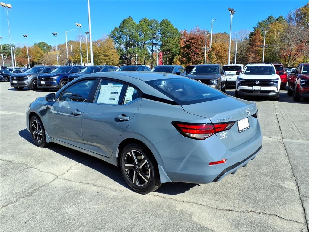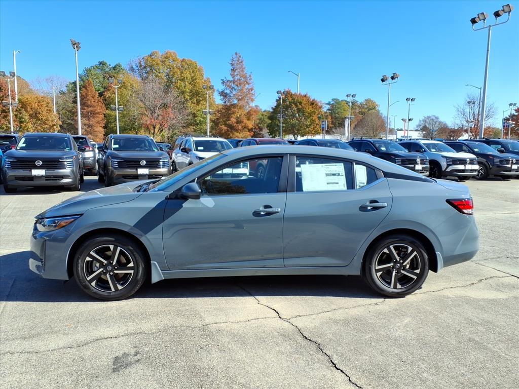 Atlantic Gray Metallic 2025 Nissan Sentra SV FWD CVT with Xtronic 2.0L I4 DOHC We Deliver Anywhere, Extended Service Programs Available, CVT with Xtronic, Charcoal Cloth, 16Alloy Wheels, 4-Wheel Disc Brakes, 8 Speakers, ABS brakes, Air Conditioning, Alloy wheels, AM/FM radio: SiriusXM, Auto High-beam Headlights, Blind Spot Warning, Body Colored Splash Guards (4-Piece), Brake assist, Bumpers: body-color, Carpeted Floor Mats w/Trunk Mat, Clear Rear Bumper Protector, Delay-off headlights, Door Sill Plates, Driver door bin, Driver vanity mirror, Dual front impact airbags, Dual front side impact airbags, Electronic Stability Control, Four wheel independent suspension, Front anti-roll bar, Front Bucket Seats, Front Center Armrest, Front reading lights, Fully automatic headlights, Illuminated entry, Knee airbag, Low tire pressure warning, NissanConnect featuring Apple CarPlay and Android Auto, Occupant sensing airbag, Outside temperature display, Overhead airbag, Overhead console, Panic alarm, Passenger door bin, Passenger vanity mirror, Power door mirrors, Power steering, Power windows, Premium Paint, Radio data system, Radio: AM/FM w/RDS/MP3/Aux-In, Rear anti-roll bar, Rear Parking Sensors, Rear side impact airbag, Rear window defroster, Remote keyless entry, Security system, Speed control, Speed-sensing steering, Split folding rear seat, Steering wheel mounted audio controls, Tachometer, Telescoping steering wheel, Tilt steering wheel, Traction control, Trip computer, Upgraded Cloth Seat Trim, Variably intermittent wipers, CVT with Xtronic, Charcoal Cloth. 30/40 City/Highway MPG Price includes: $500 - Nissan MY25 Sentra Bonus Cash. Exp. 12/01/2025 $500 - Nissan SER MY25 Sentra (SV and SR) Bonus Cash - November. Exp. 12/01/2025