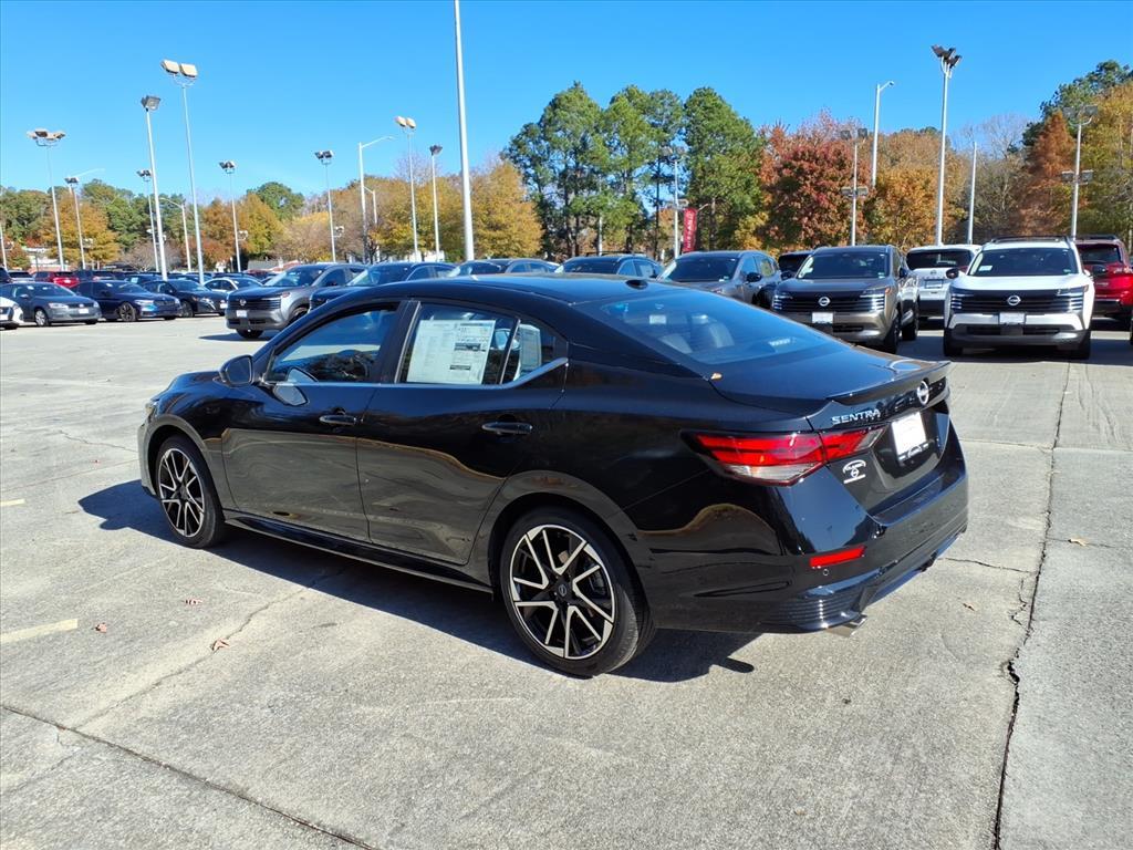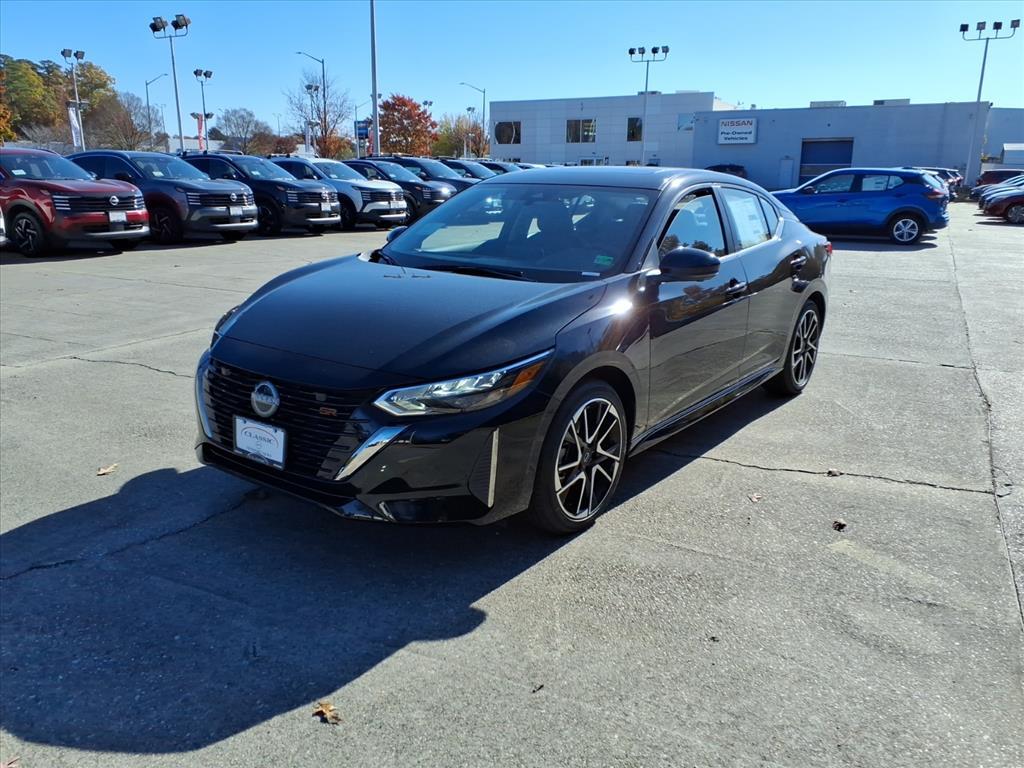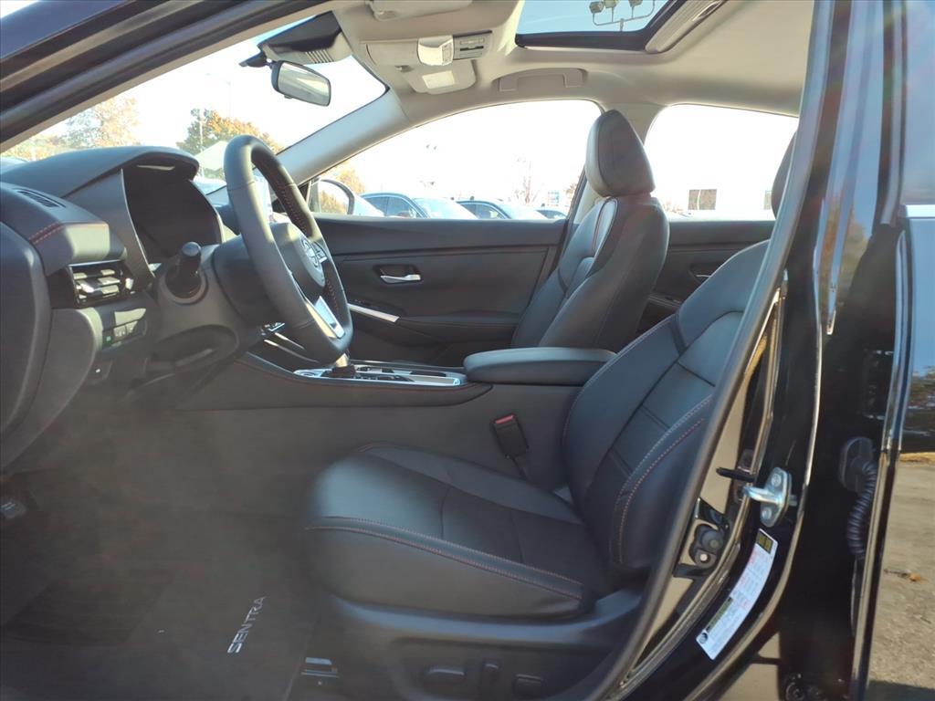 Super Black 2025 Nissan Sentra SR FWD CVT with Xtronic 2.0L I4 DOHC We Deliver Anywhere, Extended Service Programs Available, CVT with Xtronic, Sport Cloth, 18Alloy Wheels, 4-Wheel Disc Brakes, 6-Way Power Drivers Seat, 8 Speakers, ABS brakes, Air Conditioning, Alloy wheels, AM/FM radio: SiriusXM, Auto High-beam Headlights, Automatic temperature control, Blind Spot Warning, Bose Premium Audio System w/8 Speakers, Brake assist, Bumpers: body-color, Carpeted Floor Mats w/Trunk Mat, Clear Rear Bumper Protector, Delay-off headlights, Door Sill Plates, Driver door bin, Driver vanity mirror, Dual front impact airbags, Dual front side impact airbags, Electronic Stability Control, Four wheel independent suspension, Front anti-roll bar, Front Bucket Seats, Front Center Armrest, Front dual zone A/C, Front reading lights, Fully automatic headlights, Heated door mirrors, Heated Front Bucket Seats, Heated front seats, Illuminated entry, Intelligent Around View Monitor (I-AVM), Knee airbag, Leather Heated Steering Wheel, Leather Shift Knob, Leatherette Seat Trim, Low tire pressure warning, NissanConnect featuring Apple CarPlay and Android Auto, NissanConnect Services, Occupant sensing airbag, Outside temperature display, Overhead airbag, Overhead console, Panic alarm, Passenger door bin, Passenger vanity mirror, Power door mirrors, Power Sliding Glass Moonroof w/Tilt Feature, Power steering, Power windows, Radio data system, Radio: AM/FM w/RDS/MP3/Aux-In, Rear anti-roll bar, Rear Parking Sensors, Rear seat center armrest, Rear side impact airbag, Rear window defroster, Remote keyless entry, Security system, Speed control, Speed-sensing steering, Split folding rear seat, Spoiler, Sport Cloth Seat Trim, SR Premium Package, Steering wheel mounted audio controls, Sunvisors w/Illuminated Vanity Mirrors, Tachometer, Telescoping steering wheel, Tilt steering wheel, Traction control, Trip computer, Turn signal indicator mirrors, Variably intermittent wipers, Wi-Fi Hotspot, CVT with Xtronic, Sport Cloth. 30/38 City/Highway MPG Price includes: $500 - Nissan MY25 Sentra Bonus Cash. Exp. 12/01/2025 $500 - Nissan SER MY25 Sentra (SV and SR) Bonus Cash - November. Exp. 12/01/2025