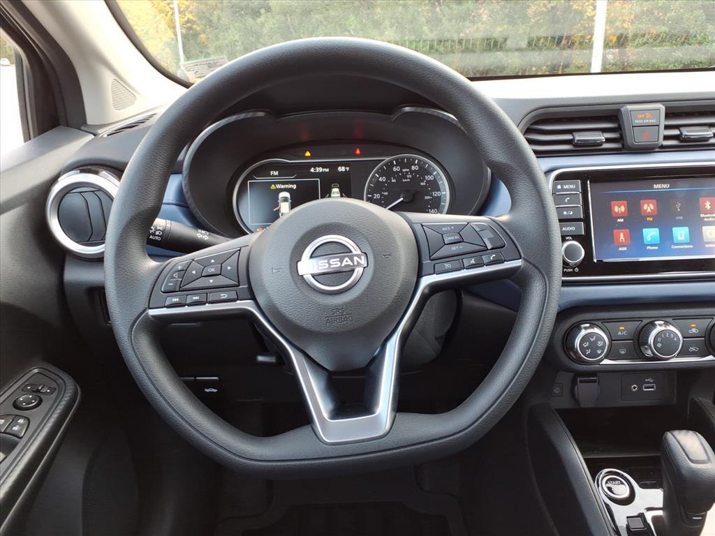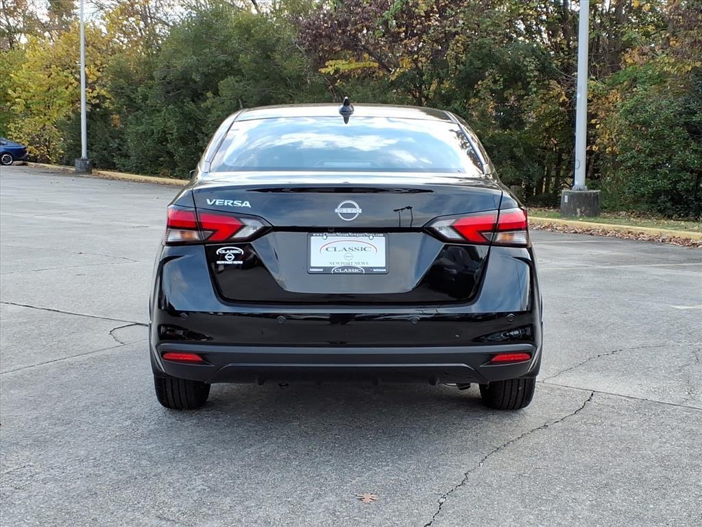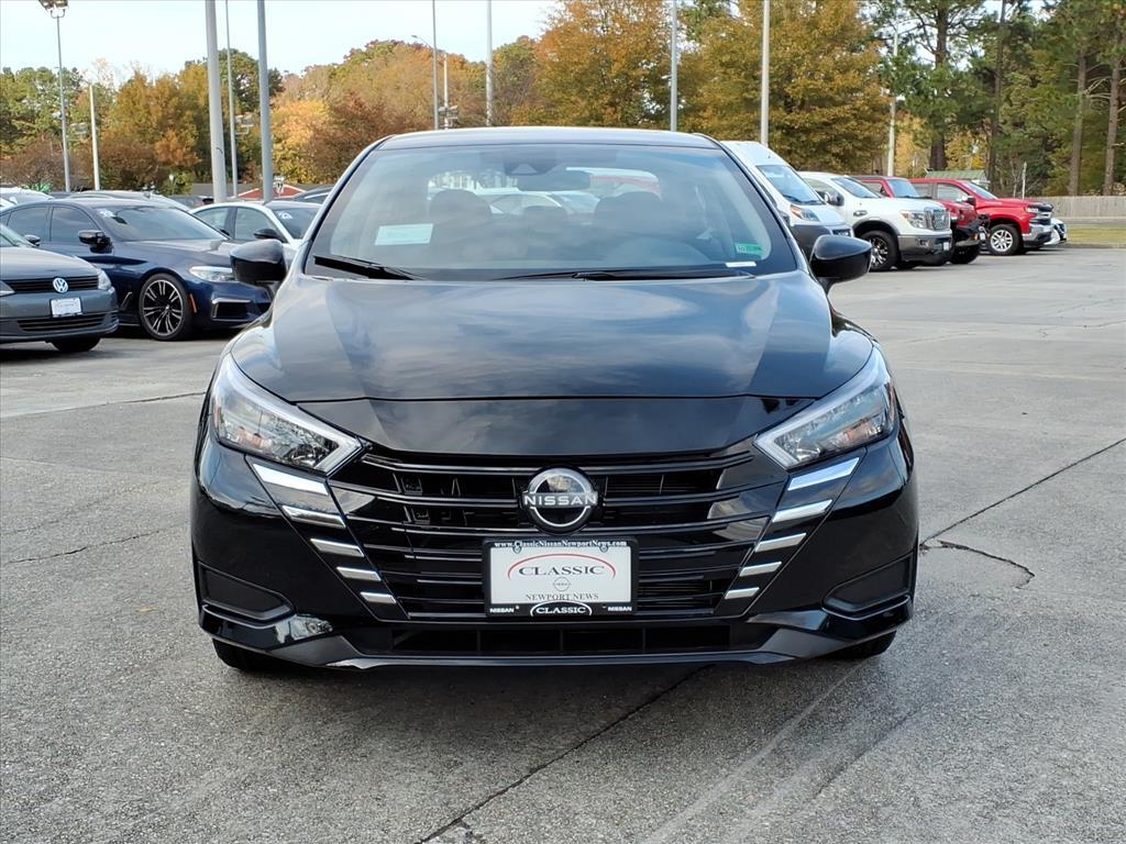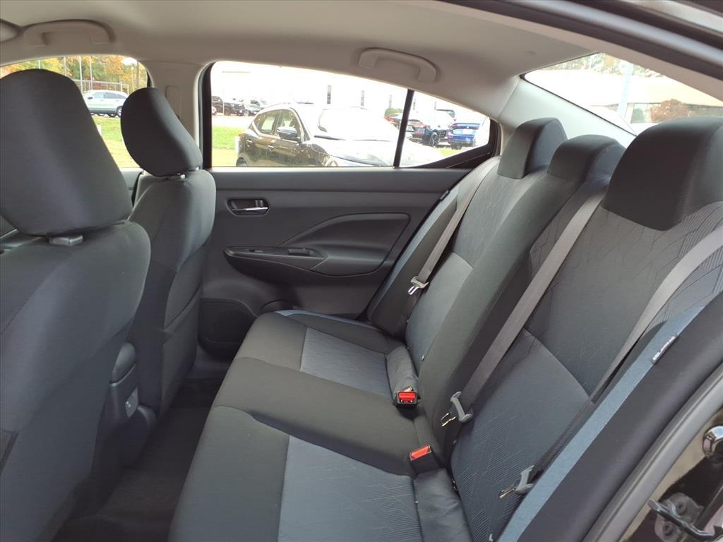 Super Black Metallic 2025 Nissan Versa 1.6 SV FWD CVT 1.6L I4 DOHC 16V We Deliver Anywhere, Extended Service Programs Available, 16Aluminum Alloy Wheels, 4 Speakers, ABS brakes, Air Conditioning, Alloy wheels, Apple CarPlay/Android Auto, Auto High-beam Headlights, Blind Spot Warning, Brake assist, Bumpers: body-color, Carpeted Floor Mats & Trunk Mat (5-Piece Set), Delay-off headlights, Driver door bin, Driver vanity mirror, Dual front impact airbags, Dual front side impact airbags, Electronic Stability Control, Front anti-roll bar, Front Bucket Seats, Front Center Armrest, Front reading lights, Front wheel independent suspension, Fully automatic headlights, Heated door mirrors, Illuminated entry, Knee airbag, Low tire pressure warning, Occupant sensing airbag, Outside temperature display, Overhead airbag, Panic alarm, Passenger door bin, Passenger vanity mirror, Power door mirrors, Power steering, Power windows, Radio data system, Radio: AM/FM Audio System, Rear Parking Sensors, Rear side impact airbag, Rear window defroster, Remote keyless entry, Shopping Bag Hooks, Speed control, Splash Guards, Split folding rear seat, Steering wheel mounted audio controls, Tachometer, Telescoping steering wheel, Tilt steering wheel, Traction control, Trip computer, Trunk Net, Trunk Package, Upgraded Cloth Seat Trim, Variably intermittent wipers. 32/40 City/Highway MPG Price includes: $750 - Nissan MY25 Versa Bonus Cash (All Markets) - November. Exp. 12/01/2025