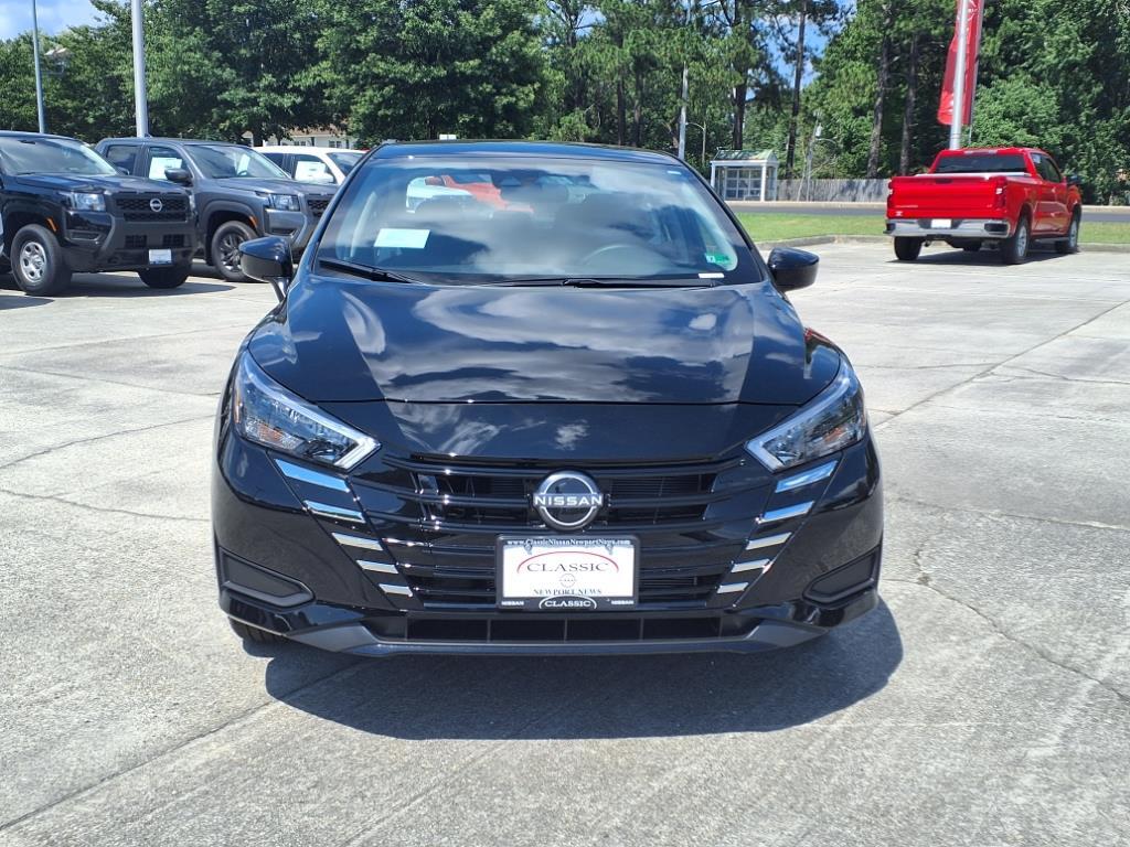 Super Black Metallic 2025 Nissan Versa 1.6 SV FWD CVT 1.6L I4 DOHC 16V We Deliver Anywhere, Extended Service Programs Available, 16Aluminum Alloy Wheels, 4 Speakers, ABS brakes, Air Conditioning, Alloy wheels, Apple CarPlay/Android Auto, Auto High-beam Headlights, Blind Spot Warning, Brake assist, Bumpers: body-color, Carpeted Floor Mats & Trunk Mat (5-Piece Set), Delay-off headlights, Driver door bin, Driver vanity mirror, Dual front impact airbags, Dual front side impact airbags, Electronic Stability Control, Front anti-roll bar, Front Bucket Seats, Front Center Armrest, Front reading lights, Front wheel independent suspension, Fully automatic headlights, Heated door mirrors, Illuminated entry, Knee airbag, Low tire pressure warning, Occupant sensing airbag, Outside temperature display, Overhead airbag, Panic alarm, Passenger door bin, Passenger vanity mirror, Power door mirrors, Power steering, Power windows, Radio data system, Radio: AM/FM Audio System, Rear Parking Sensors, Rear side impact airbag, Rear window defroster, Remote keyless entry, Shopping Bag Hooks, Speed control, Splash Guards, Split folding rear seat, Steering wheel mounted audio controls, Tachometer, Telescoping steering wheel, Tilt steering wheel, Traction control, Trip computer, Trunk Net, Trunk Package, Upgraded Cloth Seat Trim, USB Charging Cable Set, Variably intermittent wipers. Recent Arrival! 32/40 City/Highway MPG