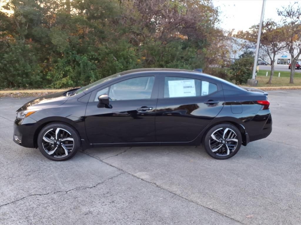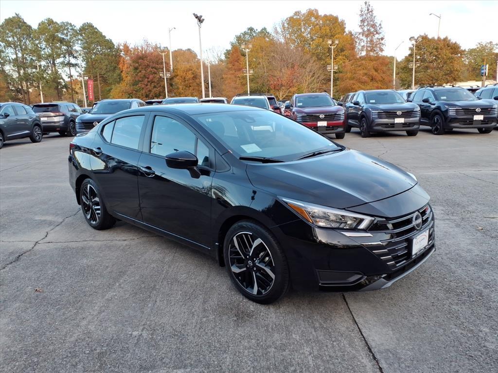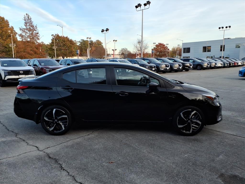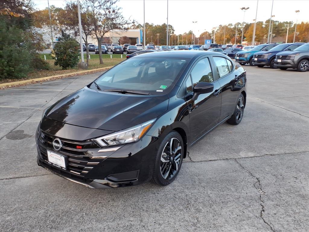 Super Black Metallic 2025 Nissan Versa 1.6 SR FWD CVT 1.6L I4 DOHC 16V We Deliver Anywhere, Extended Service Programs Available, 17Aluminum Alloy Wheels, 6 Speakers, ABS brakes, Air Conditioning, Alloy wheels, AM/FM radio: SiriusXM, Apple CarPlay/Android Auto, Auto High-beam Headlights, Automatic temperature control, Blind Spot Warning, Brake assist, Bumpers: body-color, Carpeted Floor Mats & Trunk Mat (5-Piece Set), Delay-off headlights, Driver door bin, Driver vanity mirror, Dual front impact airbags, Dual front side impact airbags, Electronic Stability Control, Emergency communication system, Front anti-roll bar, Front Bucket Seats, Front Center Armrest, Front reading lights, Front wheel independent suspension, Fully automatic headlights, Heated door mirrors, Heated Front Bucket Seats, Heated front seats, Illuminated entry, Knee airbag, Leather steering wheel, Low tire pressure warning, Occupant sensing airbag, Outside temperature display, Overhead airbag, Panic alarm, Passenger door bin, Passenger vanity mirror, Power door mirrors, Power steering, Power windows, Radio data system, Radio: AM/FM Audio System, Rear Parking Sensors, Rear side impact airbag, Rear window defroster, Remote keyless entry, Shopping Bag Hooks, Speed control, Splash Guards, Split folding rear seat, Spoiler, SR Fabric Seat Trim, Steering wheel mounted audio controls, Tachometer, Telescoping steering wheel, Tilt steering wheel, Traction control, Trip computer, Trunk Net, Trunk Package, Turn signal indicator mirrors, Variably intermittent wipers. 32/40 City/Highway MPG Price includes: $750 - Nissan MY25 Versa Bonus Cash (All Markets) - November. Exp. 12/01/2025