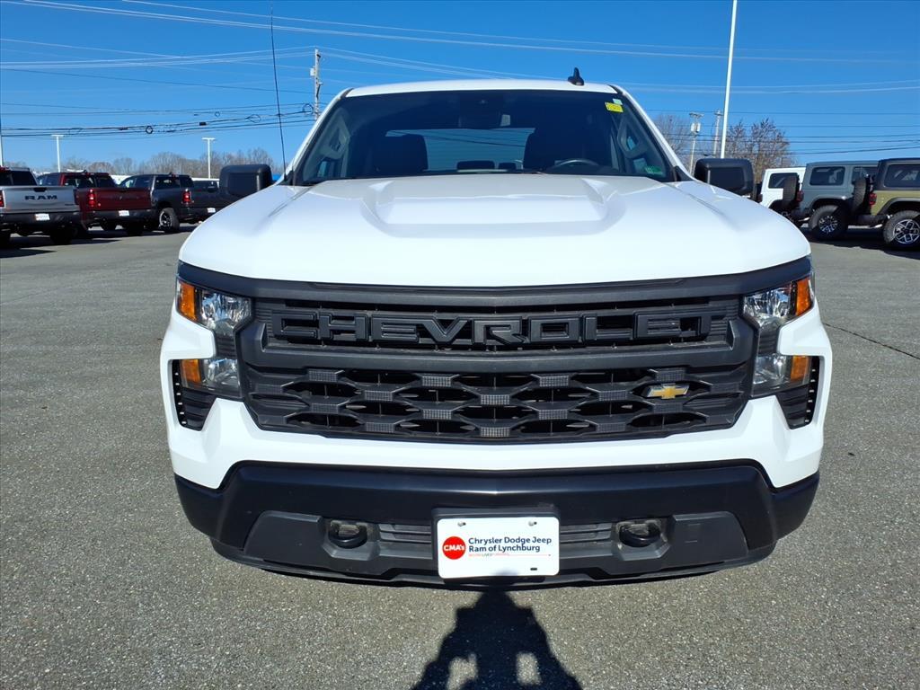 Thank you for choosing CMAs Chrysler Dodge Jeep Ram of Lynchburg, this Summit White 2024 Chevrolet Silverado 1500 Work Truck is a great choice! Check out the following:City 15/ Hwy 18 EMISSIONS, CONNECTICUT, DELAWARE, MAINE, MARYLAND, MASSACHUSETTS, NEW JERSEY, NEW YORK, OREGON, PENNSYLVANIA, RHODE ISLAND, VERMONT AND WASHINGTON STATE REQUIREMENTS, ENGINE, 5.3L ECOTEC3 V8, TRANSMISSION, 10-SPEED AUTOMATIC, ELECTRONICALLY CONTROLLED, GVWR, 7100 LBS. (3221 KG), REAR AXLE, 3.23 RATIO, WHEELS, 17 X 8 (43.2 CM X 20.3 CM) ULTRA SILVER PAINTED STEEL, TIRES, 255/70R17 ALL-SEASON, BLACKWALL, TIRE, SPARE 255/70R17 ALL-SEASON, BLACKWALL, SUMMIT WHITE, SEATS, FRONT 40/20/40 SPLIT-BENCH, JET BLACK, CLOTH SEAT TRIM, AUDIO SYSTEM, CHEVROLET INFOTAINMENT 3 SYSTEM, WT VALUE PACKAGE, WT CONVENIENCE PACKAGE, TRAILERING PACKAGE, AUTO-LOCKING REAR DIFFERENTIAL, COOLING, EXTERNAL ENGINE OIL COOLER, COOLING, AUXILIARY EXTERNAL TRANSMISSION OIL COOLER, ALTERNATOR, 170 AMPS, CHEVYTEC SPRAY-ON BEDLINER, BLACK, WHEELHOUSE LINERS, REAR, MIRRORS, OUTSIDE HEATED POWER-ADJUSTABLE, GLASS, DEEP-TINTED, LICENSE PLATE KIT, FRONT, STEERING COLUMN LOCK, ELECTRICAL, CRUISE CONTROL, ELECTRONIC, DEFOGGER, REAR-WINDOW ELECTRIC, HITCH GUIDANCESafety and Security The vehicle is equipped with a system that senses, and then prepares, the vehicle and/or occupants, for an impending forward collision. The vehicle constantly monitors the roadway in front of the vehicle and identifies and tracks pedestrians on an interior display. If the system determines a likely impact, it will automatically take preventative steps to avoid hitting the pedestrian.Technology and Telematics Wireless Apple CarPlay/Android Auto smart device wireless mirroring Thank you so much for taking the time to look at this beautiful ride. Please Call/Text to schedule your test drive today with one of our Sales Professionals here at CDJR of Lynchburg! We really appreciate the opportunity to serve you!WE BUY CARS GET PAID TODAY We are offering up to 120% of KBB TRADE!!!