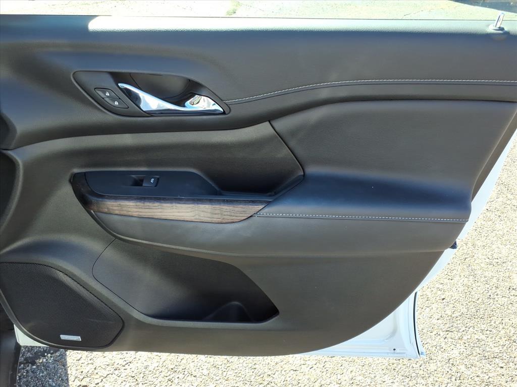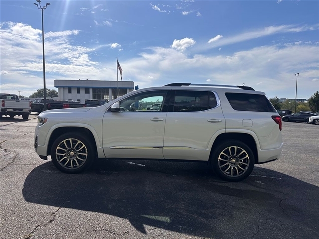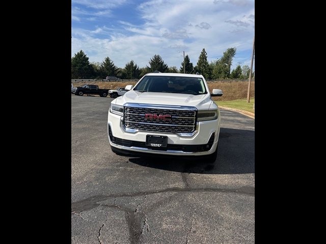 This 2023 GMC Acadia Denali is a 1-owner local trade, finished in White Frost Tricoat and equipped with AWD and a 2.0L turbocharged engine paired to a 9-speed automatic, achieving 22/27 city/highway MPG. Inside this Acadia Denali, youll enjoy Jet Black perforated leather-appointed seats with both heated and ventilated options for the front, heated rear outboard seats, and a heated steering wheel. The 6-passenger layout features 8-way power adjustments for both driver and passenger, memory settings, and dual-zone climate control with rear air conditioning. The cabin is loaded with tech, including a Bose 8-speaker audio system, navigation, wireless Apple CarPlay/Android Auto, SiriusXM with 360L, a heads-up display, and a dual SkyScape 2-panel power sunroof. Safety is comprehensive with adaptive cruise control, enhanced automatic emergency braking, HD Surround Vision, a rear camera mirror with washer, and brake assist. The exterior stands out with 20-inch ultra-bright machined aluminum wheels, fully automatic headlights, fog lights, heated mirrors, and a hands-free power liftgate for added convenience.