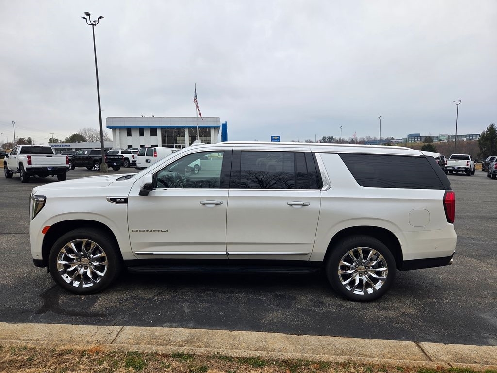 This accident-free 2024 GMC Yukon XL Denali impresses with its White Frost Tricoat finish, 4WD capability, and a powerful EcoTec3 6.2L V8 engine paired with a 10-speed automatic. With the odometer 5,804 miles below market average, this SUV offers both performance and peace of mind, achieving 14 city/18 highway MPG. Inside this Yukon XL Denali, youll find Dark Walnut/Very Dark Ash Gray perforated leather seating, 12-way power seat adjusters, heated and ventilated front seats, heated second-row outboard seats, and a heated steering wheel. The cabin features a dual-pane panoramic sunroof, 3rd row 60/40 power-folding split-bench, power release second-row bucket seats, and a premium audio system with navigation, Apple CarPlay, Android Auto, and a rear seat media system. The 15-inch head-up display, HD Surround Vision, and wireless charging add to the luxury and convenience. Safety is advanced with Enhanced Automatic Emergency Braking, Adaptive Cruise Control, Super Cruise, Enhanced Automatic Parking Assist, Reverse Automatic Braking, HD Surround Vision, and an advanced security package. The Max Trailering Package and Hitch View make towing easy and secure. The exterior features 22-inch steel interim wheels, hands-free power programmable liftgate, rain-sensing wipers, LED lighting, and a commanding presence. This Yukon XL Denali is ready for any journey, combining comfort, technology, and capability.