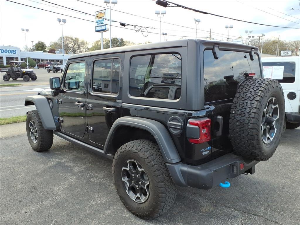 Vehicle DetailsExperience adventure and efficiency with this 2023 Jeep Wrangler 4xe Rubicon, a head-turning plug-in hybrid ready for Lynchburg roads and rugged trails alike. With just 42,648 miles, this 4WD Rubicon combines Jeeps legendary off-road heritage with cutting-edge PHEV technology powered by a 2.0L 4-cylinder engine. Built for exploration, the Off-Road Package equips you with the capability to conquer rough terrain while premium Leather Seats deliver comfort after a long day of trailblazing. This Jeep Wrangler 4xe Rubicon features integrated Navigation to guide your next outdoor escape and city commute with confidence. The vehicle arrives with a CARFAX 1-Owner history and a CARFAX Clean Report, providing reassurance about its care and provenance. The Rubicon trim adds rugged design elements and advanced off-road hardware that enthusiasts demand, from reinforced axles to selectable drive modes tailored to challenging conditions. Located in Lynchburg, VA, this Jeep Wrangler 4xe Rubicon is ideal for drivers who want a versatile, capable SUV that blends modern electrified performance with off-road prowess. Whether youre planning weekend camping trips, coastal drives, or daily urban runs, this Jeep offers a compelling mix of style, comfort, and capability. Schedule a viewing in Lynchburg and see why the 2023 Jeep Wrangler 4xe Rubicon remains a top choice for adventurous drivers seeking a refined, trail-ready plug-in hybrid.EquipmentSee whats behind you with the back up camera on this unit. This 2023 Jeep Wrangler 4xe keeps you comfortable with Auto Climate. The vehicle features a hands-free Bluetooth phone system. This model offers Android Auto for seamless smartphone integration. The installed navigation system will keep you on the right path. Keep your hands warm all winter with a heated steering wheel in this vehicle . The Jeep Wrangler 4xe has a clean CARFAX vehicle history report. An off-road package is installed on this Jeep Wrangler 4xe so you are ready for your four-wheeling best. The leather seats in this model are a must for buyers looking for comfort, durability, and style. This vehicle is a certified CARFAX 1-owner. Start this 2023 Jeep Wrangler 4xe from inside with remote start. This vehicle offers Apple CarPlay for seamless connectivity. with XM/Sirus Satellite Radio you are no longer restricted by poor quality local radio stations while driving this model. Anywhere on the planet, you will have hundre
