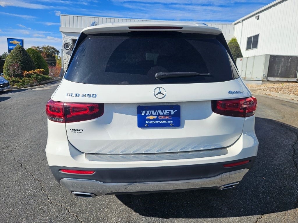 This 2022 Mercedes-Benz GLB 250 4MATIC is a 1-owner, local trade finished in Polar White, equipped with all-wheel drive and a turbocharged 2.0L I4 engine paired to an 8-speed automatic. With a balanced 22/30 city/highway MPG, this GLB 250 offers both efficiency and capability. Inside this GLB 250, youll find MB-Tex upholstery, 8-way power front comfort seats, a memory seat for the driver, and dual-zone climate control. The cabin is highlighted by a 10.25-inch digital instrument cluster, a 10.25-inch MBUX touchscreen, premium audio, Apple CarPlay/Android Auto, smartphone integration, and remote keyless entry for a connected and comfortable experience. Safety features include brake assist, a rearview camera, rain-sensing wipers, fully automatic headlights, front fog lights, heated power folding mirrors, and a security system, all designed to enhance your peace of mind. The exterior stands out with 19-inch 10-spoke wheels with matte black accents, a power liftgate, roof rails, and sleek styling that gives this GLB 250 a modern, confident look.