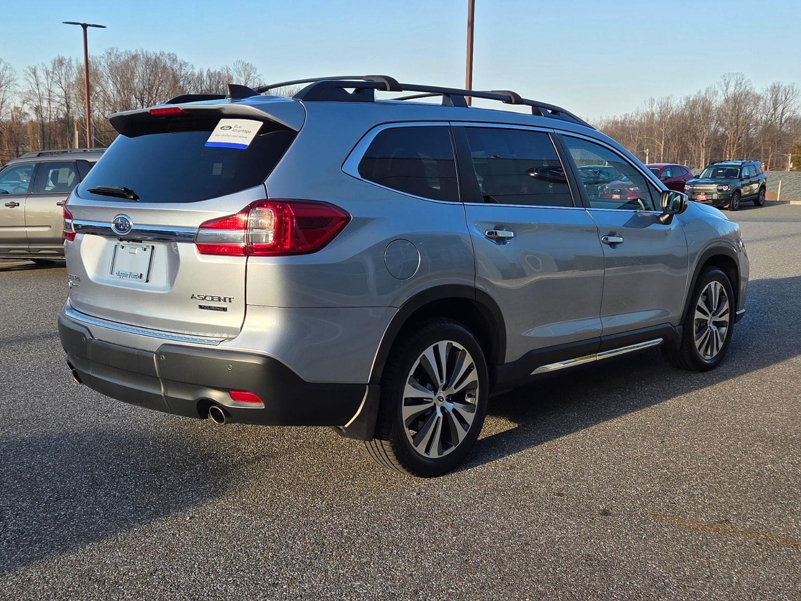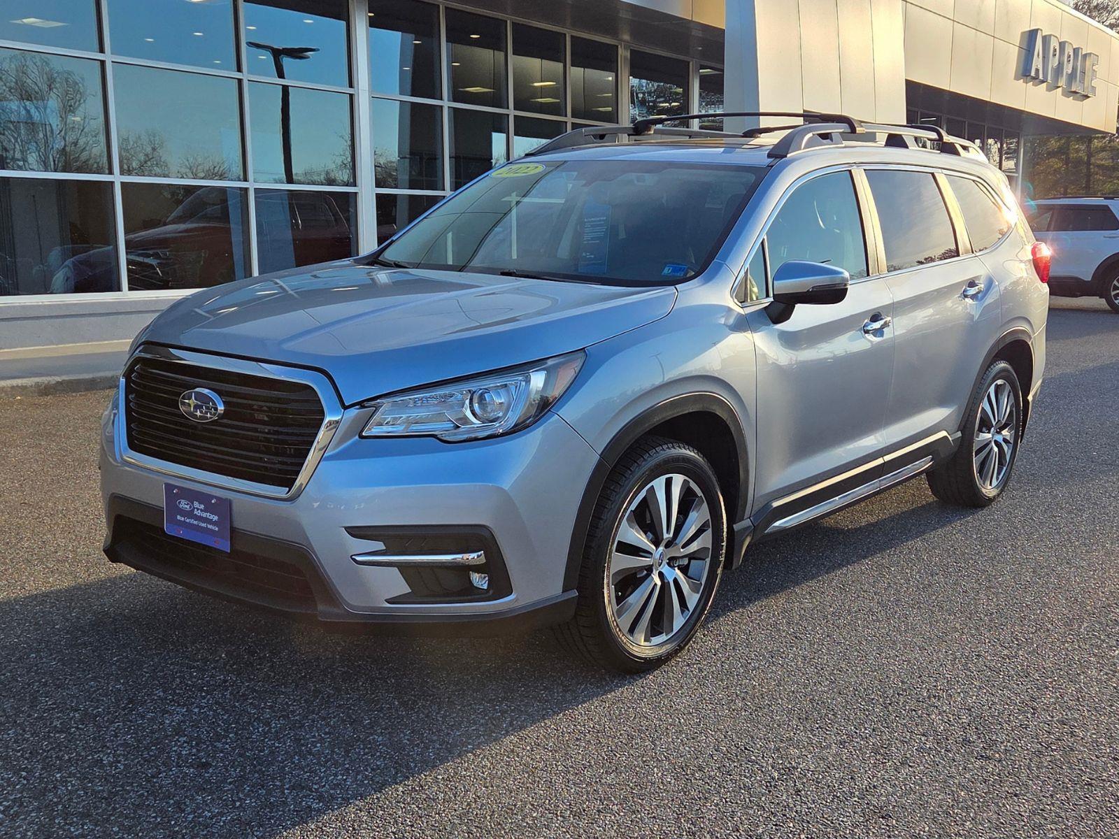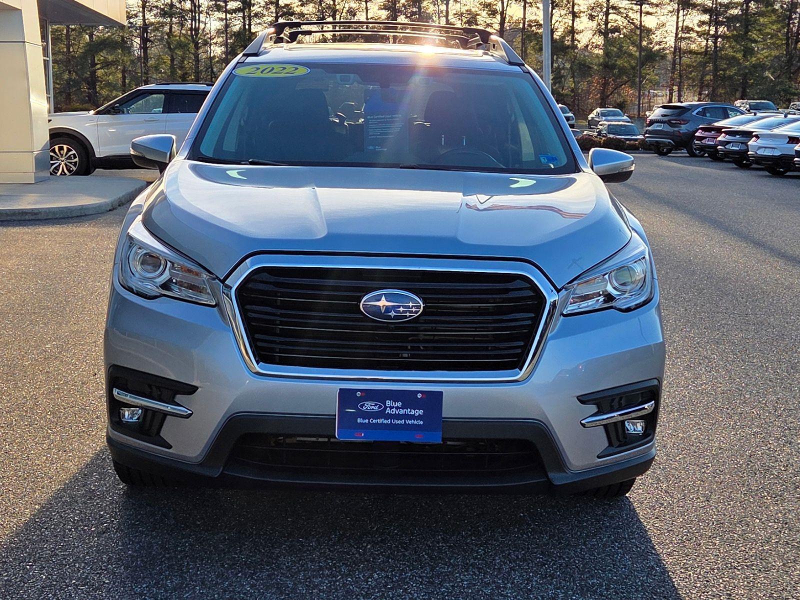 Certified. Ice Silver Metallic 2022 Subaru Ascent Touring AWD Lineartronic CVT 2.4L 4-Cylinder DOHC 16V 3RD ROW SEAT, All-Weather Floor Liners, Auto-Dimming Exterior Mirror w/Approach Light, AWD, BACK UP CAMERA, Cargo Tray, HEATED SEATS, LEATHER INTERIOR, LOCAL 1 OWNER, LOW MILES!!, Map & Reading Lights LED Upgrade - 6 Bulb Kit, NAVIGATION, Popular Package #2A, Rear Bumper Cover, Splash Guards.Odometer is 8282 miles below market average! 20/26 City/Highway MPGCertification Program Details: Ford Blue Advantage: Blue Certified* 139 Point Inspection* Transferable Warranty* Vehicle History* Warranty Deductible: $100* Roadside Assistance* Limited Warranty: 3 Month/4,000 Mile (whichever comes first) after new car warranty expires or from certified purchase date* and 11,000 FordPass Rewards Points to use toward first maintenance visitPopular Package #2A (All-Weather Floor Liners, Auto-Dimming Exterior Mirror w/Approach Light, Cargo Tray, Map & Reading Lights LED Upgrade - 6 Bulb Kit, Rear Bumper Cover, and Splash Guards), Standard Model, Ford Blue Advantage: Blue Certified Certified, 3RD ROW SEAT, AWD, BACK UP CAMERA, HEATED SEATS, LEATHER INTERIOR, LOCAL 1 OWNER, LOW MILES!!, NAVIGATION, 14 Speakers, 2nd Row Captain's Chairs Rear Seatback Protector, 3rd row seats: bench, 4-Wheel Disc Brakes, ABS brakes, Air Conditioning, Alloy wheels, AM/FM radio: SiriusXM, Auto High-beam Headlights, Auto-dimming Rear-View mirror, Automatic temperature control, Axle Ratio: 4.44, Brake assist, Bumpers: body-color, CD player, Compass, Delay-off headlights, Driver door bin, Driver vanity mirror, Dual front impact airbags, Dual front side impact airbags, Electronic Stability Control, Emergency communication system: STARLINK Safety and Security (Subscription Required), Exterior Parking Camera Rear, Four wheel independent suspension, Front anti-roll bar, Front Bucket Seats, Front Center Armrest, Front dual zone A/C, Front fog lights, Front reading lights, Fully automatic headlights, Garage door transmitter: HomeLink, harman/kardon Speakers, Heated & Ventilated Front Bucket Seats, Heated door mirrors, Heated front seats, Heated rear seats, Heated steering wheel, Illuminated entry, Knee airbag, Low tire pressure warning, Memory seat, Navigation System, Occupant sensing airbag, Outside temperature display, Overhead airbag, Overhead console, Panic alarm, Passenger door bin, Passenger vanity mirror, Perforated Leather-Trimmed Uph