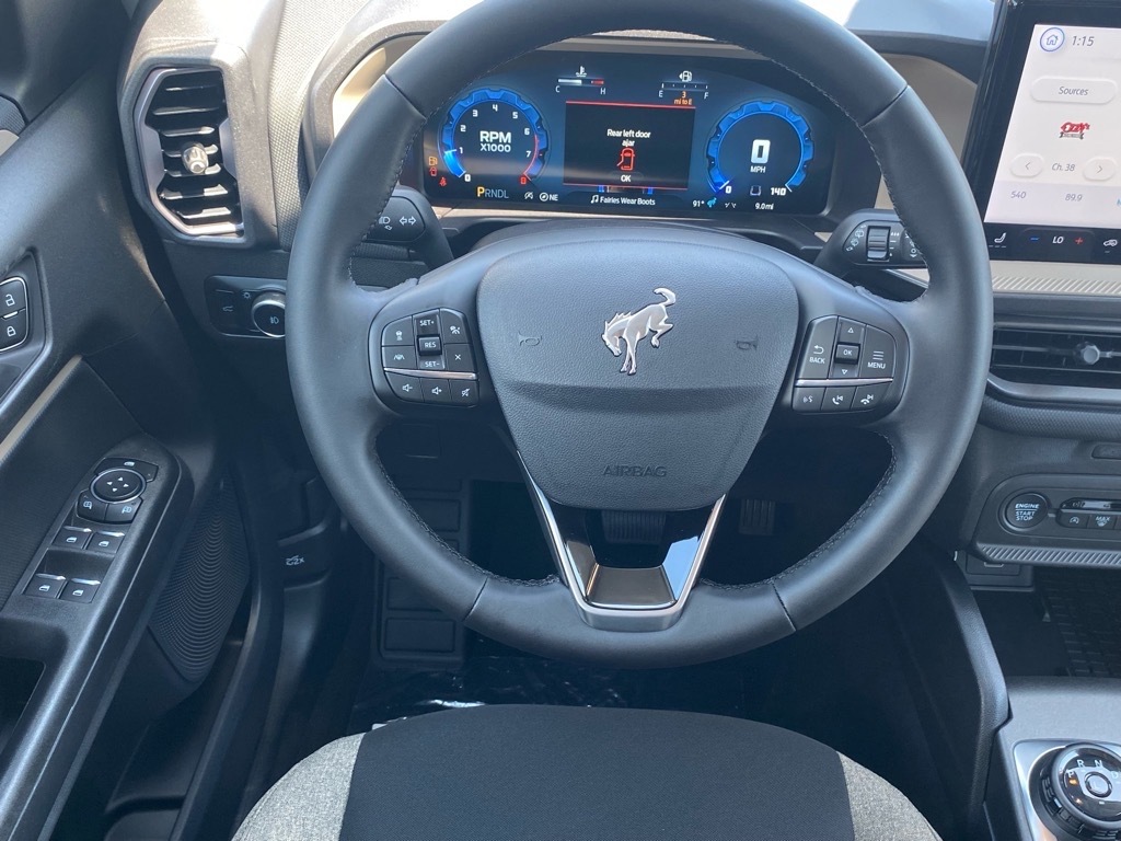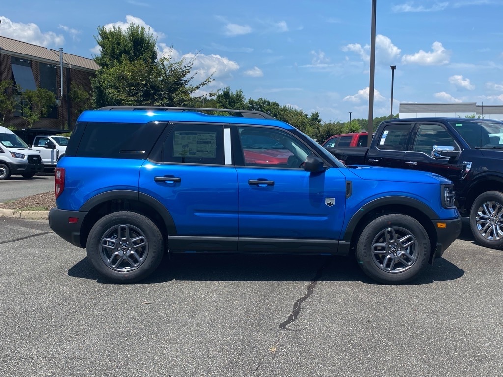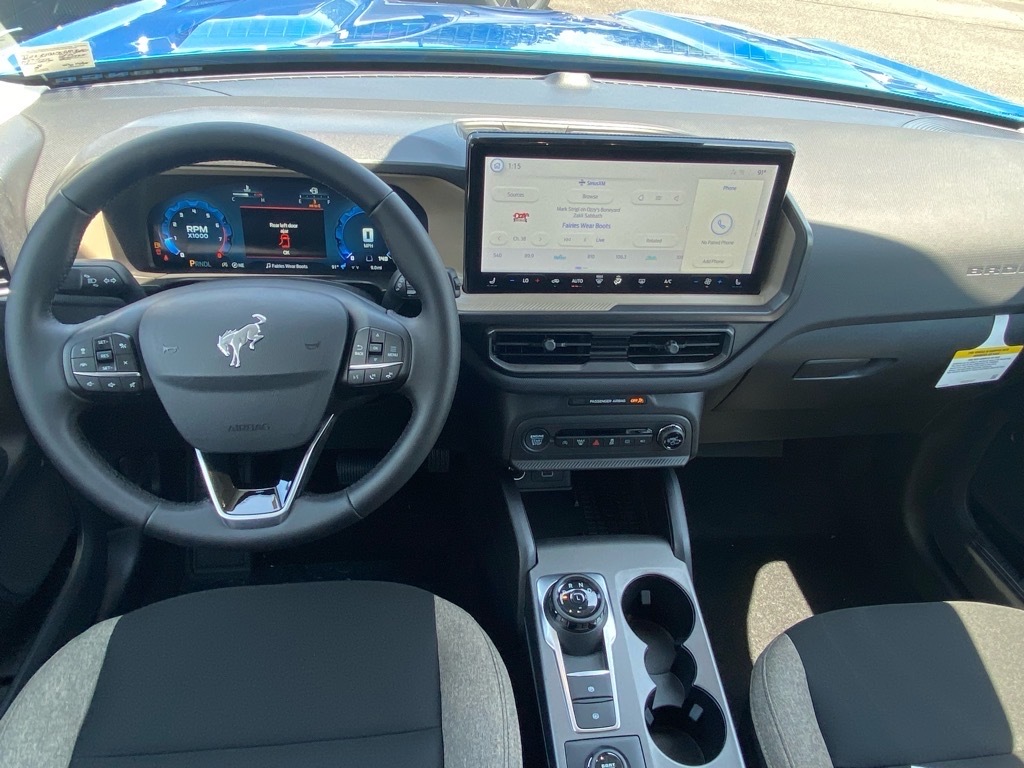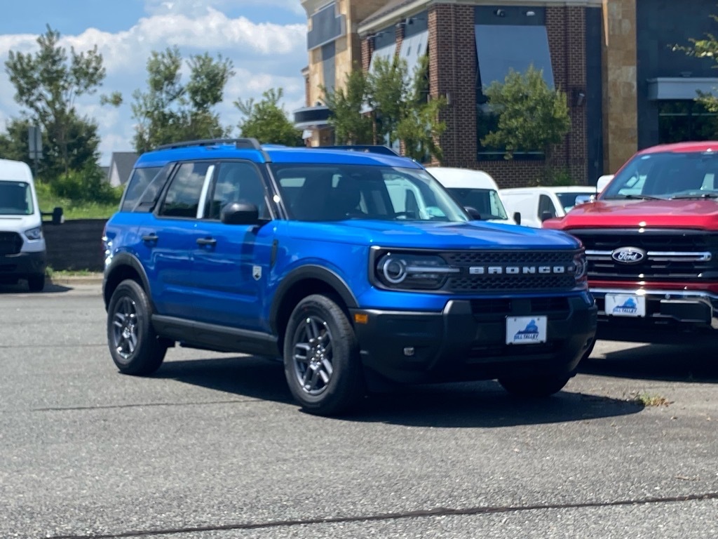 Blue Metallic 2025 Ford Bronco Sport Big Bend 4WD 8-Speed Automatic 1.5L EcoBoost Bronco Sport Big Bend, 4D Sport Utility, 1.5L EcoBoost, 8-Speed Automatic, 4WD, Blue Metallic, Medium Lt Smoked Truffle Cloth, 4-Wheel Disc Brakes, 6 Speakers, ABS brakes, Air Conditioning, Alloy wheels, AM/FM radio: SiriusXM, AM/FM Stereo, Auto High-beam Headlights, Automatic temperature control, Brake assist, Cloth w/Easy-to-Clean Front Bucket Seats, Convenience Package, Delay-off headlights, Driver vanity mirror, Dual front impact airbags, Dual front side impact airbags, Electronic Stability Control, Emergency communication system: SYNC 4 911 Assist, Equipment Group 200A, Four wheel independent suspension, Front anti-roll bar, Front Bucket Seats, Front Center Armrest, Front Driver/Passenger Seat Back Map Pockets, Front reading lights, Fully automatic headlights, Heated 8-Way Power Drivers Seat, Heated door mirrors, Illuminated entry, Knee airbag, LED Fog Lamps, Low tire pressure warning, Occupant sensing airbag, Outside temperature display, Overhead airbag, Overhead console, Panic alarm, Passenger vanity mirror, Power door mirrors, Power steering, Power windows, Premium Wrapped Steering Wheel, Radio data system, Rear anti-roll bar, Rear Parking Sensors, Rear reading lights, Rear seat center armrest, Rear window defroster, Rear window wiper, Remote keyless entry, Security system, SiriusXM, Speed control, Speed-sensing steering, Speed-Sensitive Wipers, Split folding rear seat, Steering wheel mounted audio controls, SYNC 4 w/Enhanced Voice Recognition, Telescoping steering wheel, Tilt steering wheel, Traction control, Universal Garage Door Opener (UGDO), Variably intermittent wipers, Wheels: 17Carbonized Gray-Painted Aluminum. Odometer is 7922 miles below market average! 25/30 City/Highway MPG