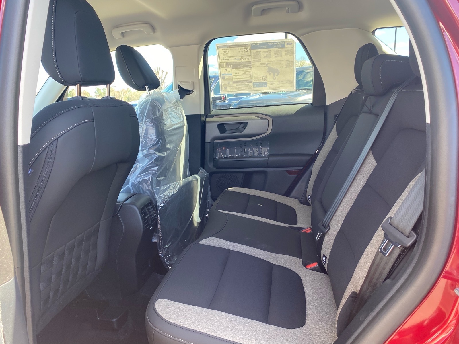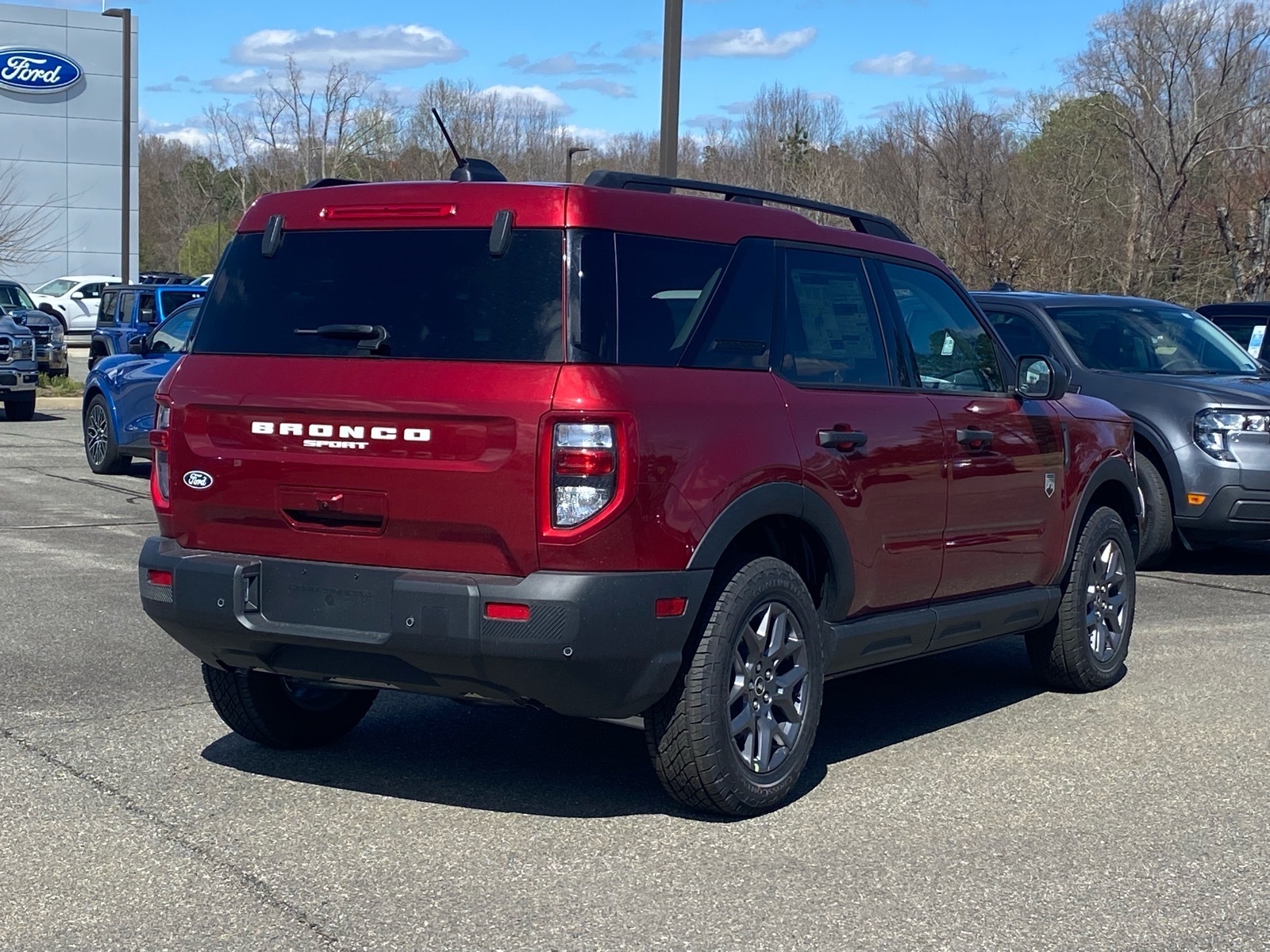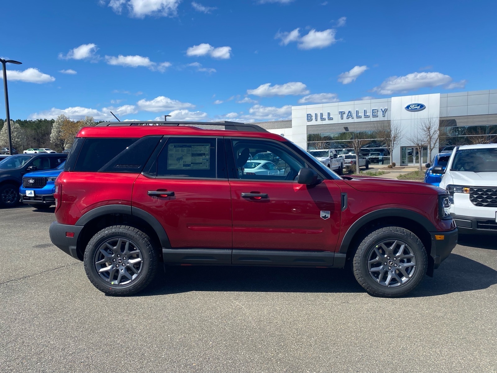 25/30 City/Highway MPG Ruby Red 2026 Ford Bronco Sport Big Bend 4WD 8-Speed Automatic 1.5L EcoBoost Equipment Group 200A Standard Package (AM/FM Stereo, Cloth with Easy-to-Clean Front Bucket Seats, SiriusXM with 360L, SYNC 4 with Enhanced Voice Recognition, and Wheels: 17Carbonized Gray Painted Aluminum), Ford Connectivity Package (1-Year Included), Internet access capable: 5G Modem - Ford Connectivity Package, 4-Wheel Disc Brakes, 6 Speakers, ABS brakes, Air Conditioning, Alloy wheels, AM/FM radio: SiriusXM with 360L, Apple CarPlay/Android Auto, Auto High-beam Headlights, Automatic temperature control, Brake assist, Compass, Delay-off headlights, Driver door bin, Driver vanity mirror, Dual front impact airbags, Dual front side impact airbags, Electronic Stability Control, Emergency communication system: SYNC 4 911 Assist, Exterior Parking Camera Rear, Four wheel independent suspension, Front anti-roll bar, Front Bucket Seats, Front Center Armrest, Front License Plate Bracket, Front reading lights, Fully automatic headlights, Heated door mirrors, Illuminated entry, Knee airbag, Low tire pressure warning, Occupant sensing airbag, Outside temperature display, Overhead airbag, Overhead console, Panic alarm, Passenger door bin, Passenger vanity mirror, Power door mirrors, Power steering, Power windows, Radio data system, Rear anti-roll bar, Rear Parking Sensors, Rear reading lights, Rear seat center armrest, Rear window defroster, Rear window wiper, Remote keyless entry, Security system, Speed control, Speed-sensing steering, Speed-Sensitive Wipers, Split folding rear seat, Steering wheel mounted audio controls, Tachometer, Telescoping steering wheel, Tilt steering wheel, Traction control, Trip computer, Variably intermittent wipers, and Wheels: 17Carbonized Gray-Painted Aluminum.