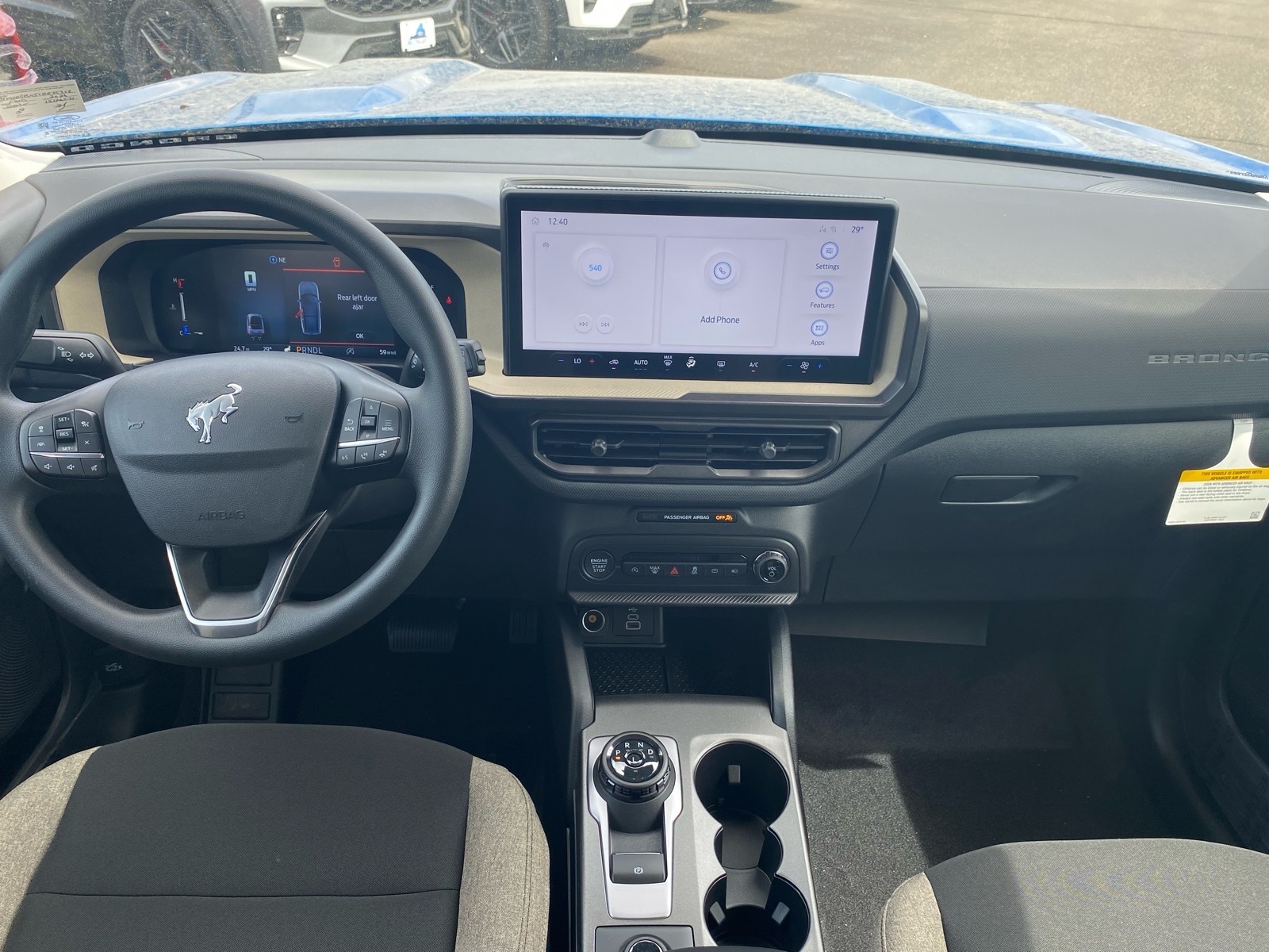 25/30 City/Highway MPG Recent Arrival! New Price! Blue 2026 Ford Bronco Sport Big Bend 4WD 8-Speed Automatic 1.5L EcoBoost Ford Connectivity Package (1-Year Included), Internet access capable: 5G Modem - Ford Connectivity Package, 4-Wheel Disc Brakes, 6 Speakers, ABS brakes, Air Conditioning, Alloy wheels, AM/FM radio: SiriusXM with 360L, AM/FM Stereo, Apple CarPlay/Android Auto, Auto High-beam Headlights, Automatic temperature control, Brake assist, Cloth with Easy-to-Clean Front Bucket Seats, Compass, Delay-off headlights, Driver door bin, Driver vanity mirror, Dual front impact airbags, Dual front side impact airbags, Electronic Stability Control, Emergency communication system: SYNC 4 911 Assist, Exterior Parking Camera Rear, Four wheel independent suspension, Front anti-roll bar, Front Bucket Seats, Front Center Armrest, Front reading lights, Fully automatic headlights, Heated door mirrors, Illuminated entry, Knee airbag, Low tire pressure warning, Occupant sensing airbag, Outside temperature display, Overhead airbag, Overhead console, Panic alarm, Passenger door bin, Passenger vanity mirror, Power door mirrors, Power steering, Power windows, Radio data system, Rear anti-roll bar, Rear Parking Sensors, Rear reading lights, Rear seat center armrest, Rear window defroster, Rear window wiper, Remote keyless entry, Security system, SiriusXM with 360L, Speed control, Speed-sensing steering, Speed-Sensitive Wipers, Split folding rear seat, Steering wheel mounted audio controls, SYNC 4 with Enhanced Voice Recognition, Tachometer, Telescoping steering wheel, Tilt steering wheel, Traction control, Trip computer, Variably intermittent wipers, and Wheels: 17Carbonized Gray Painted Aluminum.