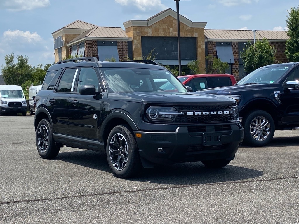 Priced below KBB Fair Purchase Price! 25/30 City/Highway MPG Shadow Black 2025 Ford Bronco Sport Outer Banks 4WD 8-Speed Automatic 1.5L EcoBoost Equipment Group 300A, 4-Wheel Disc Brakes, 6 Speakers, ABS brakes, Air Conditioning, Alloy wheels, AM/FM radio: SiriusXM, AM/FM Stereo, Auto High-beam Headlights, Auto-dimming Rear-View mirror, Automatic temperature control, Brake assist, Compass, Delay-off headlights, Driver door bin, Driver vanity mirror, Dual front impact airbags, Dual front side impact airbags, Electronic Stability Control, Emergency communication system: SYNC 4 911 Assist, Four wheel independent suspension, Front anti-roll bar, Front Bucket Seats, Front Center Armrest, Front Driver/Passenger Seat Back Map Pockets, Front dual zone A/C, Front fog lights, Front License Plate Bracket, Front reading lights, Fully automatic headlights, Garage door transmitter, Heated door mirrors, Heated front seats, Heated steering wheel, Illuminated entry, Knee airbag, Low tire pressure warning, Memory seat, Occupant sensing airbag, Outside temperature display, Overhead airbag, Overhead console, Panic alarm, Passenger door bin, Passenger vanity mirror, Power door mirrors, Power driver seat, Power passenger seat, Power steering, Power windows, Premium Trimmed Front Bucket Seats w/Ebony/Roast, Radio data system, Rain sensing wipers, Rear anti-roll bar, Rear Parking Sensors, Rear reading lights, Rear seat center armrest, Rear window defroster, Rear window wiper, Remote keyless entry, Security system, SiriusXM, Speed control, Speed-sensing steering, Speed-Sensitive Wipers, Split folding rear seat, Steering wheel mounted audio controls, SYNC 4 w/Enhanced Voice Recognition, Tachometer, Telescoping steering wheel, Tilt steering wheel, Traction control, Trip computer, Variably intermittent wipers, and Wheels: 18Ebony Black-Painted Aluminum. Price includes: $1000 - Final Days Mega Bonus Cash. Exp. 01/02/2026 $1500 - Retail Bonus Cash. Exp. 01/05/2026