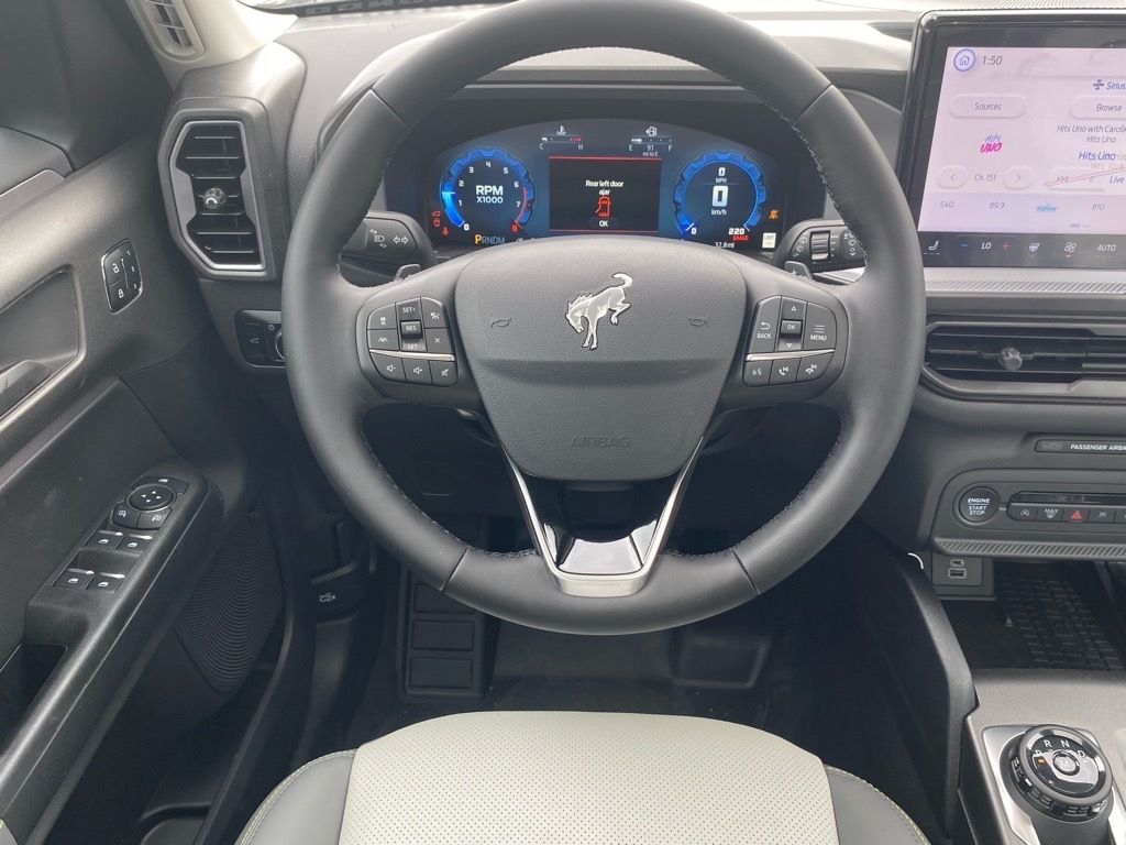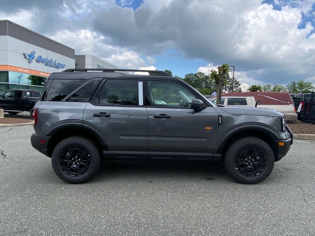 21/27 City/Highway MPG Gray Metallic 2025 Ford Bronco Sport Badlands 4WD 8-Speed Automatic EcoBoost 2.0L I4 GTDi DOHC Turbocharged VCT Badlands Tech Package (B&O Sound System by Bang & Olufsen, Connected Navigation, and HD Radio), Equipment Group 400A, Sasquatch Badlands Package (850W Engine Cooling Fan, Auxiliary Switches & Wiring, Brush Guard, Fender Tie Downs, High Clearance Fender Flares, HOSS 3.0 Off-Road Suspension, Rear Black Bumpers, Recovery Hooks, and Wheels: 17Ebony Black-Painted Aluminum), 4-Wheel Disc Brakes, 6 Speakers, ABS brakes, Air Conditioning, Alloy wheels, AM/FM radio: SiriusXM, AM/FM Stereo, Auto High-beam Headlights, Auto-dimming Rear-View mirror, Automatic temperature control, Brake assist, Compass, Delay-off headlights, Driver door bin, Driver vanity mirror, Dual front impact airbags, Dual front side impact airbags, Electronic Stability Control, Emergency communication system: SYNC 4 911 Assist, Four wheel independent suspension, Front & Rear Floor Liners w/o Carpet Mats, Front anti-roll bar, Front Bucket Seats, Front Center Armrest, Front fog lights, Front License Plate Bracket, Front reading lights, Fully automatic headlights, Garage door transmitter, Heated door mirrors, Heated front seats, Heated steering wheel, Illuminated entry, Keyless Entry Keypad (DIO), Knee airbag, Leather Trimmed Front Bucket Seats, Low tire pressure warning, Memory seat, Occupant sensing airbag, Outside temperature display, Overhead airbag, Overhead console, Panic alarm, Passenger door bin, Passenger vanity mirror, Power door mirrors, Power driver seat, Power Moonroof, Power passenger seat, Power steering, Power windows, Radio data system, Rear anti-roll bar, Rear reading lights, Rear seat center armrest, Rear window defroster, Rear window wiper, Remote keyless entry, Security system, SiriusXM, Speed control, Speed-sensing steering, Speed-Sensitive Wipers, Split folding rear seat, Steering wheel mounted audio controls, SYNC 4 w/Enhanced Voice Recognition, Tachometer, Telescoping steering wheel, Tilt steering wheel, Traction control, Trip computer, Variably intermittent wipers, and Wheels: 17Matte Black-Painted Aluminum. Price includes: $1000 - Final Days Mega Bonus Cash. Exp. 01/02/2026 $1500 - Retail Bonus Cash. Exp. 01/05/2026