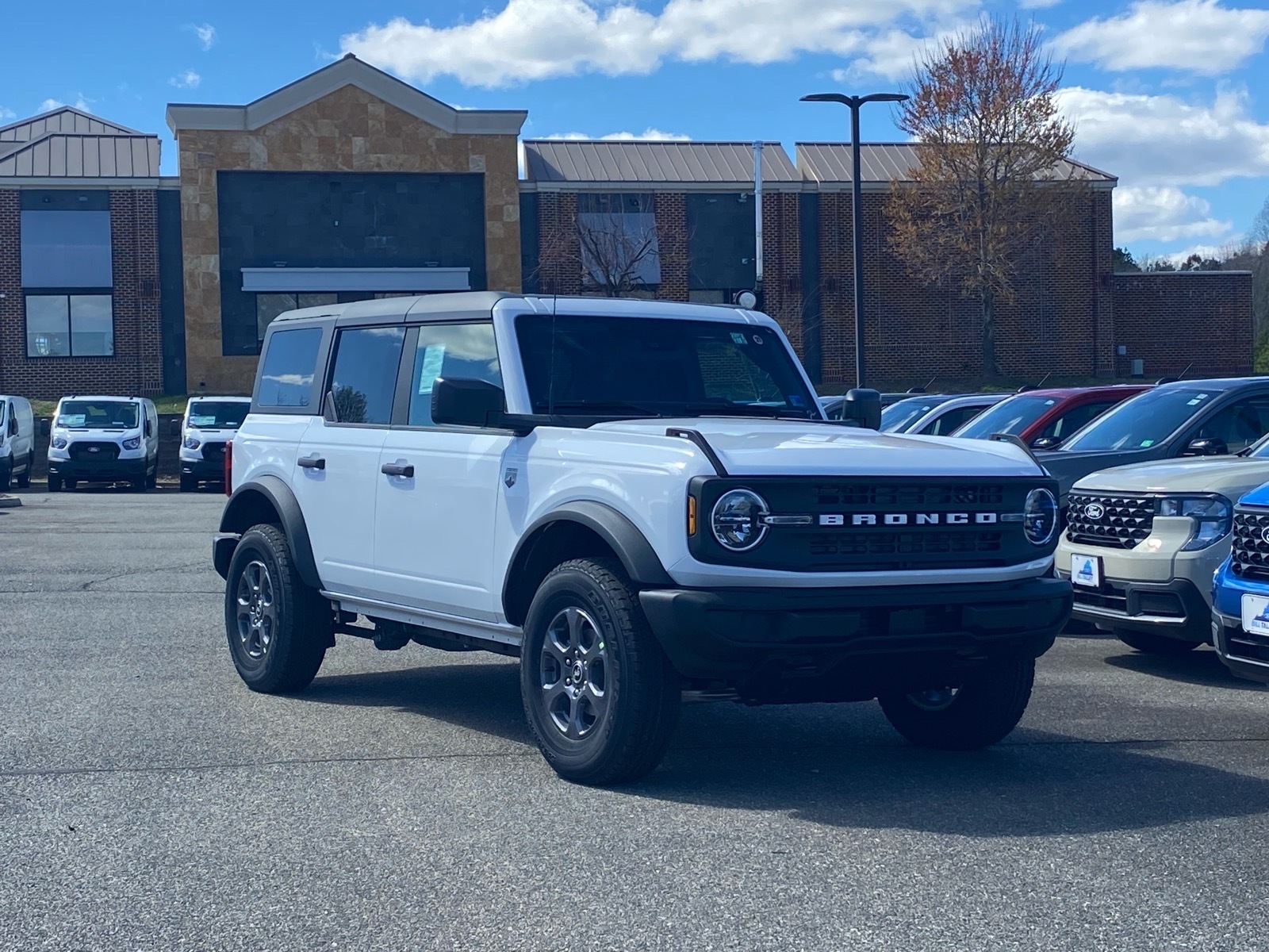 Oxford White 2026 Ford Bronco Big Bend 4WD 2.3L EcoBoost I-4 Ford Connectivity Package (1-Year Included), 4-Wheel Disc Brakes, 4.46 Axle Ratio, 7 Speakers, ABS brakes, Air Conditioning, Alloy wheels, AM/FM radio: SiriusXM with 360L, AM/FM Stereo, Auto High-beam Headlights, Brake assist, Cloth Bucket Seats, Compass, Delay-off headlights, Driver door bin, Driver vanity mirror, Dual front impact airbags, Dual front side impact airbags, Electronic Stability Control, Emergency communication system: 911 Assist, Exterior Parking Camera Rear, Front anti-roll bar, Front Bucket Seats, Front Center Armrest, Front reading lights, Front wheel independent suspension, Fully automatic headlights, Heated door mirrors, Illuminated entry, Integrated roll-over protection, Low tire pressure warning, Occupant sensing airbag, Outside temperature display, Overhead airbag, Overhead console, Panic alarm, Passenger door bin, Passenger vanity mirror, Power door mirrors, Power steering, Power windows, Radio data system, Remote keyless entry, Security system, SiriusXM with 360L, Speed control, Split folding rear seat, Steering wheel mounted audio controls, SYNC 4, Tachometer, Telescoping steering wheel, Tilt steering wheel, Traction control, Trip computer, Variably intermittent wipers, and Wheels: 17Carbonized Gray-Painted Aluminum. Price includes: $750 - Retail Customer Cash. Exp. 04/30/2026