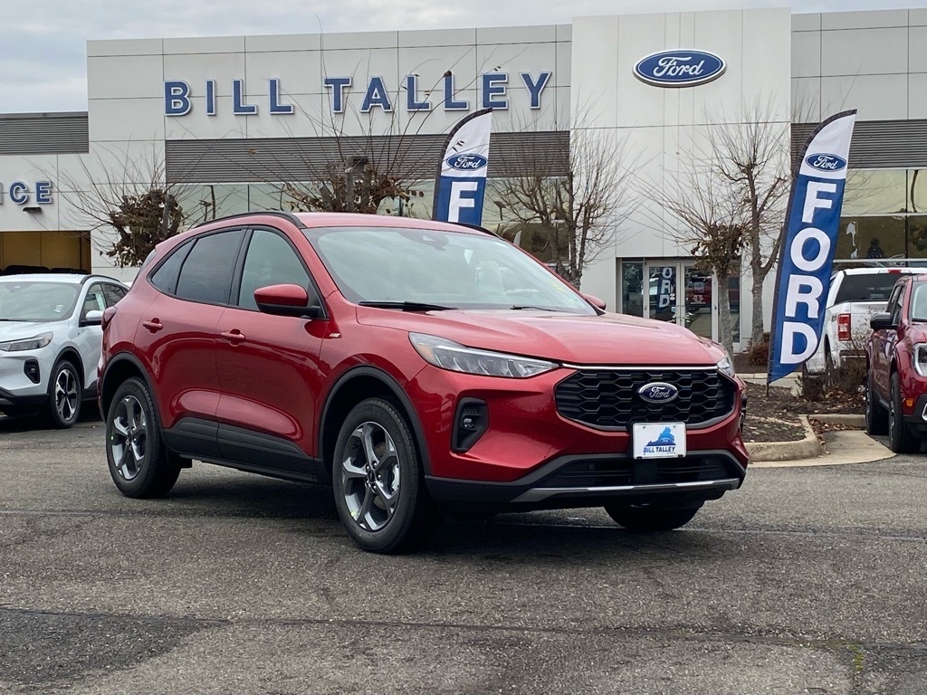 Priced below KBB Fair Purchase Price! 42/36 City/Highway MPG Red Metallic 2026 Ford Escape Hybrid ST-Line Select AWD eCVT 2.5L iVCT 2.5L iVCT. Class II Trailer Tow Package, Equipment Group 400A (2.91 Axle Ratio, 4-Way Manual Front Passenger Seat, 8-Way Power Driver Seat, Electronic Fuel Door Release, Ford App, Neutral Towing Capability, Partial Vinyl/Cloth Heated Front Sport Contour Bucket Seats with Red Stitching, Pedestrian Alert Sounder, Radio: AM/FM Stereo with SiriusXM 360L, SYNC 4, and Wheels: 18Rock Metallic Painted Aluminum), Tech Pack #1 (Adaptive Cruise Control with Stop-and-Go, Connected Navigation (1-Year Included), Digital Rear View Camera, Evasive Steering Assist, Ford Co-Pilot360 Assist , Intersection Assist, Predictive Speed Assist, Rear Parking Sensor, and SYNC 4 with Enhanced Voice Recognition), 2.5L iVCT, 10-Way Power Drivers Seat w/Memory, 4-Wheel Disc Brakes, 6 Speakers, ABS brakes, Air Conditioning, Alloy wheels, AM/FM radio: SiriusXM 360L, Auto High-beam Headlights, Automatic temperature control, Brake assist, Bumpers: body-color, Compass, Delay-off headlights, Driver door bin, Driver vanity mirror, Dual front impact airbags, Dual front side impact airbags, Electronic Stability Control, Emergency communication system: SYNC 4 911 Assist, Four wheel independent suspension, Front anti-roll bar, Front Bucket Seats, Front Center Armrest, Front dual zone A/C, Front fog lights, Front License Plate Bracket, Front reading lights, Fully automatic headlights, Heated door mirrors, Heated front seats, Heated steering wheel, Illuminated entry, Knee airbag, Low tire pressure warning, Memory seat, Occupant sensing airbag, Outside temperature display, Overhead airbag, Overhead console, Panic alarm, Passenger door bin, Passenger vanity mirror, Power door mirrors, Power driver seat, Power Liftgate, Power steering, Power windows, Radio data system, Rear anti-roll bar, Rear reading lights, Rear seat center armrest, Rear window defroster, Rear window wiper, Remote keyless entry, Speed control, Speed-sensing steering, Speed-Sensitive Wipers, Split folding rear seat, Spoiler, Sport steering wheel, Steering wheel mounted audio controls, Tachometer, Telescoping steering wheel, Tilt steering wheel, Traction control, Trip computer, and Variably intermittent wipers. Price includes: $2000 - Bonus Customer Cash. Exp. 03/31/2026 $500 - Retail Customer Cash. Exp. 03/31/2026