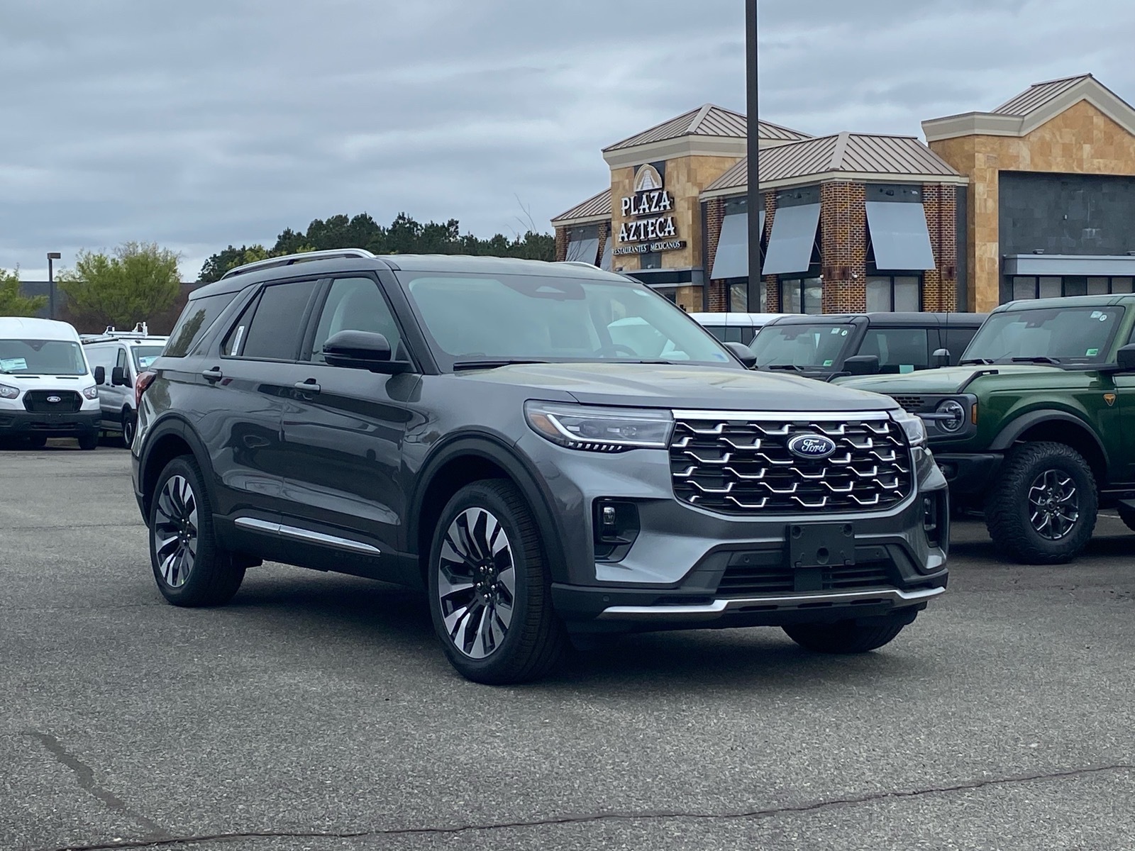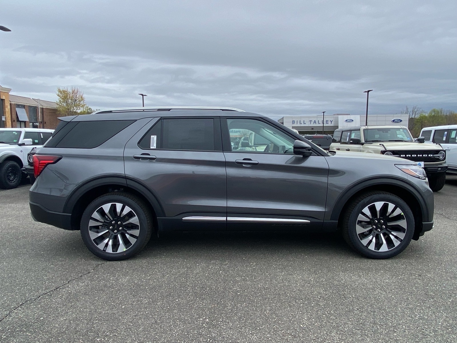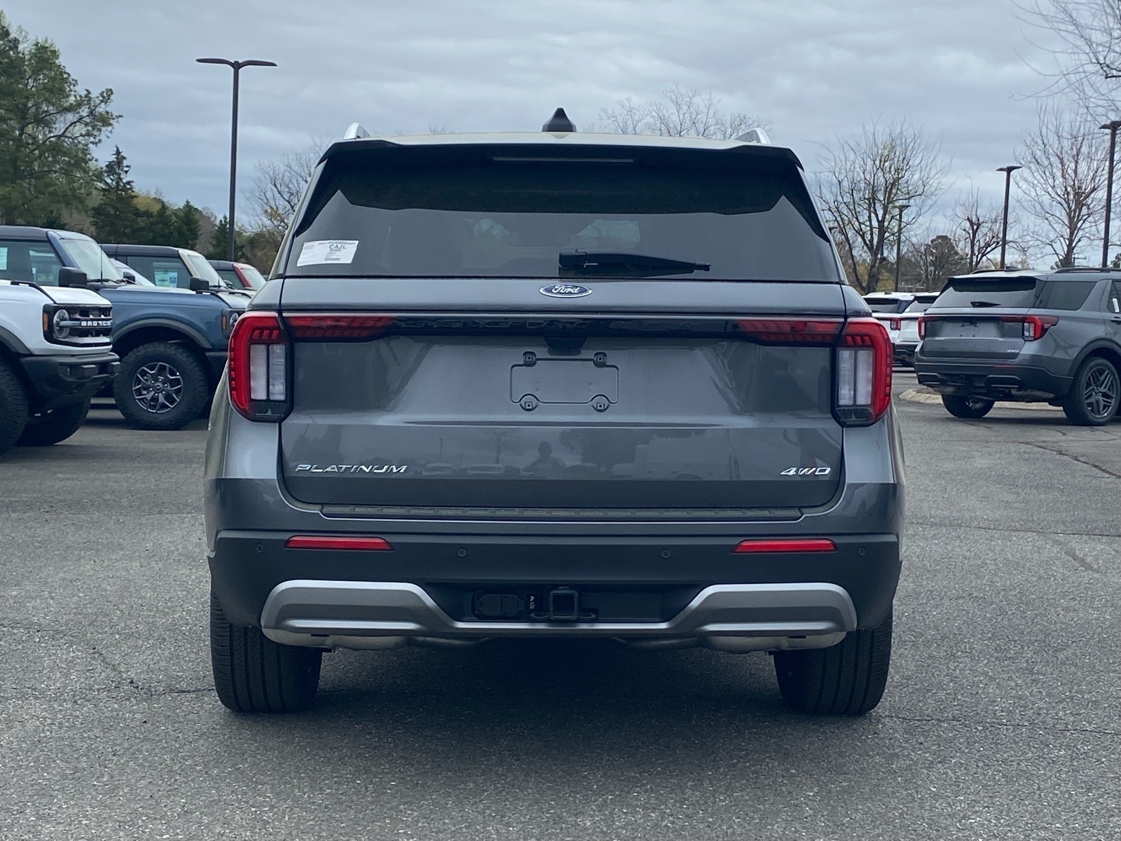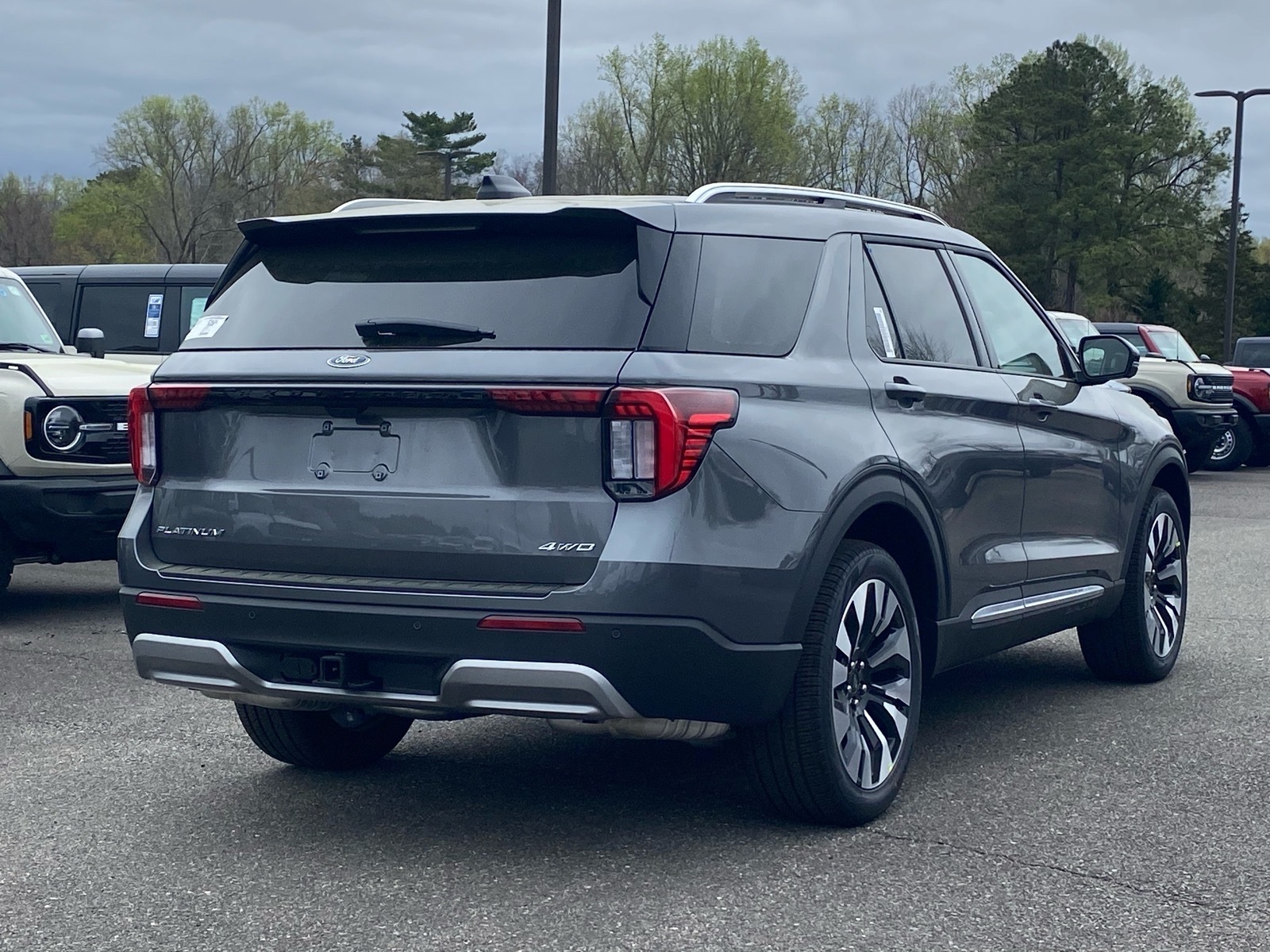 20/27 City/Highway MPG My 2026 Ford Explorer Platinum 4WD 10-Speed Automatic 2.3L EcoBoost I-4 4WD. 4WD, 14 Speakers, 3rd row seats: bench, 4-Wheel Disc Brakes, ABS brakes, ActiveX Trimmed Captains Chairs, Air Conditioning, Alloy wheels, AM/FM radio: SiriusXM with 360L, Apple CarPlay/Android Auto, Auto High-beam Headlights, Auto-dimming door mirrors, Auto-dimming Rear-View mirror, Automatic temperature control, Brake assist, Bumpers: body-color, Compass, Delay-off headlights, Driver door bin, Driver vanity mirror, Dual front impact airbags, Dual front side impact airbags, Electronic Stability Control, Emergency communication system: 911 Assist, Exterior Parking Camera Rear, Four wheel independent suspension, Front anti-roll bar, Front Bucket Seats, Front Center Armrest, Front dual zone A/C, Front fog lights, Front reading lights, Fully automatic headlights, Garage door transmitter, Heated door mirrors, Heated front seats, Heated rear seats, Heated steering wheel, Illuminated entry, Knee airbag, Leather steering wheel, Low tire pressure warning, Memory seat, Navigation System, Occupant sensing airbag, Outside temperature display, Overhead airbag, Overhead console, Panic alarm, Passenger door bin, Passenger vanity mirror, Power door mirrors, Power driver seat, Power Liftgate, Power passenger seat, Power steering, Power windows, Radio data system, Radio: B&O Sound System by Bang & Olufsen with HD, Rain sensing wipers, Rear air conditioning, Rear anti-roll bar, Rear reading lights, Rear window defroster, Rear window wiper, Remote keyless entry, Security system, Speed control, Speed-sensing steering, Speed-Sensitive Wipers, Split folding rear seat, Spoiler, Steering wheel mounted audio controls, Tachometer, Telescoping steering wheel, Tilt steering wheel, Traction control, Trip computer, Turn signal indicator mirrors, Variably intermittent wipers, Ventilated front seats, and Wheels: 20Luster Nickel-Painted Aluminum. Price includes: $3500 - Retail Customer Cash. Exp. 04/30/2026