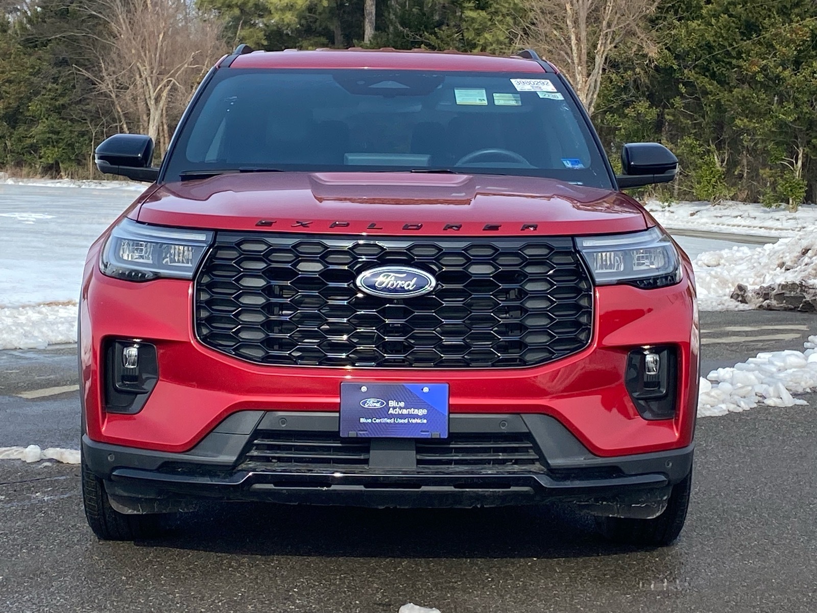 Certified. Red Metallic 2025 Ford Explorer ST-Line 4WD 10-Speed Automatic 2.3L EcoBoost I-4 One Owner, Back up Camera, Navigation, Push button start, Explorer ST-Line, 4D Sport Utility, 2.3L EcoBoost I-4, 10-Speed Automatic, 4WD, Red Metallic, Onyx Cloth, 10 Speakers, 2nd Row Captains Chairs w/E-Z Entry & Armrest, 3.58 Non-Limited Slip Rear Axle, 3rd row seats: bench, 4-Wheel Disc Brakes, ABS brakes, Air Conditioning, Alloy wheels, AM/FM radio: SiriusXM with 360L, Apple CarPlay/Android Auto, Auto High-beam Headlights, Automatic temperature control, Brake assist, Bumpers: body-color, Delay-off headlights, Driver door bin, Driver vanity mirror, Dual front impact airbags, Dual front side impact airbags, Electronic Stability Control, Emergency communication system: 911 Assist, Equipment Group 300A Standard Package, Exterior Parking Camera Rear, Four wheel independent suspension, Front anti-roll bar, Front Bucket Seats, Front Center Armrest, Front dual zone A/C, Front fog lights, Front reading lights, Fully automatic headlights, Garage door transmitter, Heated door mirrors, Heated front seats, Heated steering wheel, Heated Unique Cloth Captains Chairs, Illuminated entry, Internet access capable: FordPass Connect 5G, Knee airbag, Leather steering wheel, Low tire pressure warning, Navigation System, Occupant sensing airbag, Outside temperature display, Overhead airbag, Overhead console, Panic alarm, Passenger vanity mirror, Power door mirrors, Power driver seat, Power Liftgate, Power passenger seat, Power steering, Power windows, Radio: B&O Sound System by Bang & Olufsen, Rear air conditioning, Rear anti-roll bar, Rear reading lights, Rear window defroster, Rear window wiper, Remote keyless entry, Security system, Speed control, Speed-sensing steering, Speed-Sensitive Wipers, Split folding rear seat, Spoiler, Steering wheel mounted audio controls, Telescoping steering wheel, Tilt steering wheel, Traction control, Variably intermittent wipers, Wheels: 20Ebony-Painted Machined Aluminum. 20/27 City/Highway MPG Certification Program Details: Ford Blue Advantage: Blue Certified * 139 Point Inspection * Transferable Warranty * Vehicle History * Warranty Deductible: $100 * Roadside Assistance * Limited Warranty: 3 Month/4,000 Mile (whichever comes first) after new car warranty expires or from certified purchase date * and 11,000 FordPass Rewards Points to use toward first maintenance visit