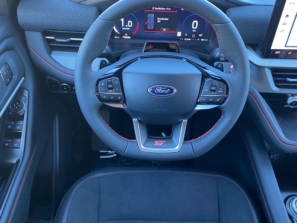 Priced below KBB Fair Purchase Price! Red Metallic 2026 Ford Explorer ST 4WD 10-Speed Automatic 3.0L EcoBoost V6 4WD. Equipment Group 400A Standard Package (Wheels: 21Magnetite-Painted Aluminum), 4WD, 10 Speakers, 3rd row seats: bench, 4-Wheel Disc Brakes, ABS brakes, Air Conditioning, Alloy wheels, AM/FM radio: SiriusXM with 360L, Apple CarPlay/Android Auto, Auto High-beam Headlights, Auto-dimming door mirrors, Auto-dimming Rear-View mirror, Automatic temperature control, Brake assist, Bumpers: body-color, Compass, Delay-off headlights, Driver door bin, Driver vanity mirror, Dual front impact airbags, Dual front side impact airbags, Electronic Stability Control, Emergency communication system: 911 Assist, Exterior Parking Camera Rear, Four wheel independent suspension, Front anti-roll bar, Front Bucket Seats, Front Center Armrest, Front dual zone A/C, Front fog lights, Front License Plate Bracket, Front reading lights, Fully automatic headlights, Garage door transmitter, Heated door mirrors, Heated front seats, Heated rear seats, Heated steering wheel, Illuminated entry, Knee airbag, Leather steering wheel, Low tire pressure warning, Memory seat, Navigation System, Occupant sensing airbag, Outside temperature display, Overhead airbag, Overhead console, Panic alarm, Passenger door bin, Passenger vanity mirror, Power door mirrors, Power driver seat, Power Liftgate, Power passenger seat, Power steering, Power windows, Radio: B&O Sound System by Bang & Olufsen, Rain sensing wipers, Rear air conditioning, Rear anti-roll bar, Rear reading lights, Rear window defroster, Rear window wiper, Remote keyless entry, Security system, Speed control, Speed-sensing steering, Speed-Sensitive Wipers, Split folding rear seat, Spoiler, Sport steering wheel, Steering wheel mounted audio controls, Tachometer, Telescoping steering wheel, Tilt steering wheel, Traction control, Trip computer, Turn signal indicator mirrors, Variably intermittent wipers, and Ventilated front seats. Price includes: $2500 - Retail Customer Cash. Exp. 03/31/2026