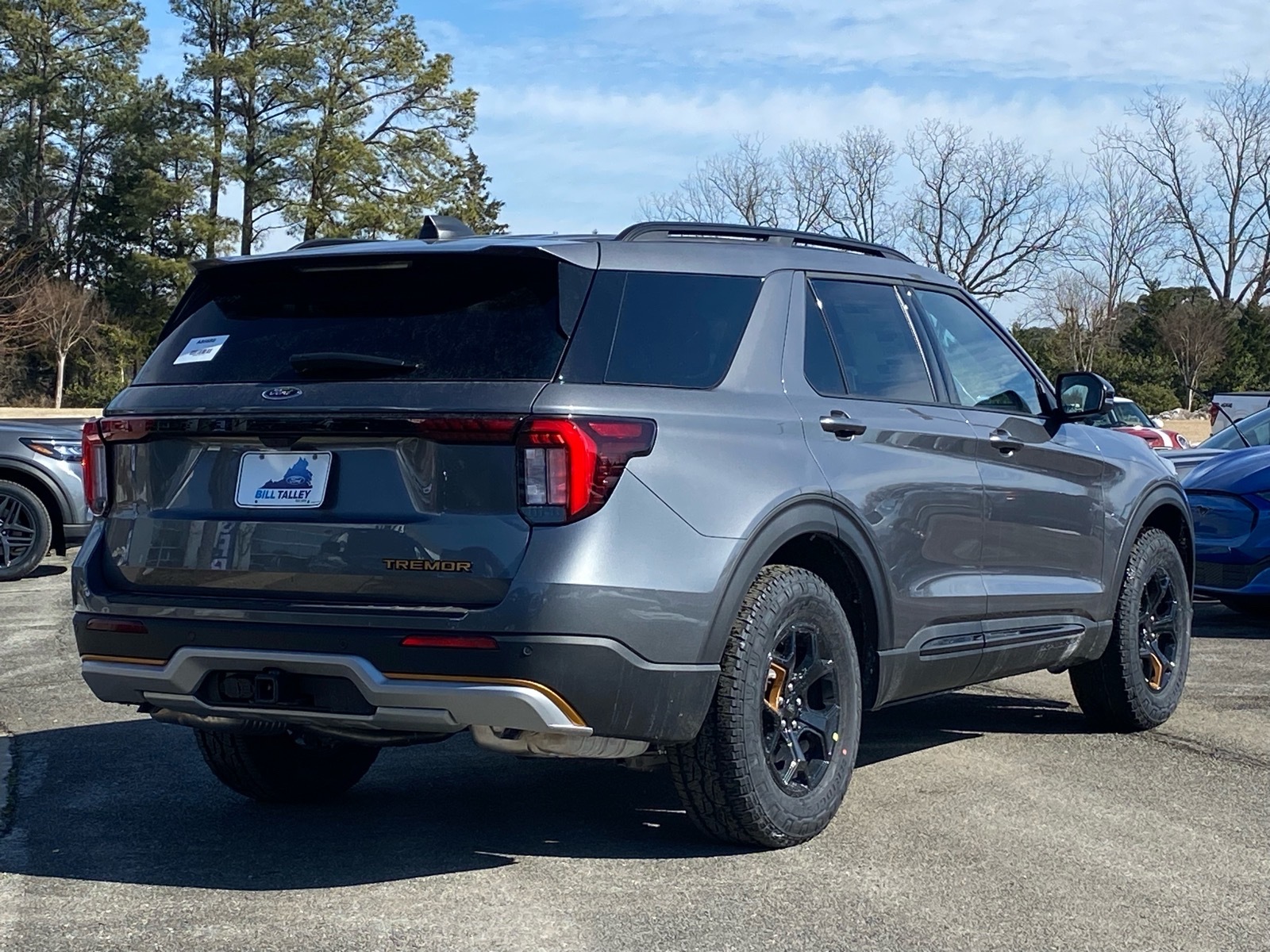 Recent Arrival! Gray 2026 Ford Explorer Tremor 4WD 10-Speed Automatic 3.0L EcoBoost V6 4WD. Equipment Group 800A Standard Package (Heated/Ventilated Miko Suede Captains Chairs, Radio: B&O Sound System by Bang and Olufsen, and Wheels: 18High Gloss Black-Painted Aluminum), Tremor Ultimate Package (3rd Row PowerFold Seats, Ambient Lighting, Memory Drivers Seat, Multicontour Seats with Front Active Motion, Panoramic Fixed Glass Roof with Power Shade, Power-Folding with Autofold Side Mirrors, Radio: B&O Sound System by Bang & Olufsen, and Rain-Sensing Wipers (front Only)), 4WD, 10 Speakers, 3rd row seats: bench, 4-Wheel Disc Brakes, ABS brakes, Air Conditioning, Alloy wheels, AM/FM radio: SiriusXM with 360L, Apple CarPlay/Android Auto, Auto High-beam Headlights, Automatic temperature control, BlueCruise (equipment 1-Year 90-Day Plan), Brake assist, Bumpers: body-color, Compass, Delay-off headlights, Driver door bin, Driver vanity mirror, Dual front impact airbags, Dual front side impact airbags, Electronic Stability Control, Emergency communication system: 911 Assist, Exterior Parking Camera Rear, Four wheel independent suspension, Front anti-roll bar, Front Bucket Seats, Front Center Armrest, Front dual zone A/C, Front fog lights, Front License Plate Bracket, Front reading lights, Fully automatic headlights, Garage door transmitter, Heated door mirrors, Heated front seats, Heated rear seats, Heated steering wheel, Illuminated entry, Knee airbag, Leather steering wheel, Low tire pressure warning, Navigation System, Occupant sensing airbag, Outside temperature display, Overhead airbag, Overhead console, Panic alarm, Passenger door bin, Passenger vanity mirror, Power door mirrors, Power driver seat, Power Liftgate, Power passenger seat, Power steering, Power windows, Rear air conditioning, Rear anti-roll bar, Rear reading lights, Rear window defroster, Rear window wiper, Remote keyless entry, SecuriCode Keyless Entry Keypad, Security system, Speed control, Speed-sensing steering, Speed-Sensitive Wipers, Split folding rear seat, Spoiler, Sport steering wheel, Steering wheel mounted audio controls, Tachometer, Telescoping steering wheel, Tilt steering wheel, Traction control, Trip computer, Variably intermittent wipers, and Ventilated front seats. Price includes: $2500 - Retail Customer Cash. Exp. 03/31/2026 $2500 - Retail Customer Cash. Exp. 03/31/2026