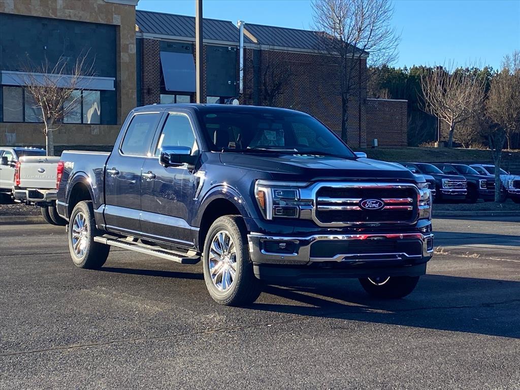 Recent Arrival! Blue 2025 Ford F-150 Lariat 4WD 10-Speed Automatic 5.0L V8 4WD. Equipment Group 502A High (2nd Row Heated Seats, Ambient Lighting - Ice Blue Color Only, Heads-Up Display, Illuminated Driver & Passenger Visors, Power-Sliding Rear Window, Radio: B&O Unleashed Sound System by Bang & Olufsen, and Wheels: 20Chrome-Like PVD), Mobile Office Package (Console Worksurface, Partitioned Lockable Rear Storage, and Wireless Charging), 4WD, 4-Wheel Disc Brakes, 8 Speakers, ABS brakes, ActiveX Trimmed Bucket Seats, Adjustable pedals, Air Conditioning, Alloy wheels, AM/FM radio: SiriusXM with 360L, Auto High-beam Headlights, Auto-dimming door mirrors, Auto-dimming Rear-View mirror, Automatic temperature control, Brake assist, Bumpers: chrome, Chrome wheels, Compass, Delay-off headlights, Driver door bin, Driver vanity mirror, Dual front impact airbags, Dual front side impact airbags, Electronic Stability Control, Emergency communication system: SYNC 4 911 Assist, Front anti-roll bar, Front Bucket Seats, Front Center Armrest, Front dual zone A/C, Front fog lights, Front License Plate Bracket, Front reading lights, Front wheel independent suspension, Fully automatic headlights, Garage door transmitter, Heated door mirrors, Heated front seats, Heated steering wheel, Illuminated entry, Internet access capable: FordPass Connect 5G, Low tire pressure warning, Memory seat, Navigation system: Connected Navigation, Occupant sensing airbag, Outside temperature display, Overhead airbag, Overhead console, Panic alarm, Passenger door bin, Passenger vanity mirror, Pedal memory, Power door mirrors, Power driver seat, Power passenger seat, Power steering, Power windows, Radio data system, Radio: B&O Sound System by Bang & Olufsen, Rain sensing wipers, Rear reading lights, Rear seat center armrest, Rear step bumper, Rear window defroster, Remote keyless entry, Retractable Rear Center Step, Security system, Speed control, Split folding rear seat, Steering wheel mounted audio controls, SYNC 4 w/Enhanced Voice Recognition, Tachometer, Telescoping steering wheel, Tilt steering wheel, Traction control, Trip computer, Turn signal indicator mirrors, Variably intermittent wipers, Ventilated front seats, Voltmeter, and Wheels: 18Chrome-Like PVD. Price includes: $1000 - Final Days Mega Bonus Cash. Exp. 01/02/2026 $2000 - Retail Customer Cash. Exp. 01/05/2026