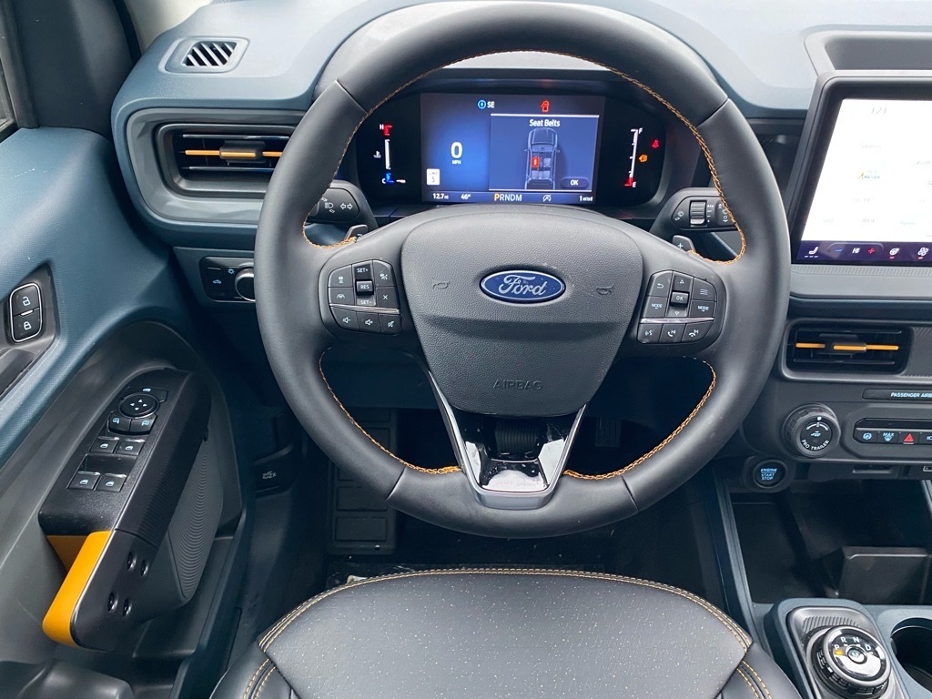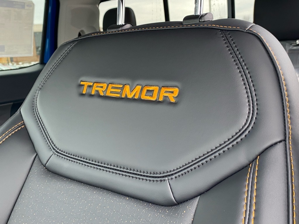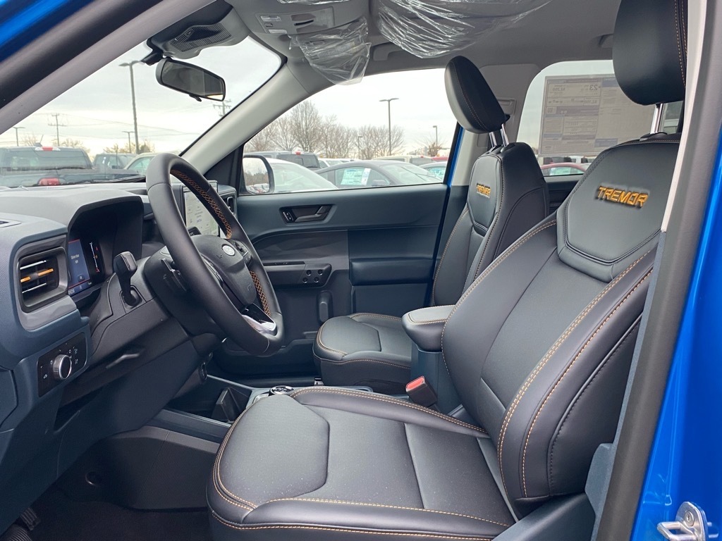 21/27 City/Highway MPG Blue 2026 Ford Maverick Tremor AWD 8-Speed Automatic EcoBoost 2.0L I4 GTDi DOHC Turbocharged VCT Equipment Group 602A (3.63 Axle Ratio, ActiveX Trimmed Heated Front Bucket Seats, Radio: AM/FM Stereo with 8 Speakers, SiriusXM with 360L, SYNC 4 with Enhanced Voice Recognition, and Wheels: 17Machined-Face Tarnished Dark Painted), Ford Connectivity Package (1-Year Included), Internet access capable: 5G Modem - Ford Connectivity Package, 4-Wheel Disc Brakes, 8 Speakers, ABS brakes, Air Conditioning, Alloy wheels, AM/FM radio: SiriusXM with 360L, Apple CarPlay/Android Auto, Auto High-beam Headlights, Automatic temperature control, Brake assist, Bumpers: body-color, Compass, Delay-off headlights, Driver door bin, Driver vanity mirror, Dual front impact airbags, Dual front side impact airbags, Electronic Stability Control, Emergency communication system: SYNC 4 911 Assist, Exterior Parking Camera Rear, Four wheel independent suspension, Front anti-roll bar, Front Bucket Seats, Front Center Armrest, Front dual zone A/C, Front reading lights, Fully automatic headlights, Heated door mirrors, Heated front seats, Heated steering wheel, Illuminated entry, Knee airbag, Low tire pressure warning, Navigation system: Connected Navigation, Occupant sensing airbag, Outside temperature display, Overhead airbag, Overhead console, Panic alarm, Passenger door bin, Passenger vanity mirror, Power door mirrors, Power driver seat, Power Moonroof, Power steering, Power windows, Power-Sliding Rear Window, Radio data system, Rear anti-roll bar, Rear seat center armrest, Rear step bumper, Remote keyless entry, Security system, Speed control, Speed-sensing steering, Steering wheel mounted audio controls, Tachometer, Telescoping steering wheel, Tilt steering wheel, Traction control, and Trip computer.