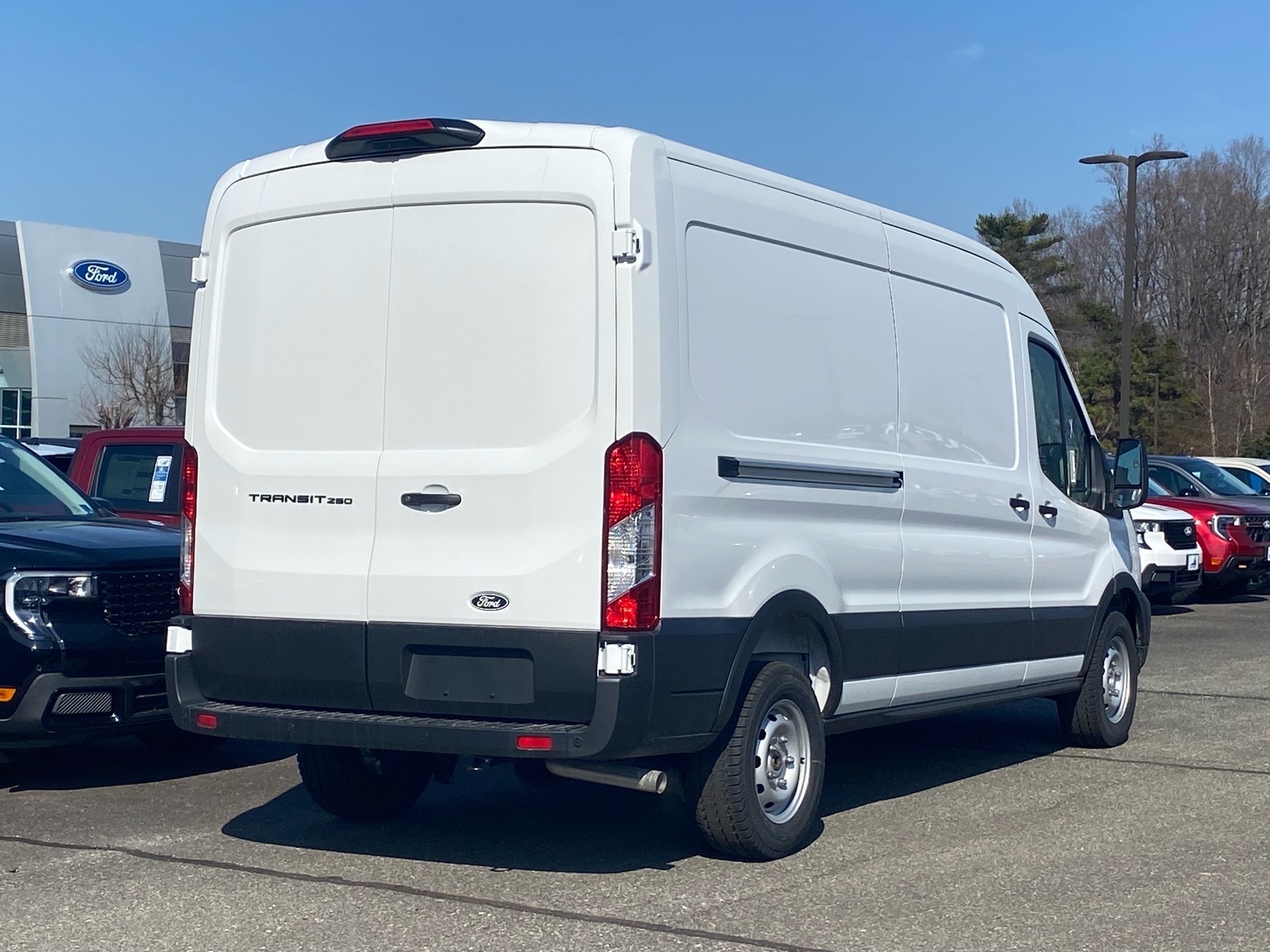 Priced below KBB Fair Purchase Price! Oxford White 2026 Ford Transit-250 RWD 10-Speed Automatic with Overdrive 3.5L V6 Flex Fuel Ford Connectivity Package (1-Year Included), Order Code 101A (3.73 Axle Ratio, AM/FM Stereo, Dark Palazzo Gray Vinyl Bucket Seats, SYNC 4, Vinyl Front Bucket Seats, and Wheels: 16Silver Steel with Black Hubcap), 4 Speakers, 4-Wheel Disc Brakes, ABS brakes, Air Conditioning, AM/FM radio, Apple CarPlay/Android Auto, Auto High-beam Headlights, Back Up Alarm, Brake assist, Delay-off headlights, Driver door bin, Drivers Seat Mounted Armrest, Dual front impact airbags, Dual front side impact airbags, Electronic Stability Control, Emergency communication system: 911 Assist, Exterior Parking Camera Rear, Front anti-roll bar, Front Bucket Seats, Front License Plate Bracket, Front reading lights, Front wheel independent suspension, Full Rear Compartment Lighting, Fully automatic headlights, Heavy-Duty Load Floor & Scuff Plate Protection Pkg, Heavy-Duty Scuff Plate Kit, Illuminated entry, Low tire pressure warning, Navigation system: Connected Navigation, Occupant sensing airbag, Overhead airbag, Panic alarm, Passenger cancellable airbag, Passenger door bin, Power door mirrors, Power steering, Power windows, Rain sensing wipers, Remote keyless entry, Speed control, Steering wheel mounted audio controls, Tachometer, Telescoping steering wheel, Tilt steering wheel, Traction control, and Variably intermittent wipers. Price includes: $3000 - Retail Customer Cash. Exp. 04/30/2026