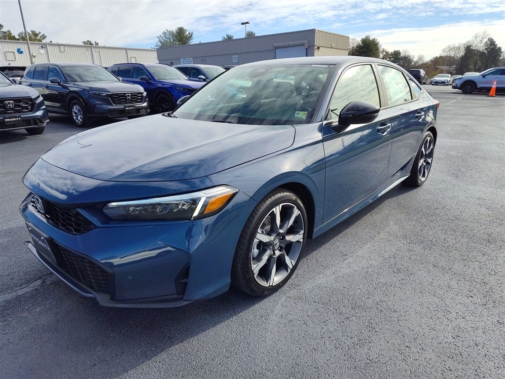 Elevate your driving experience with the 2026 Honda Civic Hybrid Sport Touring. This exceptional vehicle combines cutting-edge hybrid technology, sophisticated design, and an impressive array of premium features to deliver unparalleled performance and comfort. Boasting a striking blue exterior, the 2026 Civic Hybrid Sport Touring is a true head-turner. Its sleek and aerodynamic silhouette not only enhances its visual appeal but also contributes to its exceptional fuel efficiency. Under the hood, the 2.0L 16V DOHC engine, paired with an eCVT transmission and FWD, delivers a remarkable 50 mpg in the city and 47 mpg on the highway, making it an eco-friendly and cost-effective choice for your daily commute. � Navigation system: Google Maps � 12 Speakers � Bose Premium Sound System � Automatic temperature control � Power driver seat � Four wheel independent suspension � Blind Spot Information (BSI) System warning � Adaptive Cruise Control: Adaptive Cruise Control (ACC) with Low-Speed Follow � Leather-Trimmed Seat Trim � Heated Front Bucket Seats � Wheels: 18Alloy with Matte Shark Gray Inserts Step inside the 2026 Civic Hybrid Sport Touring and experience the epitome of modern luxury. The cabin is meticulously crafted with premium materials, including a leather-wrapped steering wheel and shift knob, as well as heated front bucket seats for unparalleled comfort. The advanced technology features, such as the intuitive navigation system, Bose premium sound system, and Apple CarPlay/Android Auto integration, ensure you stay connected and entertained on every journey. Safety is of the utmost importance, and the 2026 Civic Hybrid Sport Touring delivers. Equipped with a comprehensive suite of advanced safety technologies, including the Blind Spot Information (BSI) System, Adaptive Cruise Control, and a suite of airbags, this vehicle prioritizes your well-being and the well-being of your passengers. Elevate your driving experience and make a statement with the 2026 Honda Civic Hybrid Sport Touring. With its exceptional performance, uncompromising style, and cutting-edge features, this vehicle is the perfect blend of efficiency, luxury, and safety. Visit our showroom today to take it for a test drive and discover why the 2026 Civic Hybrid Sport Touring should be your next automotive companion. *Prices do not include tax, registration fees, or dealer processing fee of $899. See dealer for limited warranty details. Images shown are for illustration purposes only. May not