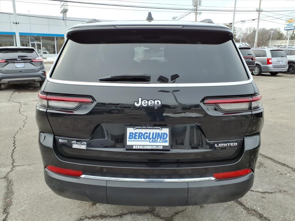 Vehicle DetailsDiscover exceptional value with this pre-owned 2022 Jeep Grand Cherokee L Limited 4WD, now available in Roanoke, VA. Equipped with a responsive V6 3.6L gasoline engine and rugged four-wheel drive, this Jeep Grand Cherokee L delivers confident performance on city streets and weekend adventures alike. The Limited trim blends comfort and technology, offering Apple CarPlay and Android Auto for seamless smartphone integration, plus Hands-Free Bluetooth for effortless calling and audio streaming. Safety and convenience features include Adaptive Cruise Control to make highway driving more relaxed and a Heated Steering Wheel for added comfort on chilly mornings. The spacious three-row cabin provides flexible seating and cargo options, ideal for families or those who need extra room without sacrificing style. Premium interior materials, intuitive controls, and a smooth ride make every drive enjoyable. This 2022 Jeep Grand Cherokee L Limited in Roanoke, VA, is priced to move - were offering the best price on this model in the area. Whether youre searching for a reliable daily driver or a capable SUV for weekend getaways, this Jeep Grand Cherokee L delivers value, capability, and modern tech. Contact us to schedule a test drive today and take advantage of this unbeatable offer in Roanoke.EquipmentThe leather seats in it are a must for buyers looking for comfort, durability, and style. This Jeep Grand Cherokee L offers Apple CarPlay for seamless connectivity. This models Forward Collision Warning system alerts the driver to potential front-end collisions, enhancing safety. Keep your hands warm all winter with a heated steering wheel in this mid-size suv . It has auto-adjust speed for safe following. Our dealership has already run the CARFAX report and it is clean. A clean CARFAX is a great asset for resale value in the future. It features a hands-free Bluetooth phone system. This mid-size suv offers Android Auto for seamless smartphone integration. Good News! This certified CARFAX 1-owner vehicle has only had one owner before you. See whats behind you with the back up camera on it. Start it from inside with remote start. Enjoy the convenience of the power liftgate on this 2022 Jeep Grand Cherokee L .PackagesQuick Order Package 22E. Trailer Tow Group (b): Rear Load Leveling Suspension; Full Size Spare Tire; Heavy Duty Engine Cooling; 18Full-Size Steel Spare Wheel; Automatic Headlamp Leveling System;