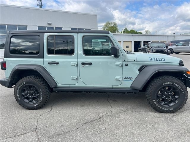 Vehicle Details 2023 Jeep Wrangler 4xe Willys - Low-Mileage Plug-In Hybrid SUV in Roanoke, VA Looking for a capable, efficient off-road vehicle This 2023 Jeep Wrangler 4xe Willys combines rugged capability with modern hybrid technology. With only 23,380 miles, this low-mileage Jeep Wrangler 4xe features a 2.0L 4-cylinder plug-in hybrid electric (PHEV) powertrain and 4WD, delivering strong torque for trails and excellent fuel efficiency for daily driving. Well-equipped and ready for adventure, this Jeep Wrangler 4xe is a CARFAX 1-Owner vehicle, providing added confidence in its history. The Off-Road Package enhances trail performance, while features like Automatic Climate Control and a Back-Up Camera improve everyday comfort and convenience. Integration with Apple CarPlay keeps navigation and media seamlessly connected on and off the road. The Willys trim adds distinctive styling cues and capability enhancements that Jeep enthusiasts appreciate, making this model a great choice for both weekend explorers and commuters who want the flexibility of electric driving with the confidence of a legendary 4x4 platform. Located in Roanoke, VA, this 2023 Jeep Wrangler 4xe Willys offers low mileage, solid service history, and an attractive mix of technology and off-road performance. Contact us to schedule a test drive and experience the hybrid Wranglers blend of power, efficiency, and iconic Jeep capability. Equipment This unit comes equipped with Android Auto for seamless smartphone integration on the road. Bluetooth technology is built into this 2023 Jeep Wrangler 4xe , keeping your hands on the steering wheel and your focus on the road. Good News! This certified CARFAX 1-owner vehicle has only had one owner before you. Protect the vehicle from unwanted accidents with a cutting edge backup camera system. Apple CarPlay: Seamless smartphone integration for this 1/2 ton suv - stay connected and entertained on the go! This vehicle offers Automatic Climate Control for personalized comfort. This vehicle is equipped with the latest generation of XM/Sirius Radio. An off-road package is installed on this Jeep Wrangler 4xe so you are ready for your four-wheeling best. Our dealership has already run the CARFAX report and it is clean. A clean CARFAX is a great asset for resale value in the future. When you encounter slick or muddy roads, you can engage the four wheel drive on this 2023 Jeep Wrangler 4xe and drive with confidence.See whats behind you with the back up c