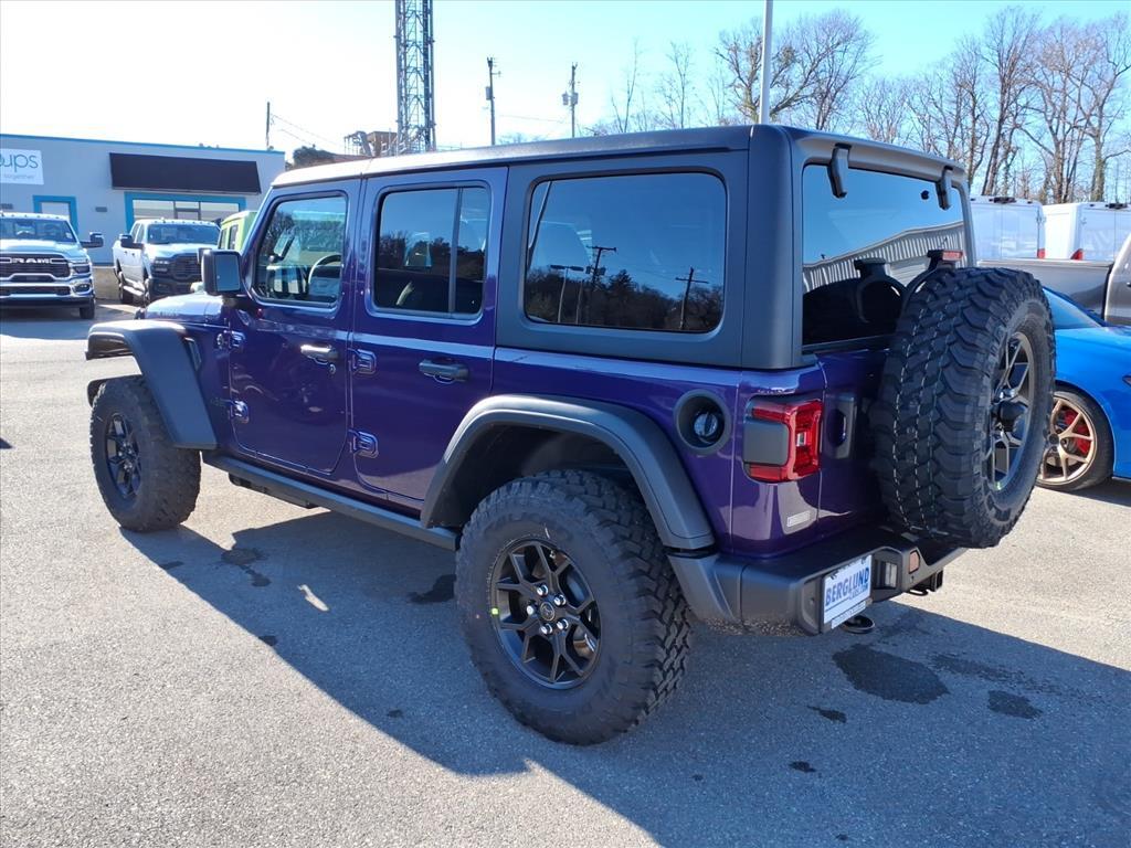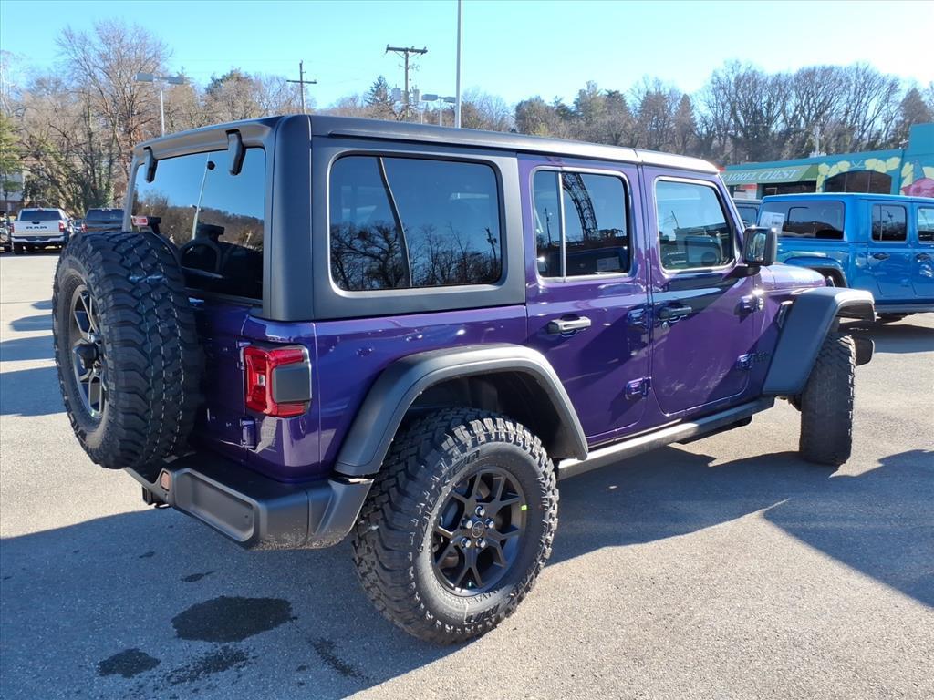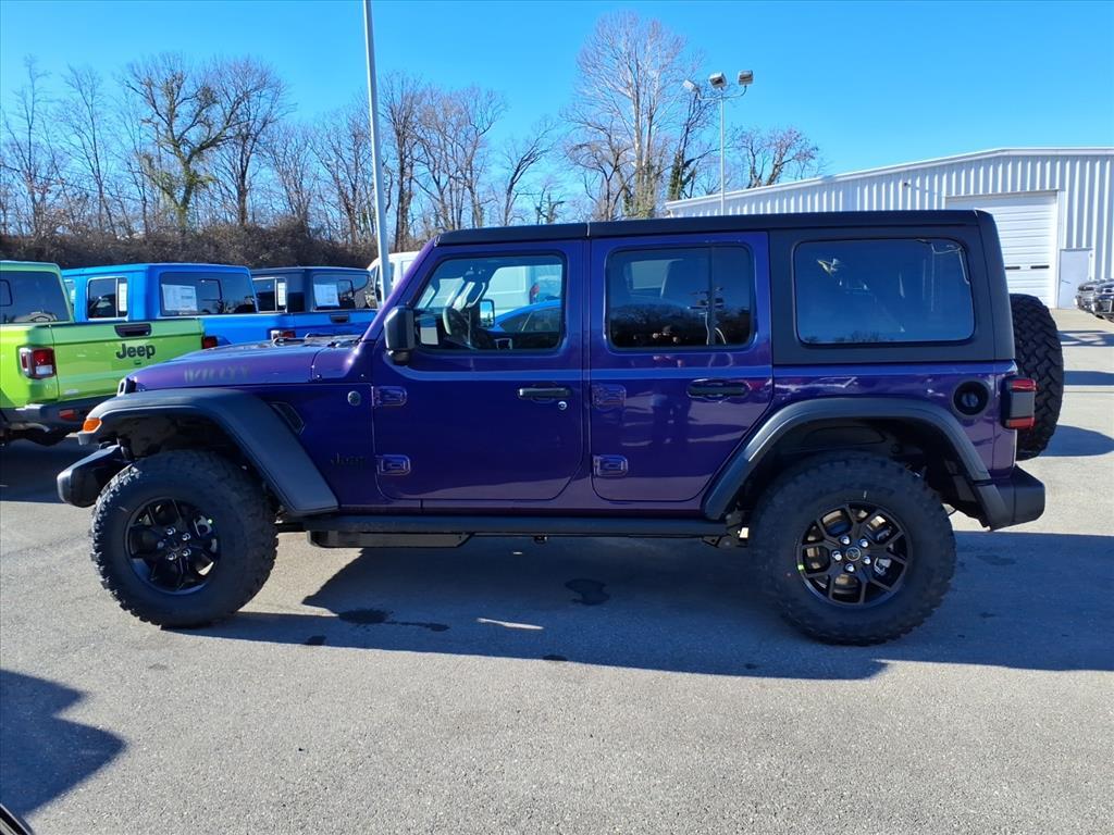 Vehicle Details 2026 Jeep Wrangler Willys 4WD - located in Roanoke, VA - combines rugged capability with modern tech and an efficient 2.0L 4-cylinder gasoline engine. Built for both weekend trails and daily commuting, this Jeep Wrangler Willys pairs proven off-road credentials with comfort-focused features like Adaptive Cruise Control and Forward Collision Warning to enhance safety on every drive. Navigate with confidence using the Back-Up Camera and stay connected on the go with Android Auto integration for seamless access to navigation, music, and messaging. Remote Start adds convenience for quick climate control before you hit the road. This Jeep Wranglers 4WD system and durable Willys suspension give you the traction and ground clearance needed for challenging terrain, while the turbocharged 2.0L four-cylinder balances responsive power with improved fuel economy for longer adventures. Inside, driver-assist technologies and intuitive connectivity create a modern cockpit that supports both active exploration and everyday practicality. Located in Roanoke, VA, this 2026 Jeep Wrangler Willys is competitively priced and offers the best price available, making it an exceptional value for buyers seeking capability, safety, and technology in one iconic package. Contact us to schedule a test drive or request more details about features, financing options, and availability in Roanoke. Equipment This mid-size suv has auto-adjust speed for safe following. The vehicle offers Android Auto for seamless smartphone integration. An off-road package is installed on the Jeep Wrangler so you are ready for your four-wheeling best. This vehicles Forward Collision Warning feature alerts drivers to potential front-end collisions. This Jeep Wrangler features a hands-free Bluetooth phone system. Never get into a cold vehicle again with the remote start feature on it. This mid-size suv keeps you comfortable with Auto Climate. Apple CarPlay: Seamless smartphone integration for this Jeep Wrangler - stay connected and entertained on the go! This vehicle is pure luxury with a heated steering wheel. Protect it from unwanted accidents with a cutting edge backup camera system. The rear parking assist technology on this Jeep Wrangler will put you at ease when reversing. The system alerts you as you get closer to an obstruction. The Jeep Wrangler has a 4 Cyl, 2.0L high output engine. Packages Convenience Group: Emergency/Assistance Call; 2-Door Passive Entry. Front Door Locks;