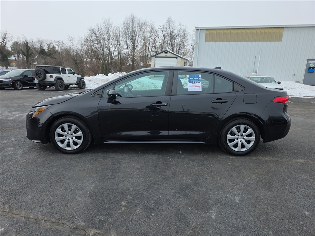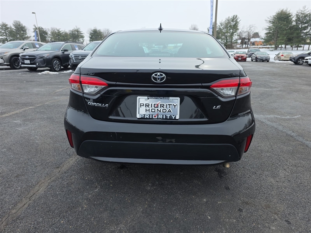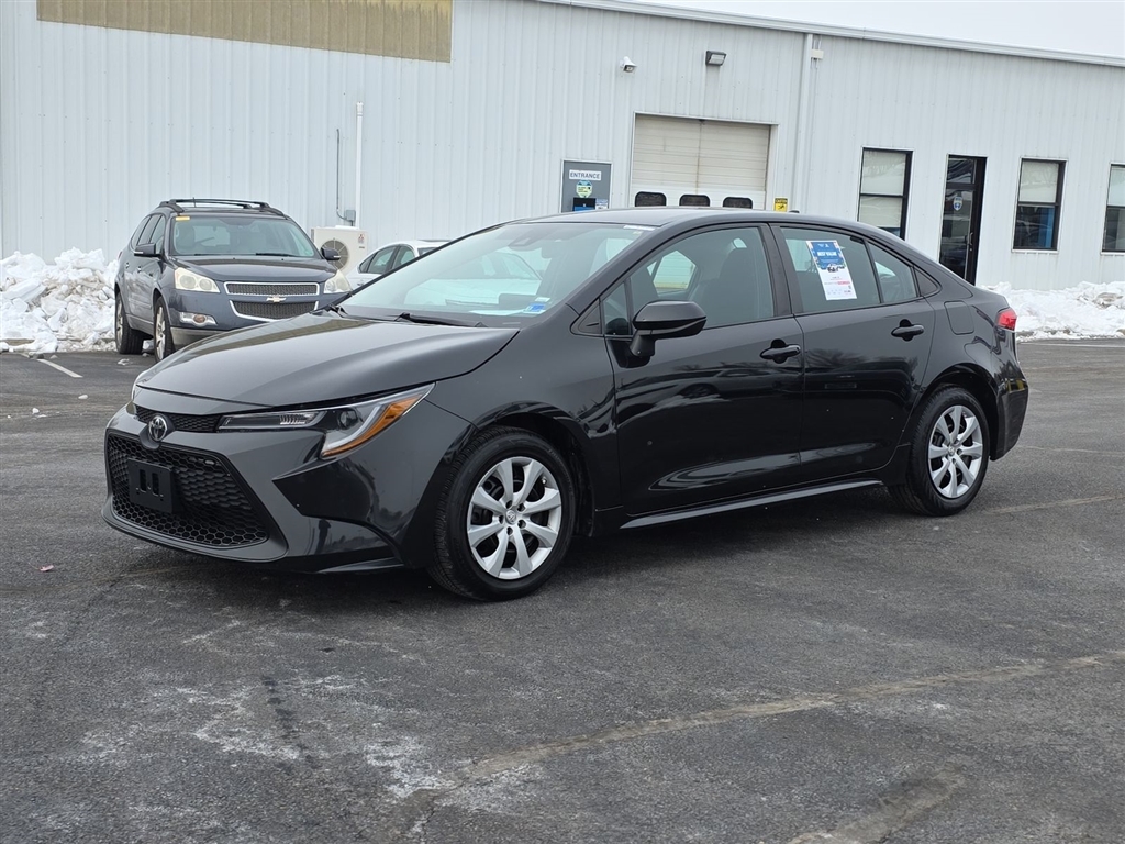 Lifetime Powertrain Warranty with every New and Used Vehicle Purchase.See Dealer for limited warranty details. No European models. 2020 Model year or newer and less than 70K miles. Included with purchase. Value $4500. This 2021 Toyota Corolla LE is equipped with an impressive array of features that make it an exceptional value in the compact car segment. Take a look at what this vehicle has to offer: � BACKUP CAMERA � BLUETOOTH � APPLE CARPLAY / ANDROID AUTO � Recent Oil Change � Vehicle Detailed � Passed Dealer Inspection The vehicle has been meticulously detailed, ensuring it is in pristine condition and ready for its next owner. Our thorough inspection process gives you the peace of mind that this Corolla is road-ready and reliable. Powered by a 1.8L I4 DOHC 16V engine paired with a CVT transmission, this Corolla delivers an exceptional balance of efficiency and performance. With an EPA-estimated 30 MPG in the city and 38 MPG on the highway, youll enjoy impressive fuel economy for your daily commute or weekend adventures. The interior of this Corolla LE is well-appointed, featuring 6 speakers, automatic temperature control, and a four-wheel independent suspension for a comfortable ride. The Apple CarPlay and Android Auto integration keep you connected and in control, while the backup camera and steering wheel-mounted audio controls add to the convenience. Safety is a top priority, and this Corolla is equipped with a comprehensive suite of advanced safety features, including ABS brakes, dual front and side impact airbags, electronic stability control, and more. You can drive with confidence, knowing you and your passengers are well-protected. With its sleek black exterior, this Corolla LE has a refined and modern appearance that is sure to turn heads. The 16-inch wide vent steel wheels and body-color bumpers add to the vehicles stylish and well-crafted look. This 2021 Toyota Corolla LE represents an exceptional value in the compact car market. With its impressive features, efficient performance, and comprehensive safety technology, its the perfect choice for the discerning buyer. Visit our showroom today to experience this Corolla for yourself and see why it should be your next vehicle.