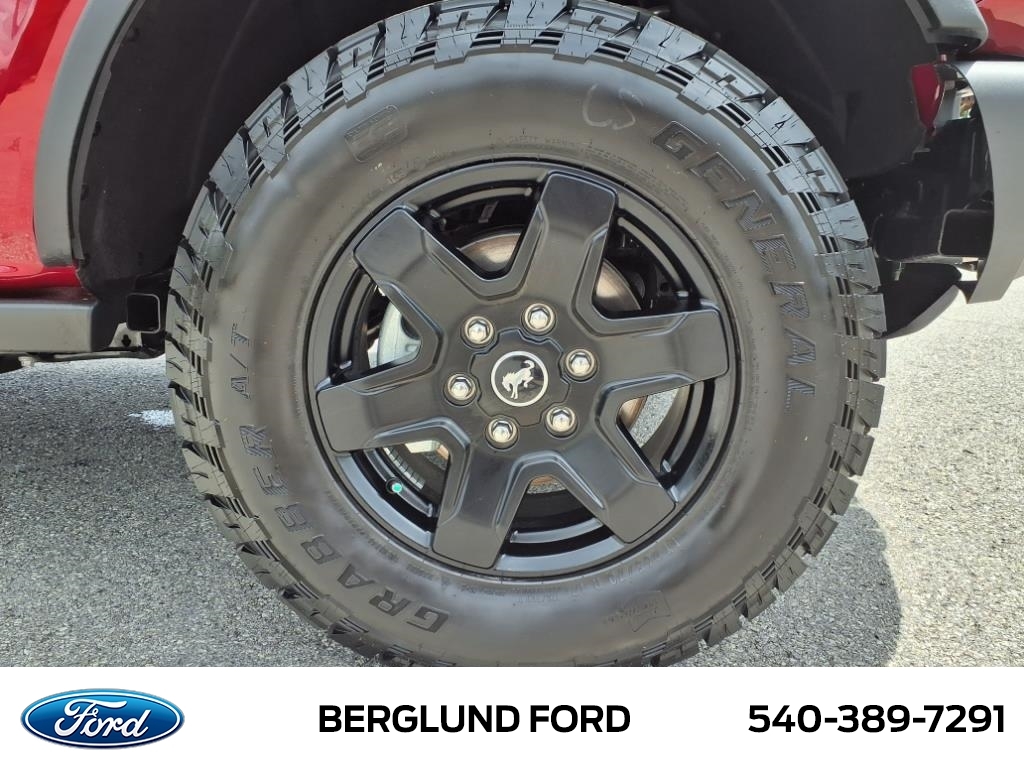 EquipmentAn off-road package is equipped on this 1/2 ton suv. See whats behind you with the back up camera on this 1/2 ton suv. The state of the art park assist system will guide you easily into any spot. This 1/2 ton suvs Cross-Traffic Alert: Safeguarding you from unexpected traffic when reversing. Never get into a cold vehicle again with the remote start feature on this 2025 Ford Bronco . This model offers Android Auto for seamless smartphone integration. The Ford Bronco offers Automatic Climate Control for personalized comfort. Bluetooth technology is built into this model, keeping your hands on the steering wheel and your focus on the road. The installed navigation system will keep you on the right path. Apple CarPlay: Seamless smartphone integration for the Ford Bronco - stay connected and entertained on the go! The vehicle excites both driver and bystanders with a polished red exterior with racy lines.PackagesBlack Appearance Package: LT265/70R17 All-Terrain Tires; Black-Painted Molded-In-color Grille; Black Molded-In-color Fender Flares; Black Molded-In-color Sideview Mirror Caps; 17Black High Gloss Painted Aluminum Wheels; Black Molded-In-color Door Handles. Black Diamond Package: Rock Rails; LT265/70R17 All-Terrain Tires; Washout Capable Rubberized Flooring; 17Black High Gloss Painted Aluminum Wheels; Powder Coated Steel Front and Rear Bumpers; Full Vehicle Steel Bash Plates; Auxiliary Switches; LED Fog Lamps. Equipment Group 222A Mid Package: 2.3L EcoBoost I-4 Engine; AM/FM Stereo. Shadow Black Painted Hard Top. Marine Grade Vinyl Bucket Seats. Ruby Red Met Tinted CC. Front Row Top Panels and Door Storage Bags. Front and Rear Floor Liners Without Carpet Floor Mats. **Equipment listed is based on original vehicle build and subject to change. Please confirm the accuracy of the included equipment by calling the dealer prior to purchase.**