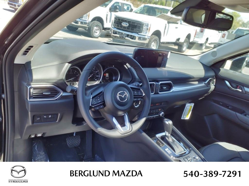 EquipmentIts blind spot monitor enhances safety. See whats behind you with the back up camera on this vehicle. This 2025 Mazda CX-5 offers Automatic Climate Control for personalized comfort. This mid-size suv offers Android Auto for seamless smartphone integration. This unit offers Apple CarPlay for seamless connectivity. The leather seats in this model are a must for buyers looking for comfort, durability, and style. Bluetooth technology is built into the vehicle, keeping your hands on the steering wheel and your focus on the road. This unit stays safely in its lane with Lane Keep Assist. This 2025 Mazda CX-5 has an elegant black exterior finish. Maintaining a stable interior temperature in the vehicle is easy with the climate control system. This model has a 4 Cyl, 2.5L high output engine. Quickly unlock this 2025 Mazda CX-5 with keyless entry. Enjoy the convenience of the power liftgate on it. This 2025 Mazda CX-5 is equipped with all wheel drive.PackagesFront and Rear Splash Guards. All-Weather Floor Mats. Cargo Tray. Wheel Locks. Cargo Net. **Equipment listed is based on original vehicle build and subject to change. Please confirm the accuracy of the included equipment by calling the dealer prior to purchase.**