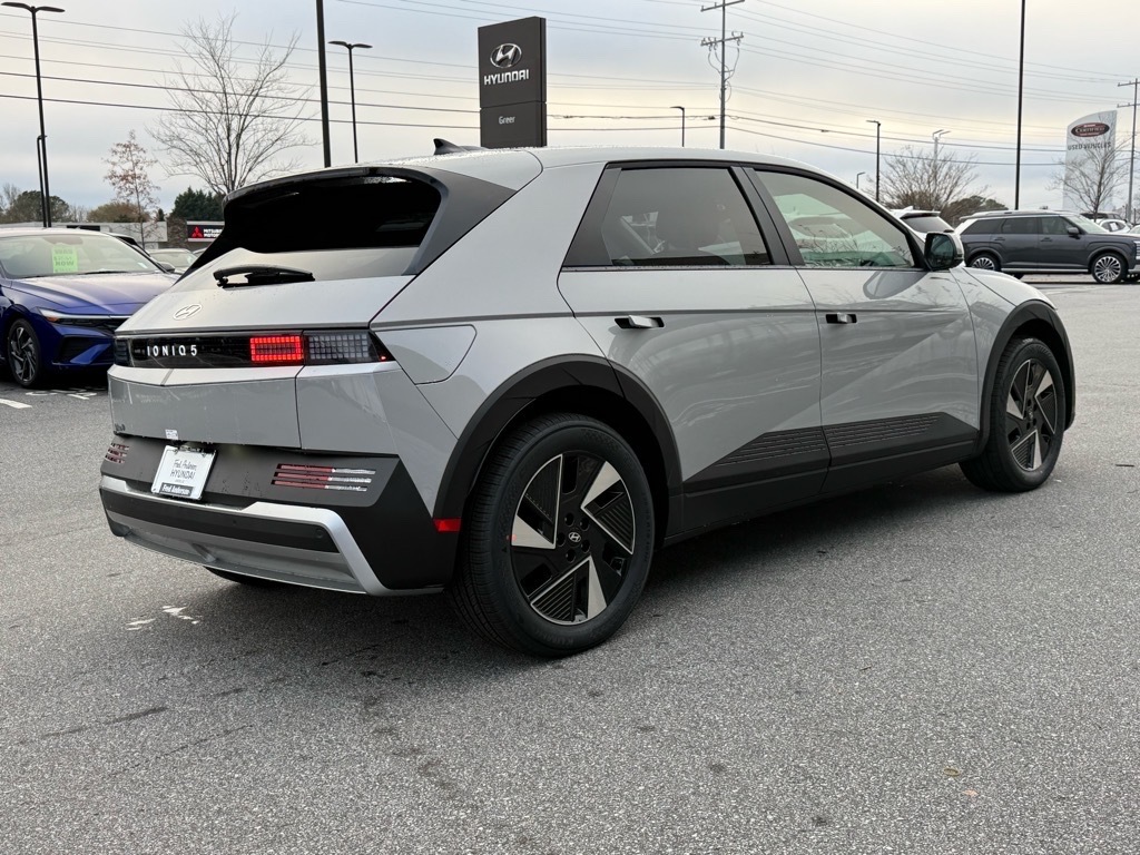 2026 Hyundai IONIQ 5 SE Cyber Gray 4D Sport Utility RWD 1-Speed Automatic Electric Motor 132/98 City/Highway MPG 132/98 City/Highway MPG Thank you for checking out our website at www.HyundaiOfGreer.com where we help you find the best vehicle that meets your needs wrapped in a deal you will not want to walk away from. If you have any questions please call us at 864-800-0851 or visit us in person at Fred Anderson Hyundai of Greer located at 13740 East Wade Hampton Blvd Greer, SC 29651 to learn more! Qualifying New and Used vehicles receive our full Anderson Family Plan at no additional cost to you which includes our: Peace of Mind 3-Day Vehicle Exchange*Lifetime Oil Changes*Service Loaners*Loyalty Discounts after driving your purchase for 50,000 miles. All prices exclude tax, tag, license, title, and registration for your state; and our admin ($499) fees. All vehicle internet pricing is subject to change and requires standard financing. From time to time in the transfer of data on the internet, there are errors. Dealer is not responsible for errors in advertised prices. See dealer for complete details. Option Group 01, 4-Wheel Disc Brakes, 6 Speakers, ABS brakes, Air Conditioning, All Season Fitted Liners, Alloy wheels, AM/FM radio: SiriusXM, Apple CarPlay & Android Auto, Auto High-beam Headlights, Automatic temperature control, Bodyside moldings, Brake assist, Bumpers: body-color, Cargo Net, Carpeted Floor Mats, Delay-off headlights, Driver door bin, Driver vanity mirror, Dual front impact airbags, Dual front side impact airbags, Electronic Stability Control, Emergency communication system: None, Four wheel independent suspension, Front anti-roll bar, Front Bucket Seats, Front Center Armrest w/Storage, Front dual zone A/C, Front reading lights, Fully automatic headlights, harman/kardon� Speakers, Heated door mirrors, Heated Front Bucket Seats, Heated front seats, Illuminated entry, Low tire pressure warning, Navigation System, Occupant sensing airbag, Outside temperature display, Overhead airbag, Overhead console, Panic alarm, Passenger door bin, Passenger vanity mirror, Power door mirrors, Power driver seat, Power steering, Power windows, Radio: AM/FM/SiriusXM/HD Audio System, Rear anti-roll bar, Rear reading lights, Rear seat center armrest, Rear side impact airbag, Rear window defroster, Rear window wiper, Remote keyless entry, Roadside Assistance Kit, Security system, Speed control, Speed-sensing steering, Split folding rear seat, Spoiler, Stain-Resist