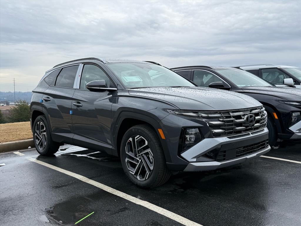 2026 Hyundai Tucson Hybrid Limited Ecotronic Gray 4D Sport Utility AWD 6-Speed Automatic 1.6L I4 DGI Hybrid Turbocharged DOHC 16V LEV3-SULEV30 37/36 City/Highway MPG 37/36 City/Highway MPG Thank you for checking out our website at www.HyundaiOfGreer.com where we help you find the best vehicle that meets your needs wrapped in a deal you will not want to walk away from. If you have any questions please call us at 864-800-0851 or visit us in person at Fred Anderson Hyundai of Greer located at 13740 East Wade Hampton Blvd Greer, SC 29651 to learn more! Qualifying New and Used vehicles receive our full Anderson Family Plan at no additional cost to you which includes our: Peace of Mind 3-Day Vehicle Exchange*Lifetime Oil Changes*Service Loaners*Loyalty Discounts after driving your purchase for 50,000 miles. All prices exclude tax, tag, license, title, and registration for your state; and our admin ($499) fees. All vehicle internet pricing is subject to change and requires standard financing. From time to time in the transfer of data on the internet, there are errors. Dealer is not responsible for errors in advertised prices. See dealer for complete details. Option Group 01, 4-Wheel Disc Brakes, 8 Speakers, ABS brakes, Air Conditioning, Alloy wheels, AM/FM radio: SiriusXM, Apple CarPlay & Android Auto, Auto High-beam Headlights, Auto-dimming Rear-View mirror, Automatic temperature control, Brake assist, Bumpers: body-color, Cargo Tray, Carpeted Floor Mats, Delay-off headlights, Driver door bin, Driver vanity mirror, Dual front impact airbags, Dual front side impact airbags, Electronic Stability Control, Emergency communication system: None, Four wheel independent suspension, Front anti-roll bar, Front Bucket Seats, Front Center Armrest, Front dual zone A/C, Front reading lights, Fully automatic headlights, Garage door transmitter: HomeLink, Heads-Up Display, Heated and Ventilated Front Bucket Seats, Heated door mirrors, Heated front seats, Heated rear seats, Heated steering wheel, Illuminated entry, Leather steering wheel, Leather-Trimmed Seat Trim, Low tire pressure warning, Memory seat, Navigation System, Occupant sensing airbag, Outside temperature display, Overhead airbag, Overhead console, Panic alarm, Passenger door bin, Passenger vanity mirror, Power door mirrors, Power driver seat, Power Liftgate, Power moonroof, Power passenger seat, Power steering, Power windows, Radio data system, Radio: Bose Premium w/AM/FM/HD Audio System, Rain sensing wipers, Rear