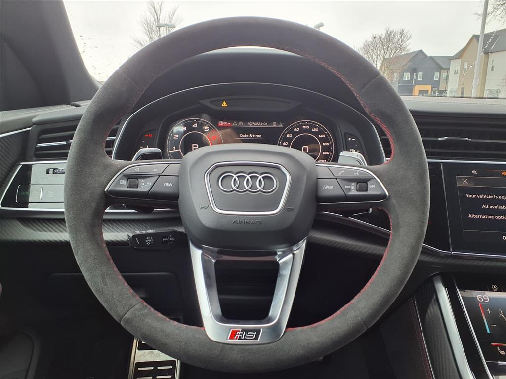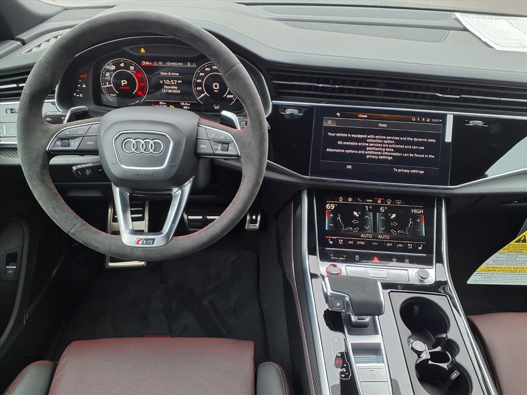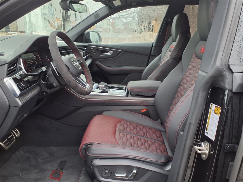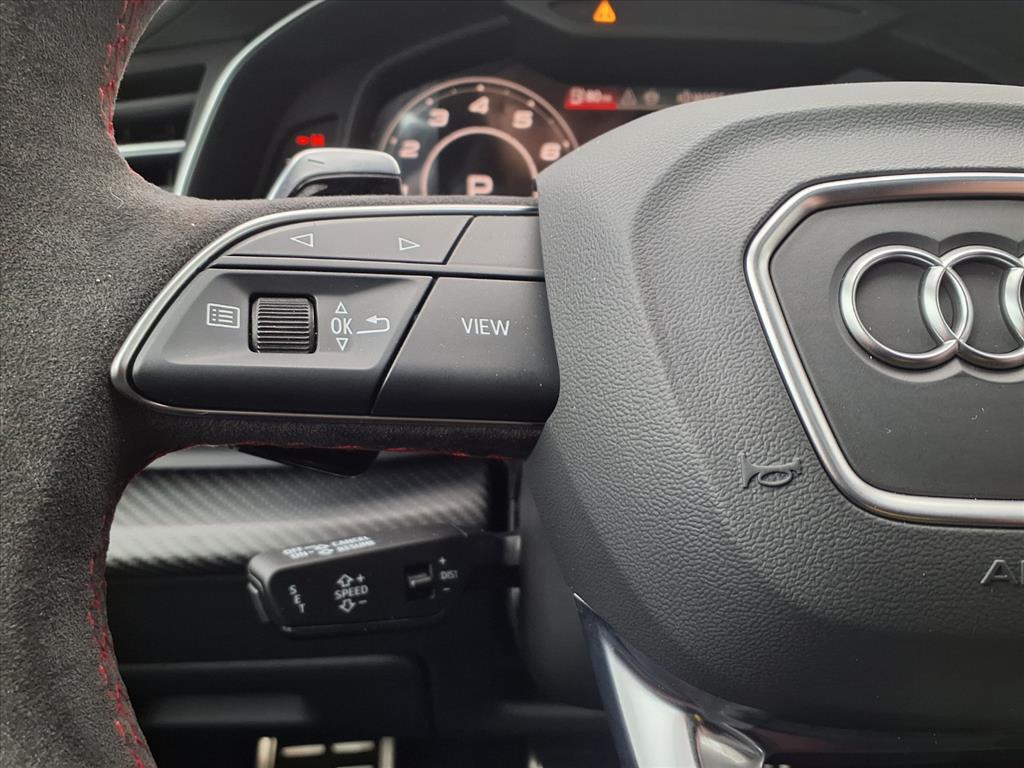 17 Speakers, 23 Wheel Package, 4-Wheel Disc Brakes, ABS brakes, Adaptive suspension, Air Conditioning, Alcantara Covered Steering Wheel, All-Weather Floor Mats, Alloy wheels, AM/FM radio, Anthracite Gray Audi Rings, Auto High-beam Headlights, Auto-dimming door mirrors, Auto-dimming Rear-View mirror, Auto-leveling suspension, Automatic temperature control, Bang & Olufsen Premium Sound System with 3D Sound, Black Exterior Trim, Black Mirror Housings, Black Optic Package, Black Seat Belts with Red Edging, Black Wheel Center Caps, Brake assist, Bumpers: body-color, Cargo Mat, Ceramic disc brakes: front and rear, Compass, Delay-off headlights, Dinamica Covered Shift Lever & Center Console Sides, Driver door bin, Driver vanity mirror, Dual front impact airbags, Dual front side impact airbags, Dual-Pane Acoustic Glass For Side Windows, Electronic Stability Control, Emergency communication system: Audi connect CARE, Executive Package, Exterior Parking Camera Rear, Four wheel independent suspension, Front anti-roll bar, Front Bucket Seats, Front Center Armrest, Front dual zone A/C, Front fog lights, Front reading lights, Fully automatic headlights, Garage door transmitter: HomeLink, Head-Up Display, Heated and Ventilated Front Sport Seats Plus, Heated door mirrors, Heated front seats, Heated Rear Seats, Heated steering wheel, Illuminated entry, Intersection Assist, Leather Shift Knob, Leather steering wheel, Low tire pressure warning, Memory seat, Navigation system: Audi MMI Navigation plus with Touch Response, Occupant sensing airbag, Outside temperature display, Overhead airbag, Overhead console, Panic alarm, Passenger door bin, Passenger vanity mirror, Power door mirrors, Power driver seat, Power Liftgate, Power moonroof: Panoramic, Power passenger seat, Power Soft-Closing Doors, Power steering, Power windows, Radio data system, Radio: Audi MMI Navigation Plus with MMI Touch Response, Rain sensing wipers, Rear air conditioning, Rear anti-roll bar, Rear dual zone A/C, Rear fog lights, Rear reading lights, Rear seat center armrest, Rear side impact airbag, Rear Window Blind, Rear window defroster, Rear window wiper, Red Brake Calipers, Remote keyless entry, Remote Park Assist Plus, RS Design Package - Red, RS Logo Floor Mats with Red Contrast Stitching, RS Sport Exhaust System, Security system, Speed control, Speed-sensing steering, Split folding rear seat, Spoiler, Steering wheel memory, Steering wheel mounted audio controls, Tachometer, Telescoping steering