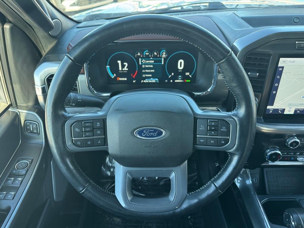 Clean CARFAX. Super nice F-150 Lariat Hybrid! Local Trade in, all the service work done, and fully loaded with options like a Giant panoramic sunroof, Heated and cooled leather seats, B&O Unleashed 18 Speaker Sound System, and much more!, 2nd Row Heated Seats, Adjustable pedals, Auto-dimming Rear-View mirror, Class IV Trailer Hitch Receiver, Compass, Electronic Locking w/3.73 Axle Ratio, Electronic Stability Control, Equipment Group 502A High, Exterior Parking Camera Rear, Front dual zone A/C, Heated front seats, Heated Steering Wheel, Illuminated entry, Integrated Trailer Brake Controller, Lariat Chrome Appearance Package, Leather-Trimmed Bucket Seats, LED Projector w/Dynamic Bending Headlamps, Memory seat, Onboard 400W Outlet, Outside temperature display, Power Glass Sideview Mirr w/Chrome Skull Caps, Power passenger seat, Power Tailgate, Power Tilt/Telescoping Steering Column w/Memory, Pro Trailer Backup Assist, Radio: B&O Sound System by Bang & Olufsen, Rain-Sensing Wipers, Remote keyless entry, Trailer Tow Package, Twin Panel Moonroof, Universal Garage Door Opener, Ventilated front seats, Wheels: 206-Spoke Dark Alloy Painted Aluminum, Wireless Charging Pad. This vehicle includes our exclusive Boucher 12-month/12,000-mile Limited Warranty, 70-point Inspection, Vehicle History Report, 24-Hour Roadside Assistance and more! Price excludes tax, title, license, service fee.