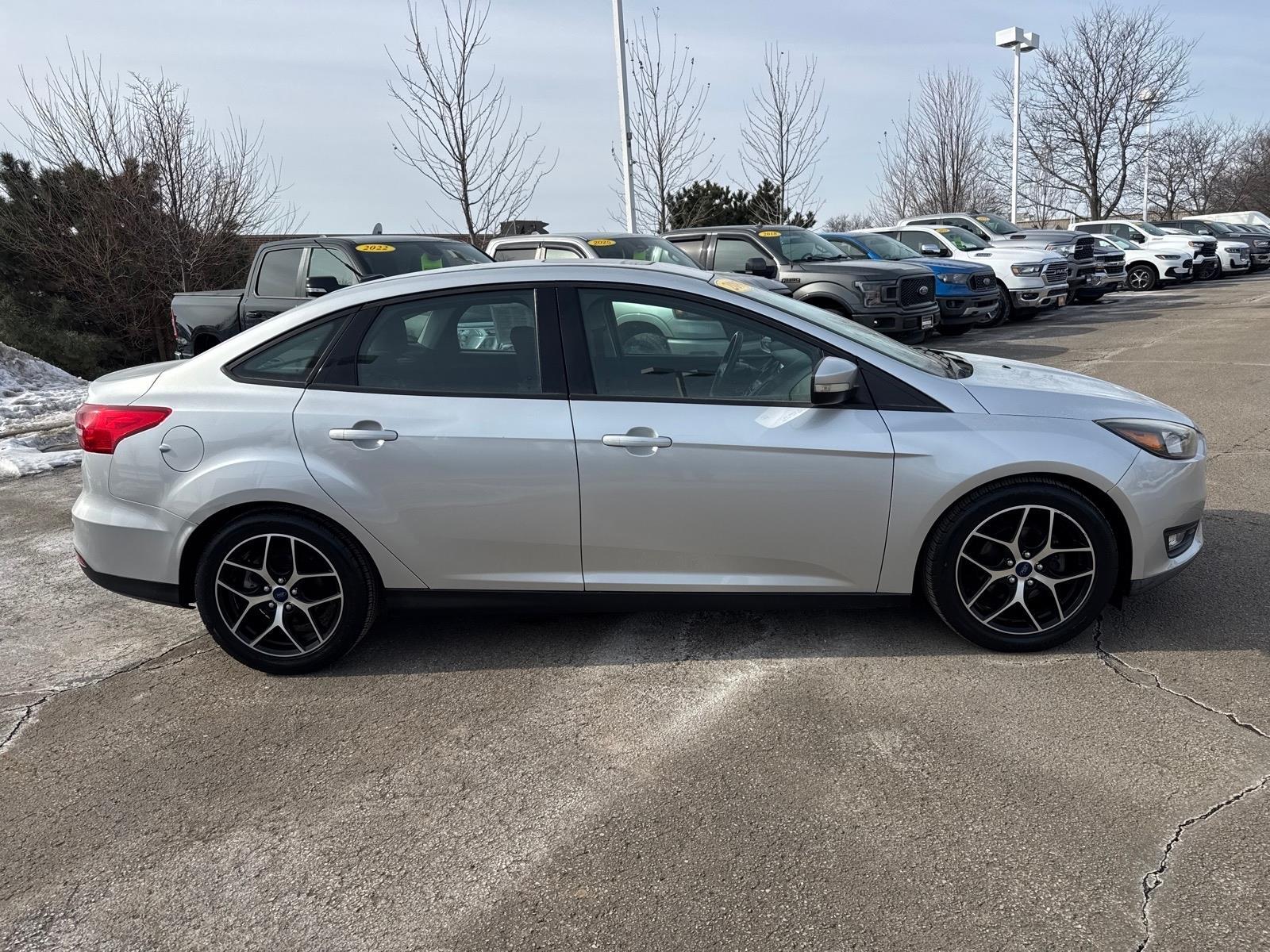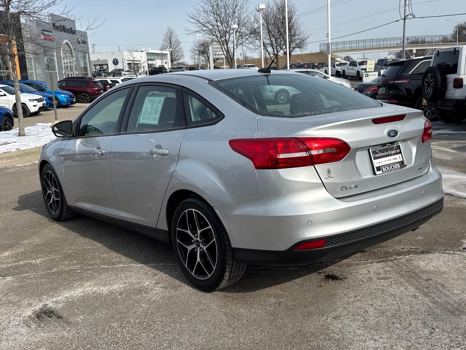 2017 Ford Focus SEL CARFAX One-Owner. This one-owner vehicle has been thoroughly inspected by our factory-trained technicians and comes with fresh oil and filters. Its the perfect combination of fuel efficiency and affordabilitydont miss out on this great opportunity!, 17Machined-Aluminum Wheels, 3 Point Leather-Wrapped Heated Steering Wheel, All-Weather Floor Mats, Automatic temperature control, Cloth Front Bucket Seats, Cold Weather Package, Exterior Parking Camera Rear, Front dual zone A/C, Front fog lights, Fully automatic headlights, Heated Front Seats, Heated Mirrors, Outside temperature display, Power moonroof, Rear window defroster, Remote keyless entry, Speed control, Steering wheel mounted audio controls, Tilt steering wheel, Variably intermittent wipers. This vehicle includes Boucher SmartCare: 3 Complimentary Oil Changes, No Cost Brake Inspection, No Cost Tire Inspection, 100-point Inspection, Carfax Vehicle History Report, Courtesy Transportation, and many discounts/coupons towards future services - a value of more than $1,000! Price excludes tax, title, license, service fee.