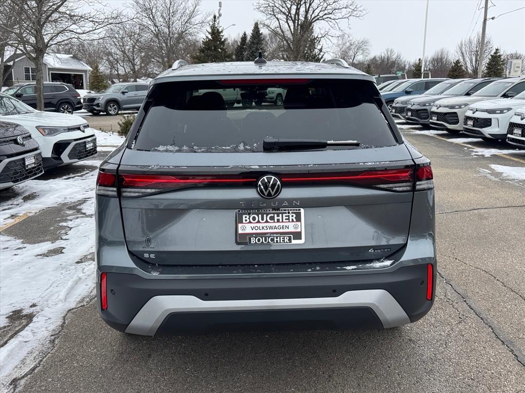 The 2026 Volkswagen Tiguan SE is a versatile compact SUV that blends everyday practicality with modern technology and refined comfort. Powered by a responsive 2.0L turbocharged engine paired with an 8speed automatic transmission, this frontwheeldrive Tiguan delivers smooth, confident performance for both city commuting and weekend adventures. Seating for five, a thoughtfully designed cabin, and flexible cargo space make it an excellent choice for drivers seeking a balance of style, comfort, and utility. The SE trim adds a host of comfort and convenience features, including heated front seats, dualzone climate control, a large touchscreen infotainment system with wireless Apple CarPlay and Android Auto, a digital cockpit, and remote start for added everyday convenience. Volkswagens IQ.DRIVE suite of advanced safety features comes standard, including adaptive cruise control, blindspot monitoring, lanekeeping assist, and automatic emergency braking to help enhance confidence behind the wheel. Visit us today or contact our team to schedule your test drive and experience the 2026 Volkswagen Tiguan SE for yourself., AWD. As with all new Volkswagen models, this vehicle includes a 4-year/50,000 mile Comprehensive Warranty and Roadside Assistance! Manufacturer Suggested Retail Price may not reflect the actual sale price. Price excludes tax, title, license, service fee. All customers qualify for the price listed above. You may qualify for additional conditional bonuses that may lower your price; ask us for details. All offers are subject to change after month-end so come visit us and test-drive this vehicle today! Excludes Tax, Title, License, Service Fee and any dealer installed accessories. Extra Bonuses may be available - See Dealer for Details! Price includes: $1000 - Retail Customer Bonus. Exp. 01/04/2026