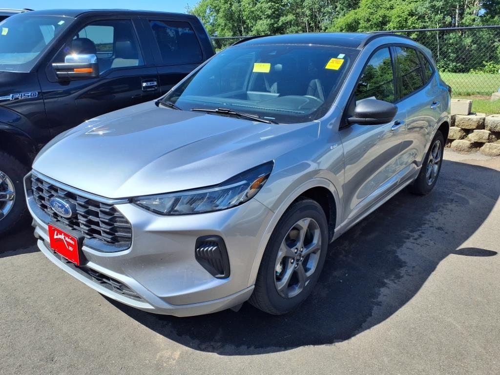2024 Ford Escape 1.5L EcoBoost 8-Speed Automatic 26/32 City/Highway MPG ST-Line Silver Metallic ** BACK-UP CAMERA, **ONE OWNER, ** BOUGHT AND SERVICED AT LINK FORD, **LOCAL TRADE, **ACCIDENT FREE TITLE HISTORY, **FREE VEHICLE HISTORY REPORT, **ACCIDENT FREE AUTO CHECK REPORT, **BLUETOOTH, AWD, 3.81 Axle Ratio, 4-Wheel Disc Brakes, 6 Speakers, ABS brakes, Adaptive Cruise Control w/Stop-and-Go, Air Conditioning, Alloy wheels, AM/FM radio: SiriusXM, AM/FM Stereo, Auto High-beam Headlights, Automatic temperature control, Black Roof-Rack Side Rails, Brake assist, Bumpers: body-color, Cold Weather Package, Compass, Connected Navigation, Delay-off headlights, Driver door bin, Driver vanity mirror, Dual front impact airbags, Dual front side impact airbags, Electronic Stability Control, Emergency communication system: SYNC 4 911 Assist, Equipment Group 300A, Exterior Parking Camera Rear, Ford Co-Pilot360 Assist , FordPass Connect, Four wheel independent suspension, Front anti-roll bar, Front Bucket Seats, Front Center Armrest, Front dual zone A/C, Front License Plate Bracket, Front reading lights, Fully automatic headlights, Heated Front Row Seats, Heated Sideview Mirrors, Heated Steering Wheel, Illuminated entry, Knee airbag, Low tire pressure warning, Occupant sensing airbag, Outside temperature display, Overhead airbag, Overhead console, Panic alarm, Panoramic Vista Roof, Passenger door bin, Passenger vanity mirror, Power door mirrors, Power driver seat, Power Liftgate, Power steering, Power windows, Radio data system, Rear anti-roll bar, Rear Parking Sensor, Rear reading lights, Rear seat center armrest, Rear window defroster, Rear window wiper, Rear-View Camera, Remote keyless entry, Remote Starter System, Roof rack: rails only, Speed control, Speed Sign Recognition, Speed-sensing steering, Speed-Sensitive Wipers, Split folding rear seat, Spoiler, Sport steering wheel, Steering wheel mounted audio controls, SYNC 4, SYNC 4 w/Enhanced Voice Recognition, Tachometer, Tech Pack #1, Telescoping steering wheel, Tilt steering wheel, Traction control, Trip computer, Variably intermittent wipers, Vinyl/Cloth Front Sport Contour Bucket Seats, Wheels: 18 Rock Metallic Painted Aluminum. 26/32 City/Highway MPG Odometer is 14017 miles below market average!Explore all the newest Ford models with a visit to our beautiful showroom in Rice Lake, WI! We are proud to be your family-owned dealership, offering Ford sales, service and financing to drivers from across the region