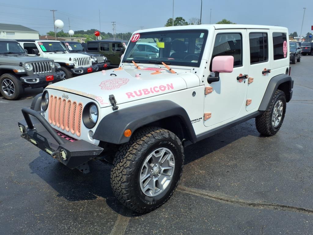 2017 Jeep Wrangler Unlimited Rubicon 4WD Bright White Clearcoat **NAVIGATION, **ACCIDENT FREE AUTO CHECK REPORT, **BLUETOOTH, **HEATED SEATS**, **CUSTOM TRIM**, **PINK EDITION**, **ALL PINK TRIM INTERIOR/EXTERIOR**, Wrangler Unlimited Rubicon 4WD, 4D Sport Utility, 3.6L V6 24V VVT, 5-Speed Automatic, 4WD, Bright White Clearcoat, Black Cloth, 3.73 Rear Axle Ratio, 4-Wheel Disc Brakes, 40GB Hard Drive w/28GB Available, 6.5 Touchscreen Display, 8 Speakers, ABS brakes, Air Conditioning, Alloy wheels, AM/FM radio: SiriusXM, Audio Jack Input for Mobile Devices, Auto-dimming Rear-View mirror, Body Color 3-Piece Hard Top, Brake assist, CD player, Cloth Seats w/Adjustable Head Restraints, Cold Weather Group, Compass, Connectivity Group, Driver door bin, Driver vanity mirror, Dual front impact airbags, Electronic Stability Control, Engine Block Heater, Freedom Panel Storage Bag, Front anti-roll bar, Front Bucket Seats, Front Center Armrest w/Storage, Front fog lights, Front reading lights, Fully automatic headlights, GPS Navigation, Heated door mirrors, Heated Front Seats, Illuminated entry, Integrated roll-over protection, Leather steering wheel, Low tire pressure warning, MOPAR Slush Mats, Occupant sensing airbag, Outside temperature display, Panic alarm, Passenger door bin, Passenger vanity mirror, Performance Suspension, Power door mirrors, Power steering, Power windows, Quick Order Package 24R, Radio data system, Rear anti-roll bar, Rear Window Defroster, Rear Window Wiper/Washer, Remote keyless entry, Remote Start System, Remote USB Port, Security system, Speed control, Split folding rear seat, Steering wheel mounted audio controls, Supplemental Front Seat Side Airbags, Tachometer, Tilt steering wheel, Tire Pressure Monitoring Display, Traction control, Trip computer, Uconnect Voice Command w/Bluetooth, Vehicle Information Center.Awards: * 2017 KBB.com 10 Most Awarded Brands