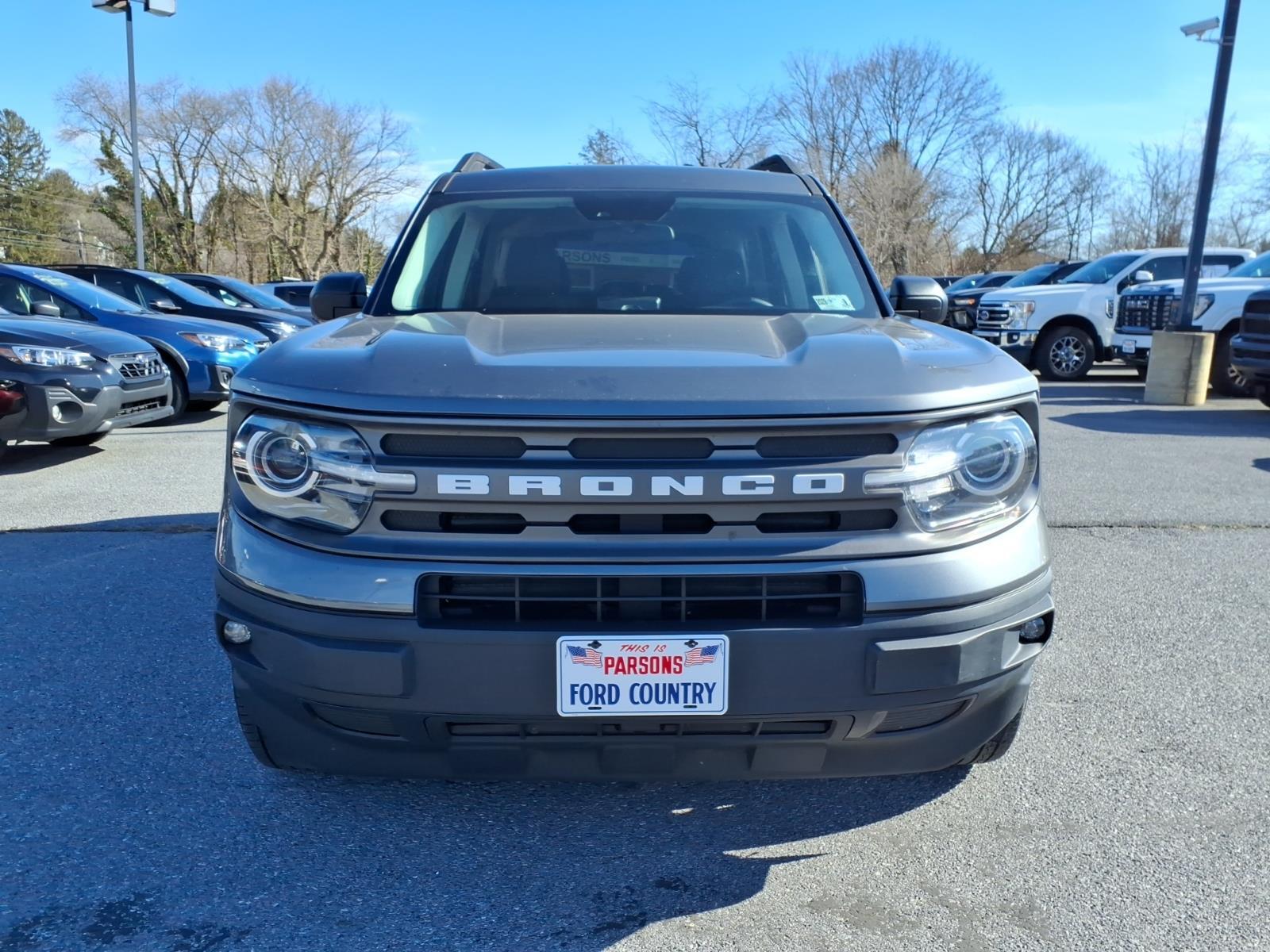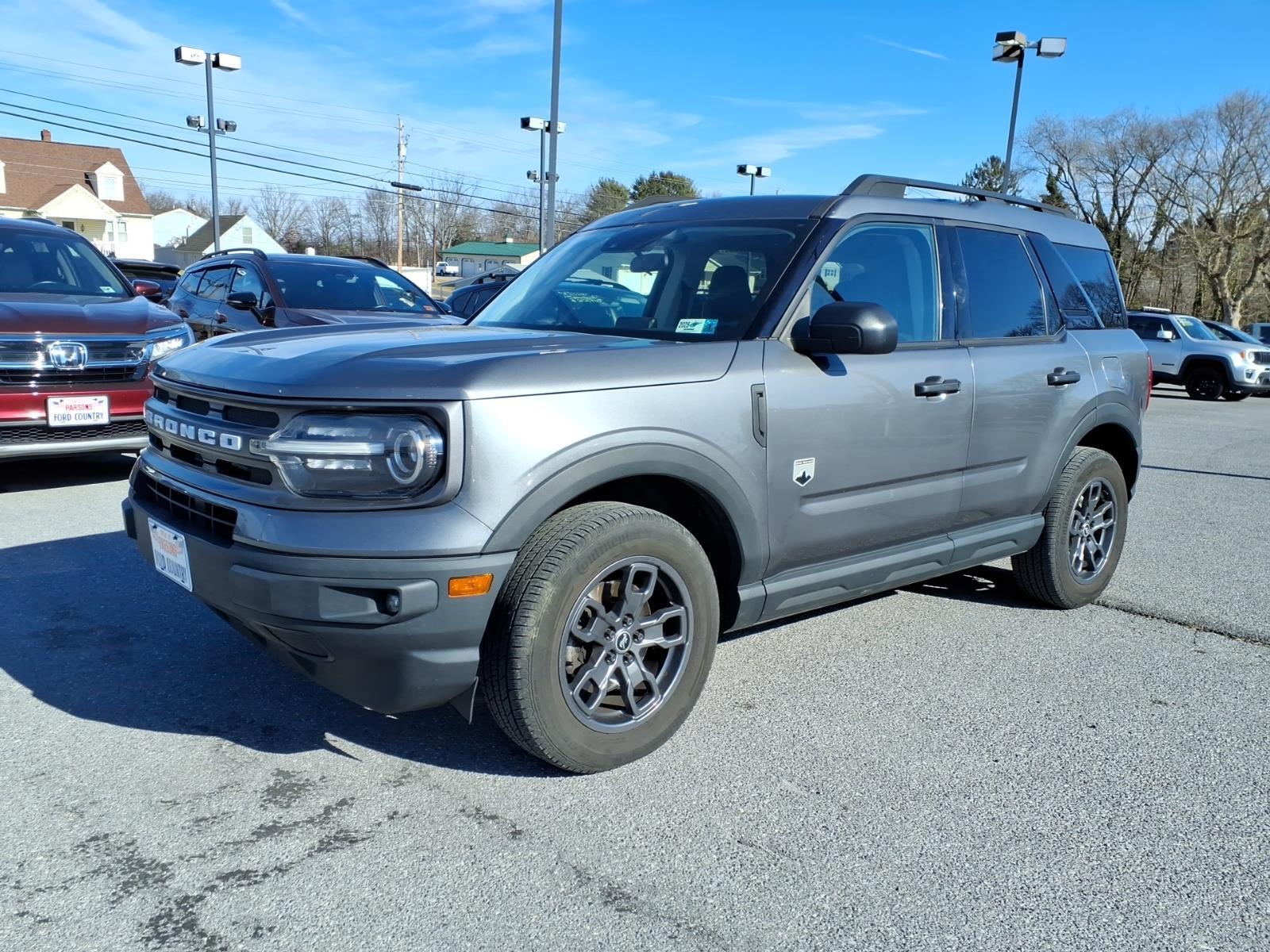 Please call the Dealership to verify this vehicle is still in stock. We pride ourselves in supporting the Eastern Panhandle of West Virginia and value our community above and beyond all others. Thank you for considering us. Your gonna like the way we serve. We are a full-service Ford Dealership. We have an Excellent Finance Department and secure financing for the majority of our customers. We are always looking for nice trades. If you are not local, no worries, we have been selling vehicles throughout the U.S. For many years. We will gladly handle everything for you to ensure that this is an exceptional car buying experience. Visit our website today.CARFAX One-Owner.Carbonized Gray Metallic 2022 Ford Bronco Sport Big Bend 4x4 4WD 1.5L EcoBoost Non-Smoker, ONE OWNER, AM/FM radio: SiriusXM, Automatic temperature control, Convenience Package, Electronic Stability Control, Equipment Group 200A, Front Driver & Passenger Seatback Zipper Pockets, Fully automatic headlights, Heated Front Bucket Seats, Intelligent Access (Lock/Unlock), Leather-Wrapped Steering Wheel, LED Fog Lamps, Power door mirrors, Power windows, Rear Parking Sensors, Rear window defroster, Rear window wiper, Remote keyless entry, Security system, SiriusXM Radio, Speed control, Speed-Sensitive Wipers, Steering wheel mounted audio controls, SYNC 3 Communications & Entertainment System, SYNC 3/Apple CarPlay/Android Auto, Telescoping steering wheel, Tilt steering wheel, Trip computer, Universal Garage Door Opener (UGDO), Wheels: 17 Carbonized Gray-Painted Aluminum, Wireless Charging Pad.Your Small Town Dealer with Big City Pricing!!! 8-Speed Automatic 25/28 City/Highway MPG