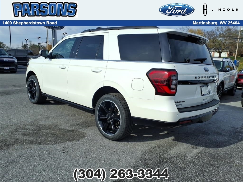 Please call the Dealership to verify this vehicle is still in stock. We pride ourselves in supporting the Eastern Panhandle of West Virginia and value our community above and beyond all others. Thank you for considering us. Your gonna like the way we serve. We are a full-service Ford Dealership. We have an Excellent Finance Department and secure financing for the majority of our customers. We are always looking for nice trades. If you are not local, no worries, we have been selling vehicles throughout the U.S. For many years. We will gladly handle everything for you to ensure that this is an exceptional car buying experience. Visit our website today.CARFAX One-Owner.Star White Metallic Tri-Coat 2023 Ford Expedition Limited 4WD EcoBoost 3.5L V6 GTDi DOHC 24V Twin Turbocharged Clean CARFAX. 4WD, 15.5 LCD Capacitive Touchscreen, 1st & 2nd Row Floor Mats w/Logo, 26mm Engine Radiator, 360-Degree Camera w/Trailer Reverse Guidance, Advanced Cargo Manager, Black Headlamp and Fog Lamp Bezels, Black Rear Bumper, Black Roof Rack Side Rails, Body Color Door Handles, Continuous Controlled Damping (CCD), ControlTrac w/3.73 Axle Ratio, Ebony Black Bar and Mesh Grille, Ebony Black Power Deployable Running Boards, Ebony Black Tailgate Applique, Equipment Group 303A Stealth Package, Heated/Ventilated Lthr Front Captain's Chairs (A), Heavy-Duty Trailer Tow Package, Integrated Trailer Brake Controller, LED Taillamp w/Black Bezels, Panoramic Vista Roof, Power-Folding Sideview Mirrors w/Autofold, Pro Trailer Backup Assist, Sport-Tuned Suspension, Stealth Edition Package, Wheels: 22 Premium Black-Painted Aluminum.Your Small Town Dealer with Big City Pricing!!! Odometer is 18725 miles below market average! 10-Speed Automatic