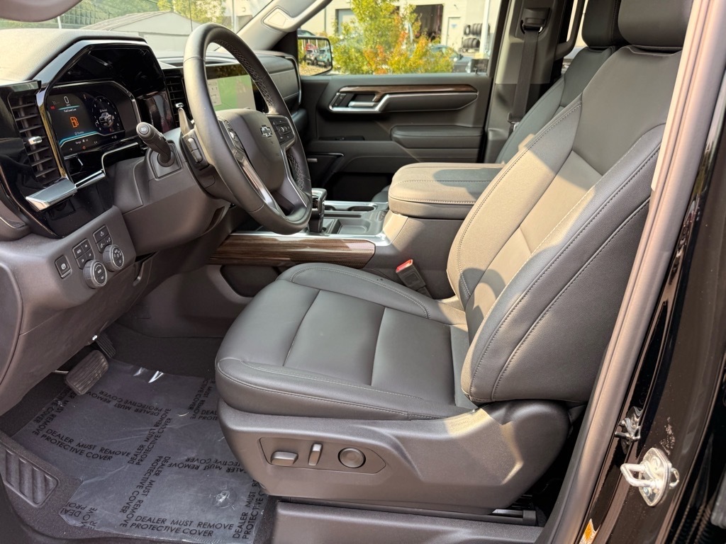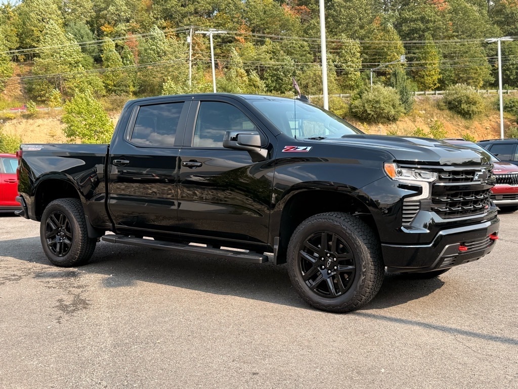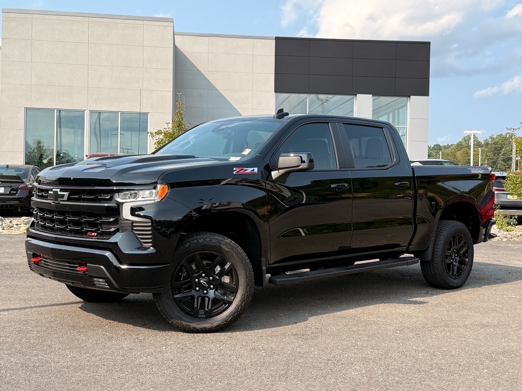 Black 2025 Chevrolet Silverado 1500 LT Trail Boss 4WD 8-Speed Automatic EcoTec3 5.3L V8 8-Speed Automatic, 4WD, Black Leather. Odometer is 3933 miles below market average! Convenience Package (10-Way Power Driver Seat w/Lumbar, 120-Volt Bed Mounted Power Outlet, 120-Volt Interior Power Outlet, Dual Rear USB Ports (Charge Only), Dual-Zone Automatic Climate Control, Electric Rear-Window Defogger, Heated Driver & Front Outboard Passenger Seats, Heated Steering Wheel, Keyless Open & Start, LED Cargo Area Lighting, Manual Tilt/Telescoping Steering Column, Remote Vehicle Starter System, Theft Deterrent System (Unauthorized Entry), and Wrapped Steering Wheel), Convenience Package II (Hitch Guidance w/Hitch View, In-Vehicle Trailering System App, Power Sliding Rear Window w/Rear Defogger, Premium Bose 7-Speaker Sound System, and Universal Home Remote), Leather Package, Preferred Equipment Group 2LT (12.3Multicolor Reconfigurable Digital Display, 6-Speaker Audio System, All-Weather Floor Liner (LPO) (AAK), Auto-Locking Rear Differential, Bluetooth� For Phone, Color-Keyed Carpeting Floor Covering, Deep-Tinted Glass, Electronic Cruise Control, EZ Lift Power Lock & Release Tailgate, Front LED Fog Lamps, HD Rear Vision Camera, Heated Power-Adjustable Outside Mirrors, High Gloss Black Mirror Caps, Inside Rear-View Mirror w/Tilt, Integrated Trailer Brake Controller, OnStar Services Capable, Performance Red Recovery Hooks, Power Front Windows w/Driver Express Up/Down, Power Front Windows w/Passenger Express Down, Power Rear Windows w/Express Down, Rear 60/40 Folding Bench Seat (Folds Up), SiriusXM w/360L Trial Subscription, Standard Tailgate, Steering Wheel Audio Controls, Teen Driver, Tire Pressure Monitoring System, and Wi-Fi Hot Spot Capable), Suspension Package (Heavy-Duty Air Filter and Hill Descent Control), Trailering Package (Hitch Guidance), Up-Level Rear Seat w/Storage Package, 8-Speed Automatic, 4WD, Black Leather, 170 Amp Alternator, 2 USB Data Ports, 220 Amp Alternator, 4-Wheel Disc Brakes, 40/20/40 Front Split-Bench Seat, 6 Speakers, ABS brakes, Air Conditioning, Alloy wheels, AM/FM radio: SiriusXM with 360L, Apple CarPlay/Android Auto, Auto High-beam Headlights, Automatic Emergency Braking, Automatic temperature control, Auxiliary External Transmission Oil Cooler, Brake assist, Cloth Seat Trim, Compass, Delay-off headlights, Driver door bin, Driver vanity mirror, Dual Exhaust w/Black Exhaust Tips, Dual Exhaust w/Polished Outlets, Dual front impact airbag