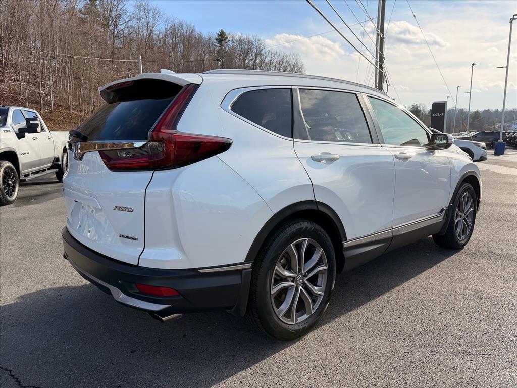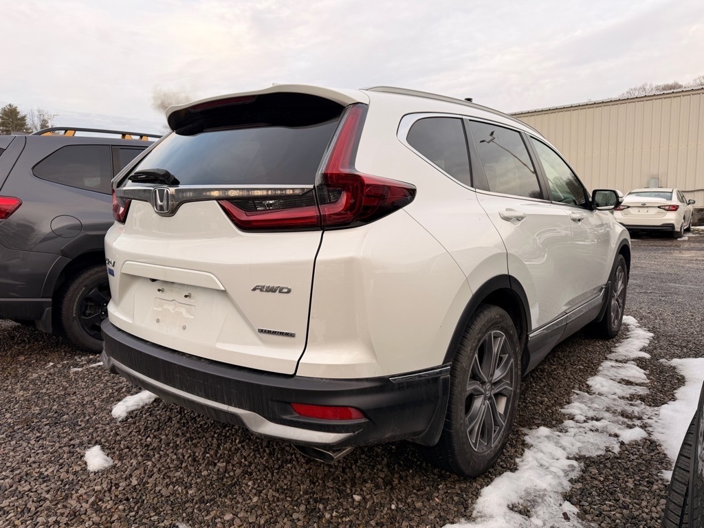 Platinum White Pearl 2020 Honda CR-V Touring AWD CVT 1.5L I4 DOHC 16V This Vehicle Includes the Following Features:, AWD. Odometer is 32672 miles below market average! AWD, 4-Wheel Disc Brakes, 5.64 Axle Ratio, 9 Speakers, ABS brakes, Adaptive Cruise Control: Adaptive Cruise Control (ACC) with Low-Speed Follow, Air Conditioning, Alloy wheels, AM/FM radio: SiriusXM, Apple CarPlay/Android Auto, Auto High-beam Headlights, Auto-dimming Rear-View mirror, Automatic temperature control, Blind Spot Information (BSI) System warning, Brake assist, Bumpers: body-color, Compass, Delay-off headlights, Driver door bin, Driver vanity mirror, Dual front impact airbags, Dual front side impact airbags, Electronic Stability Control, Exterior Parking Camera Rear, Forward collision: Collision Mitigation Braking System (CMBS) FCW mitigation, Four wheel independent suspension, Front anti-roll bar, Front Bucket Seats, Front Center Armrest, Front dual zone A/C, Front fog lights, Front reading lights, Garage door transmitter: HomeLink, Heated door mirrors, Heated Front Bucket Seats, Heated front seats, Heated steering wheel, Illuminated entry, Leather Seat Trim, Leather Shift Knob, Low tire pressure warning, Memory seat, Navigation system: Honda Satellite-Linked Navigation System, Occupant sensing airbag, Outside temperature display, Overhead airbag, Overhead console, Panic alarm, Passenger door bin, Passenger vanity mirror, Power door mirrors, Power driver seat, Power Liftgate, Power moonroof, Power passenger seat, Power steering, Power windows, Radio data system, Radio: 330-Watt AM/FM/HD/SiriusXM Prem Audio System, Rain sensing wipers, Rear anti-roll bar, Rear seat center armrest, Rear window defroster, Rear window wiper, Remote keyless entry, Roof rack: rails only, Security system, Speed control, Speed-sensing steering, Speed-Sensitive Wipers, Split folding rear seat, Spoiler, Steering wheel mounted audio controls, Tachometer, Telescoping steering wheel, Tilt steering wheel, Traction control, Trip computer, Turn signal indicator mirrors, Variably intermittent wipers, and Wheels: 19Machine-Finished Alloy w/Gray Inserts.
